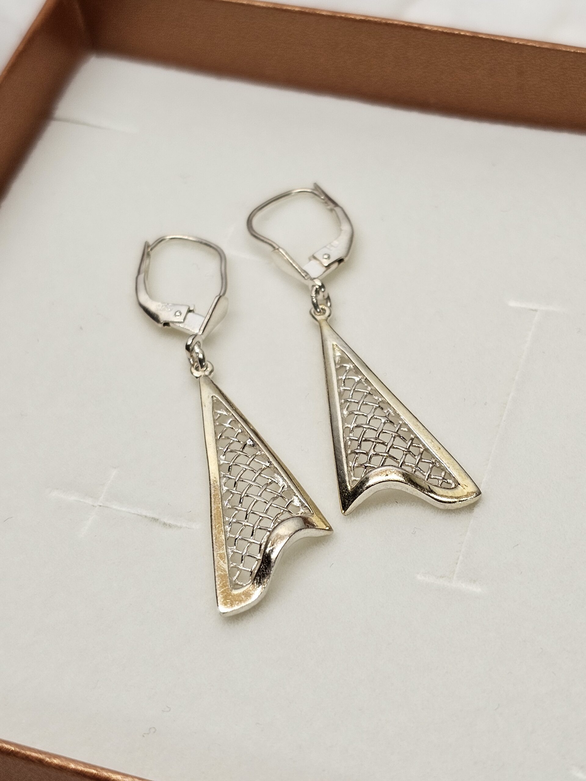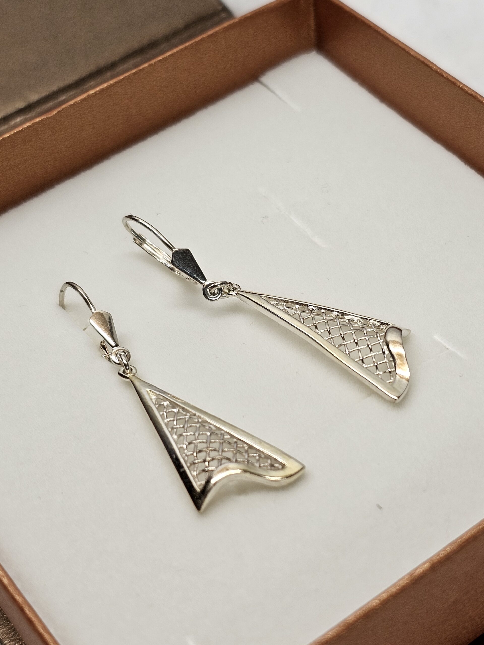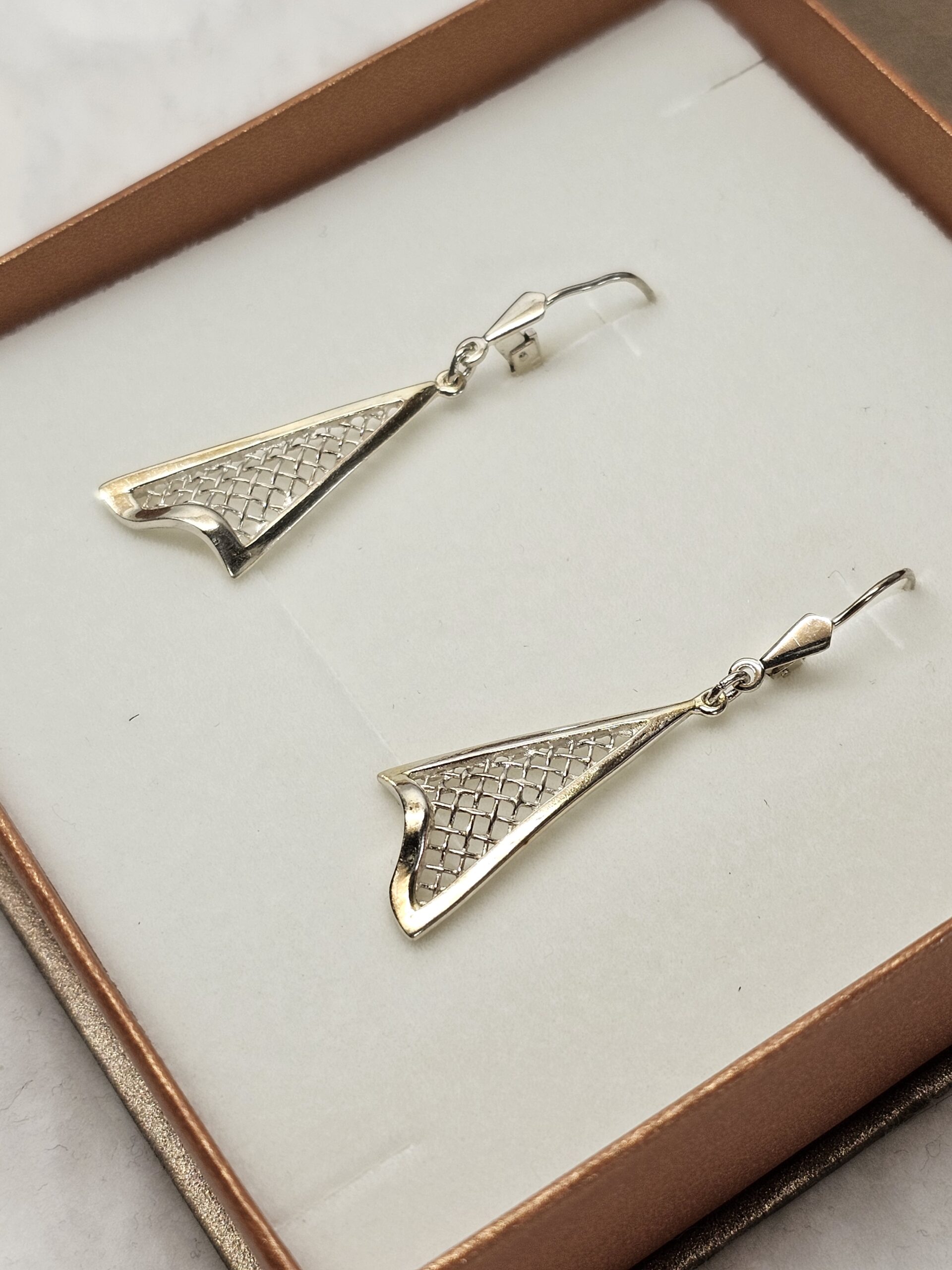 1 Paar wunderschöne Ohrringe / Hängeohrringe mit einem stylischen Gitterdesign.