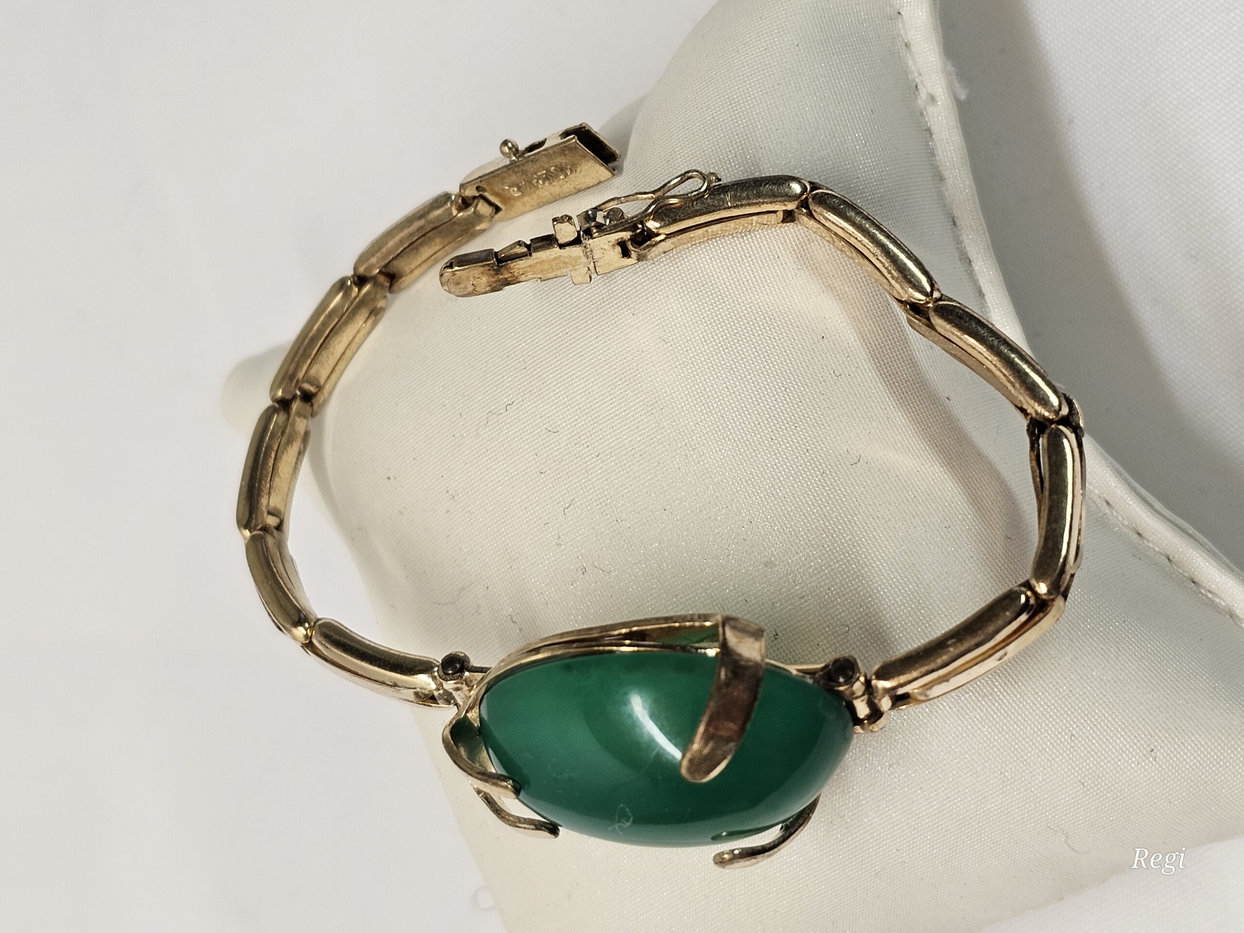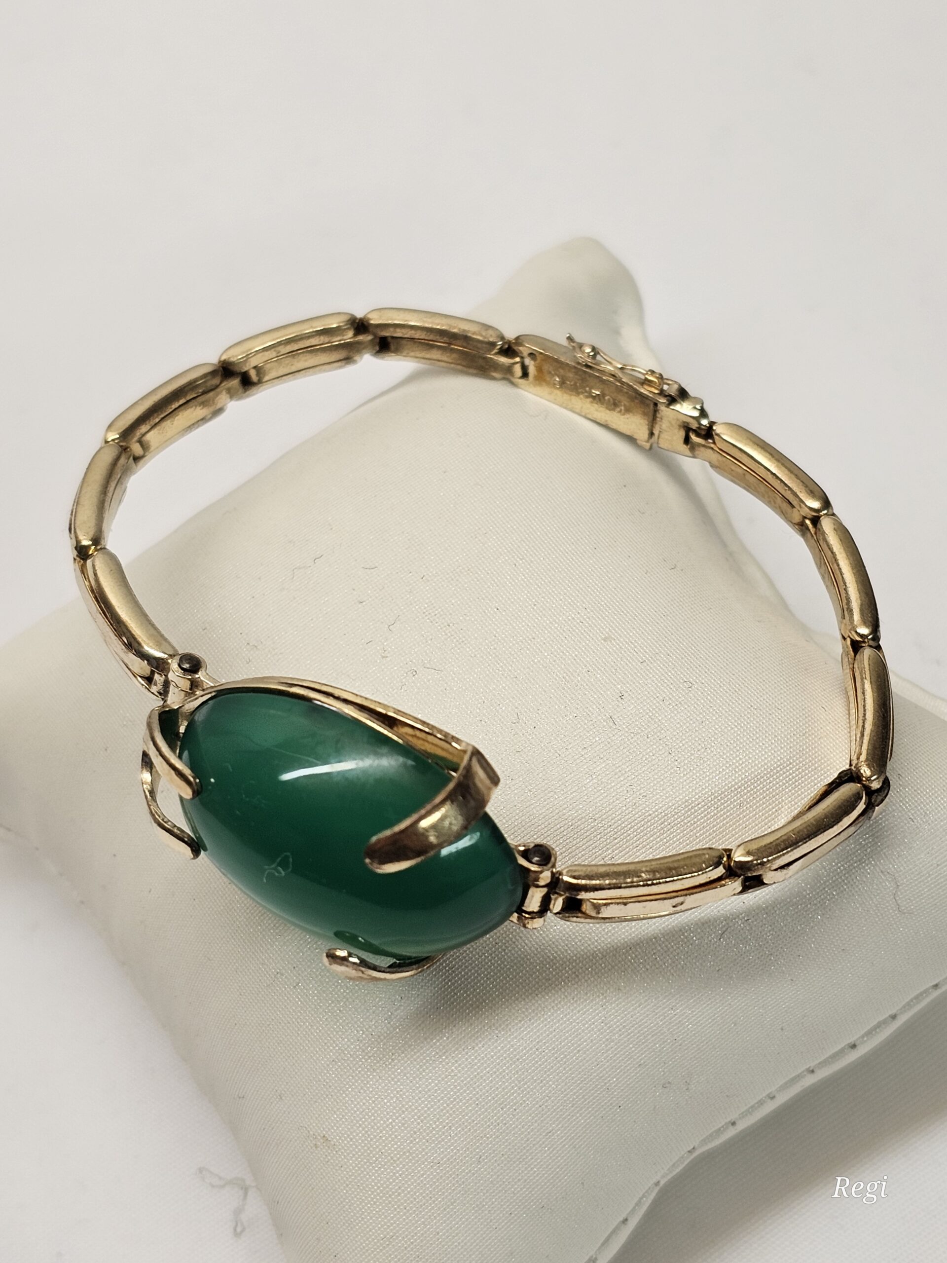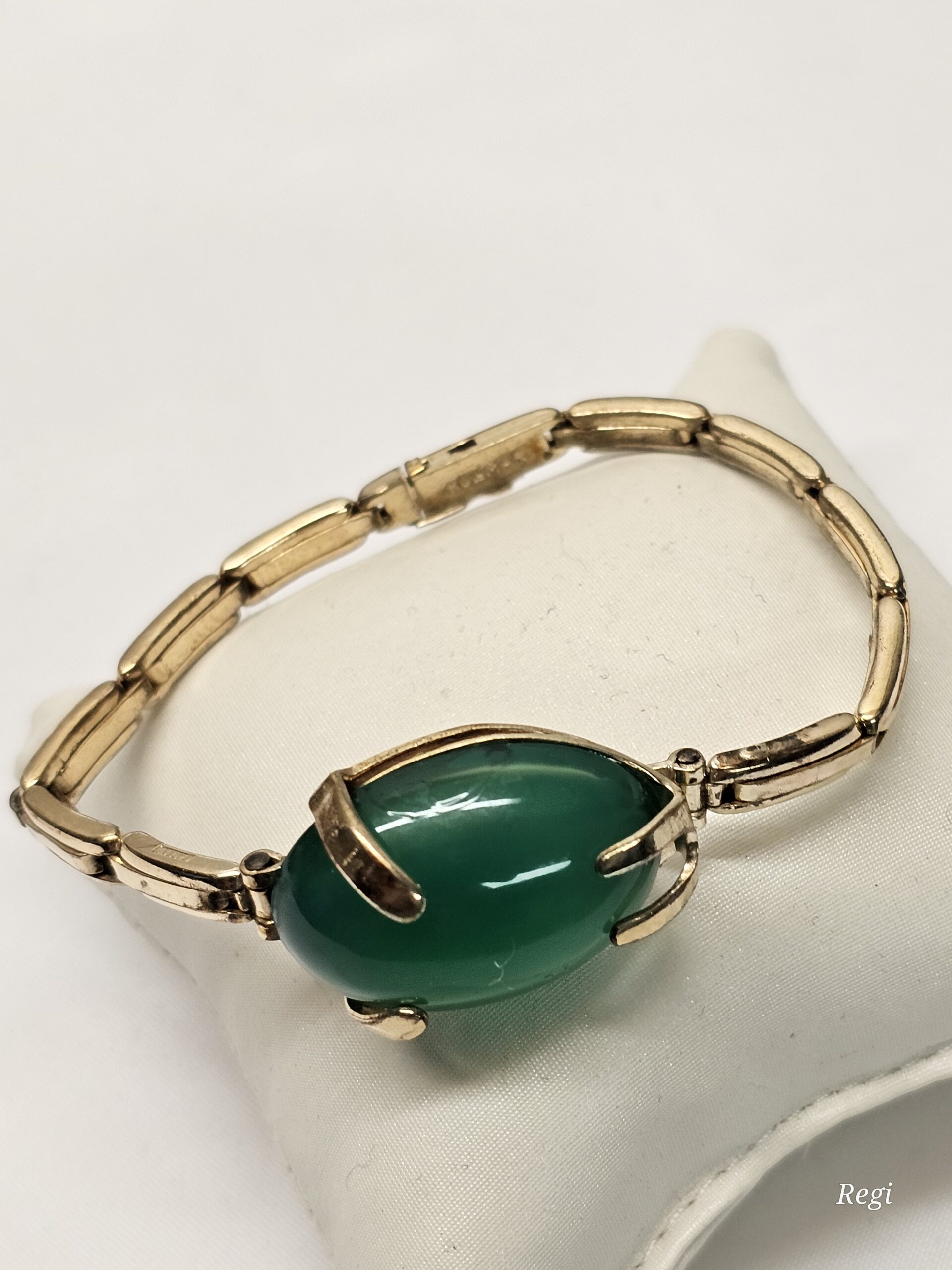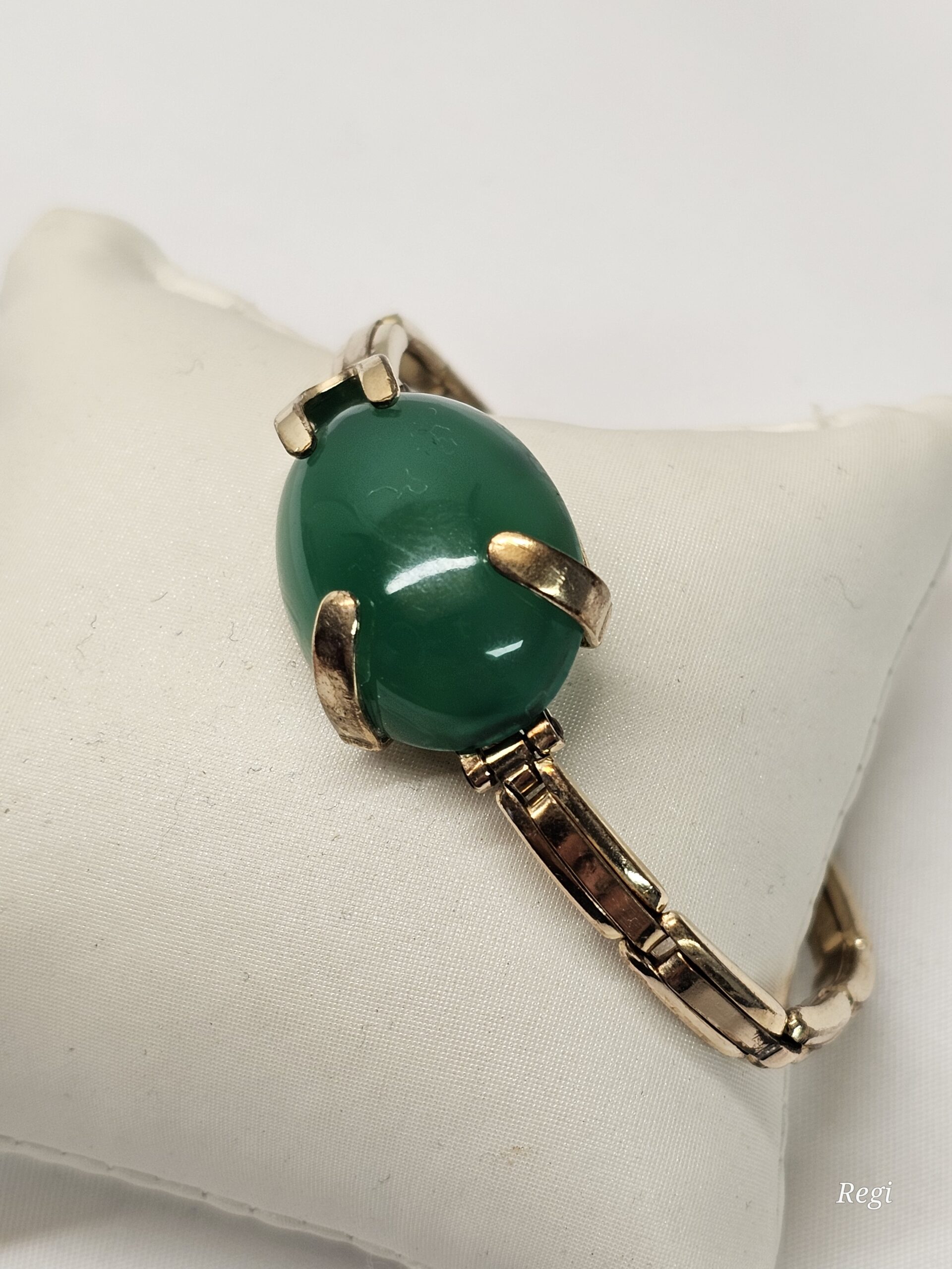 15,5 cm Nostalgisches Armband Gliederarmband Kollmar Doublé vergoldet Chrysopras Shabby Vintage elegant SA733