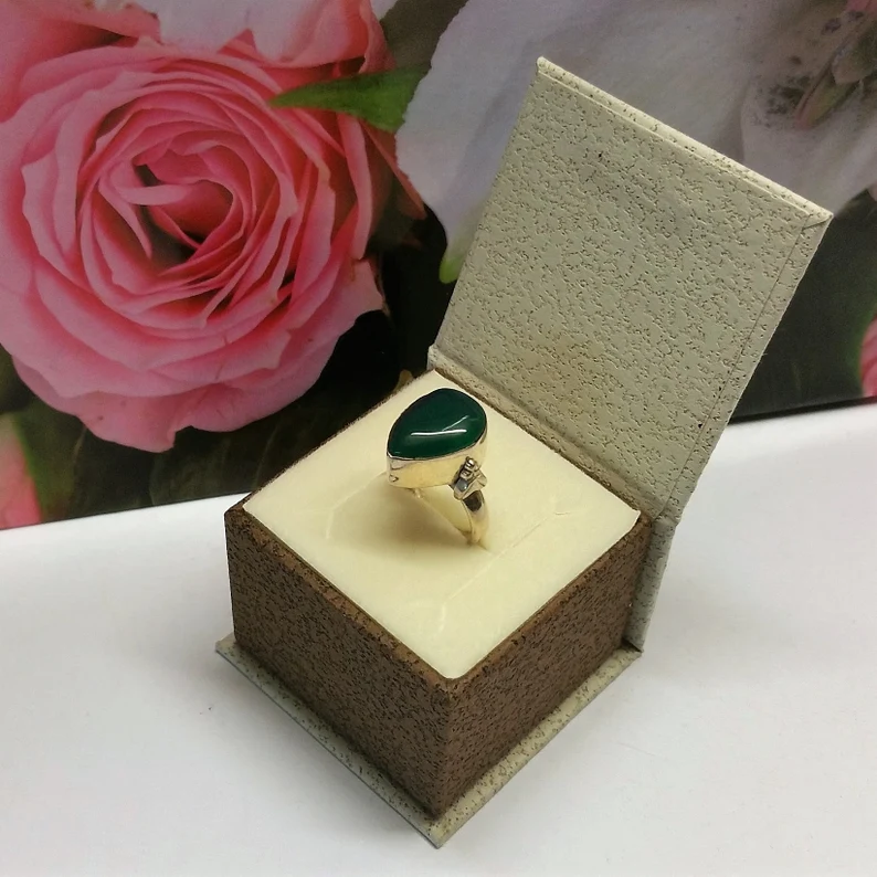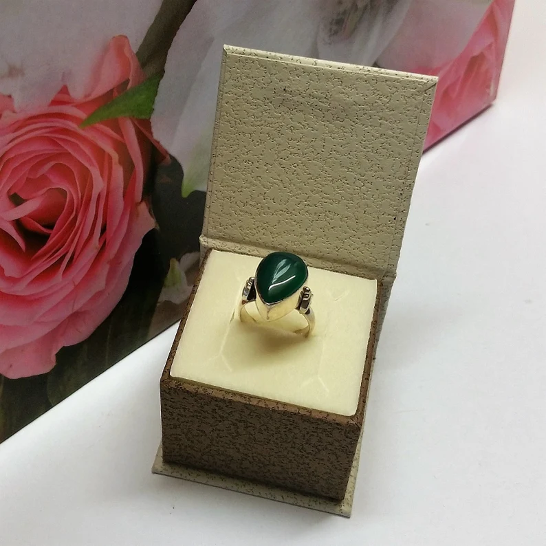 Nostalgischer Ring Silber 925 mit einem schönen Chrysopras in Tropfenform.