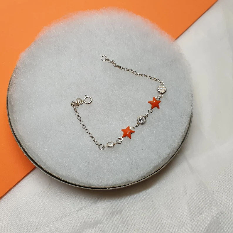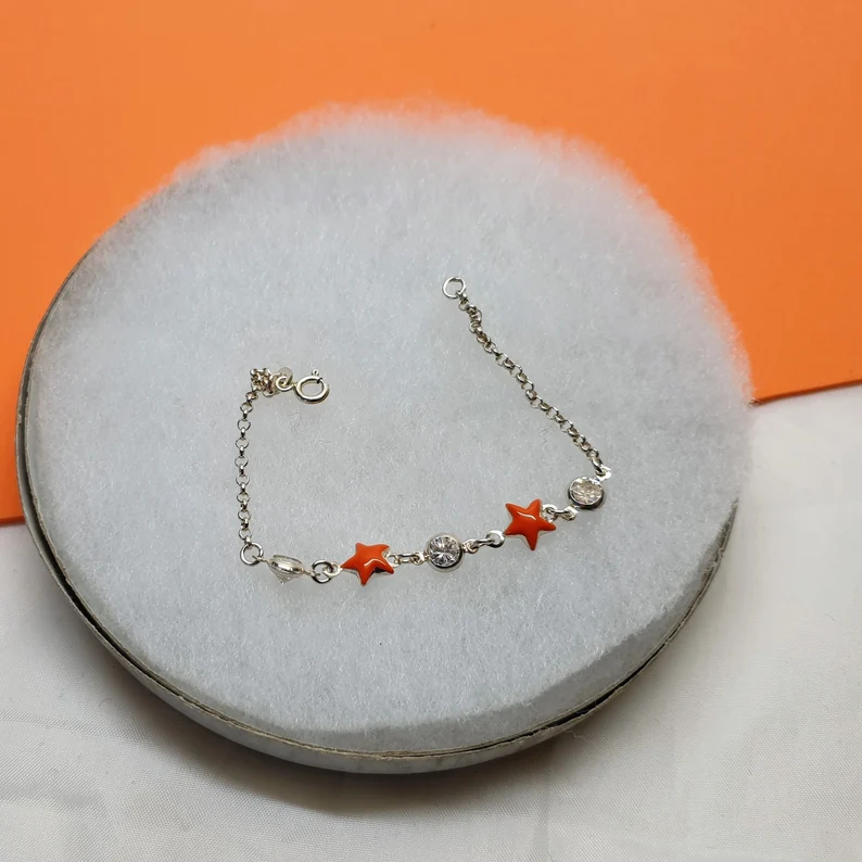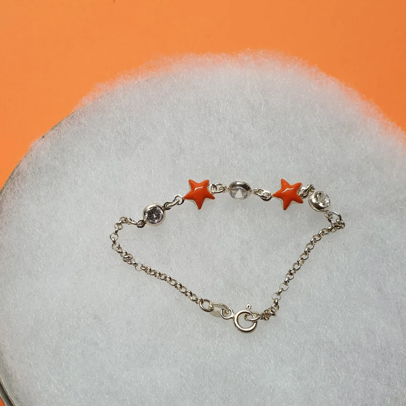 15 cm Kinder Armband Armbändchen Design Ankerkette Silber 925 Kristalle klar Sterne Emaille rot Vintage SA421