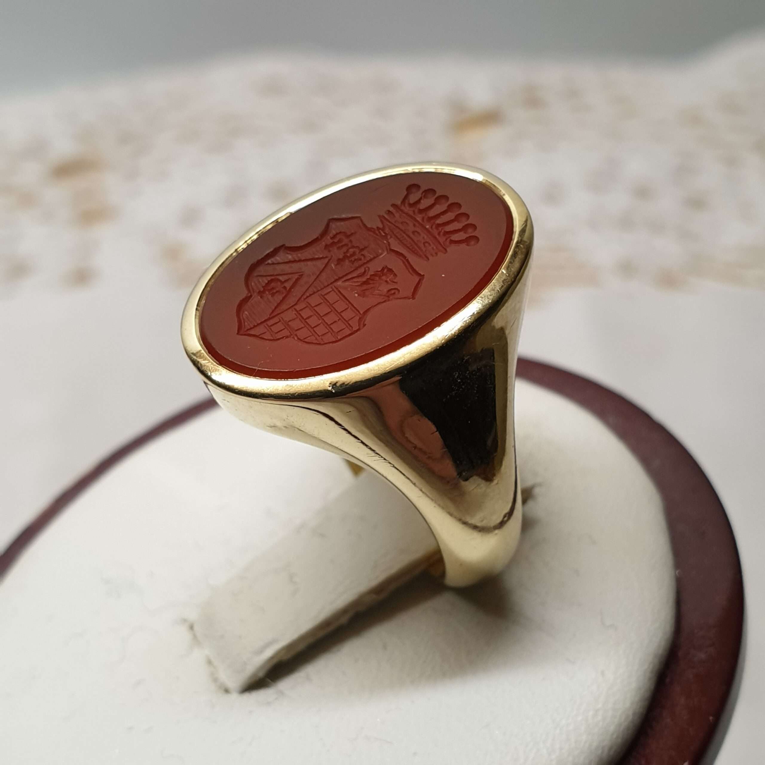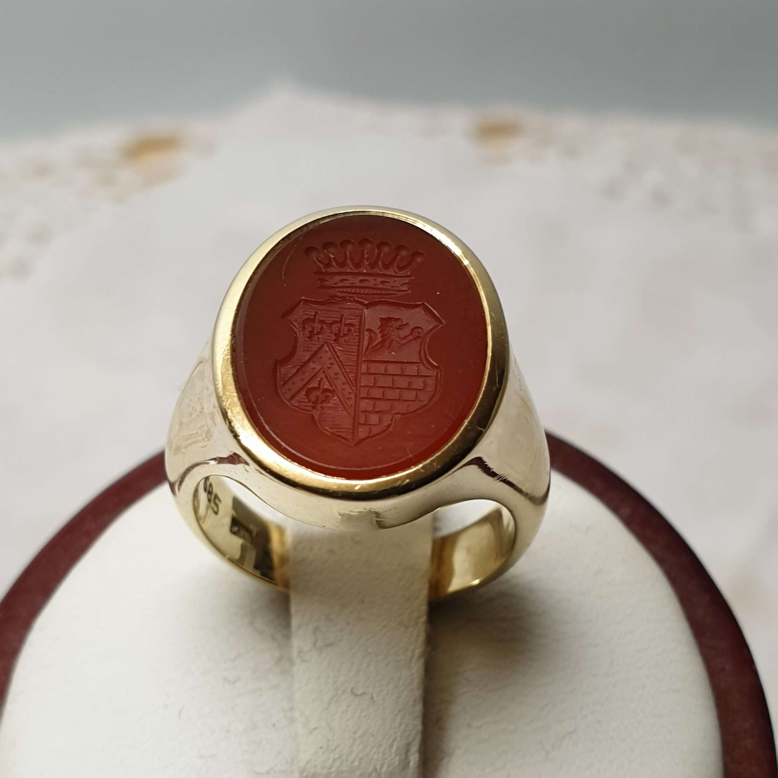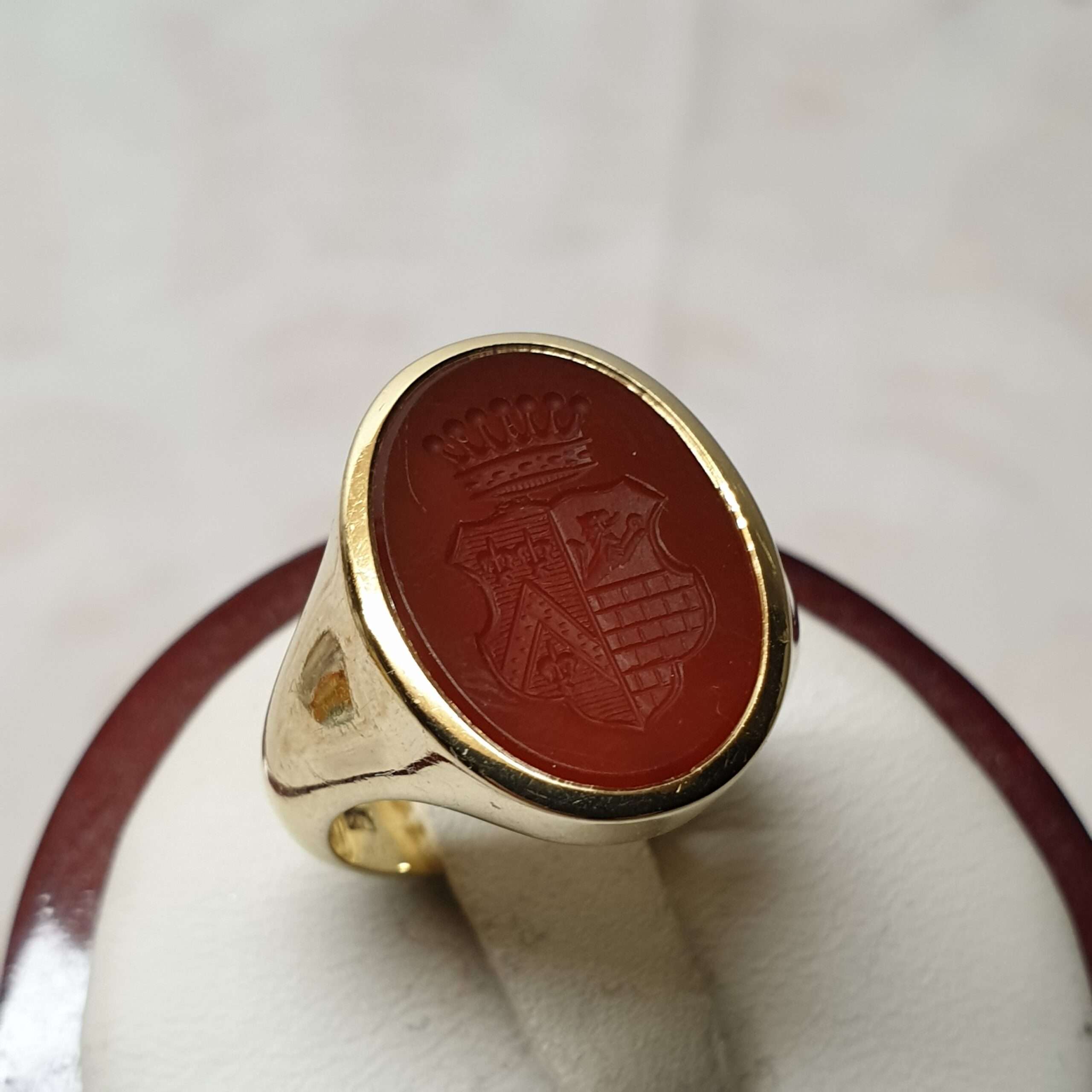 Siegelring / Goldring Gold 585 bestückt mit einer Karneol-Platte. In den Stein ist ein Wappen eingraviert.
