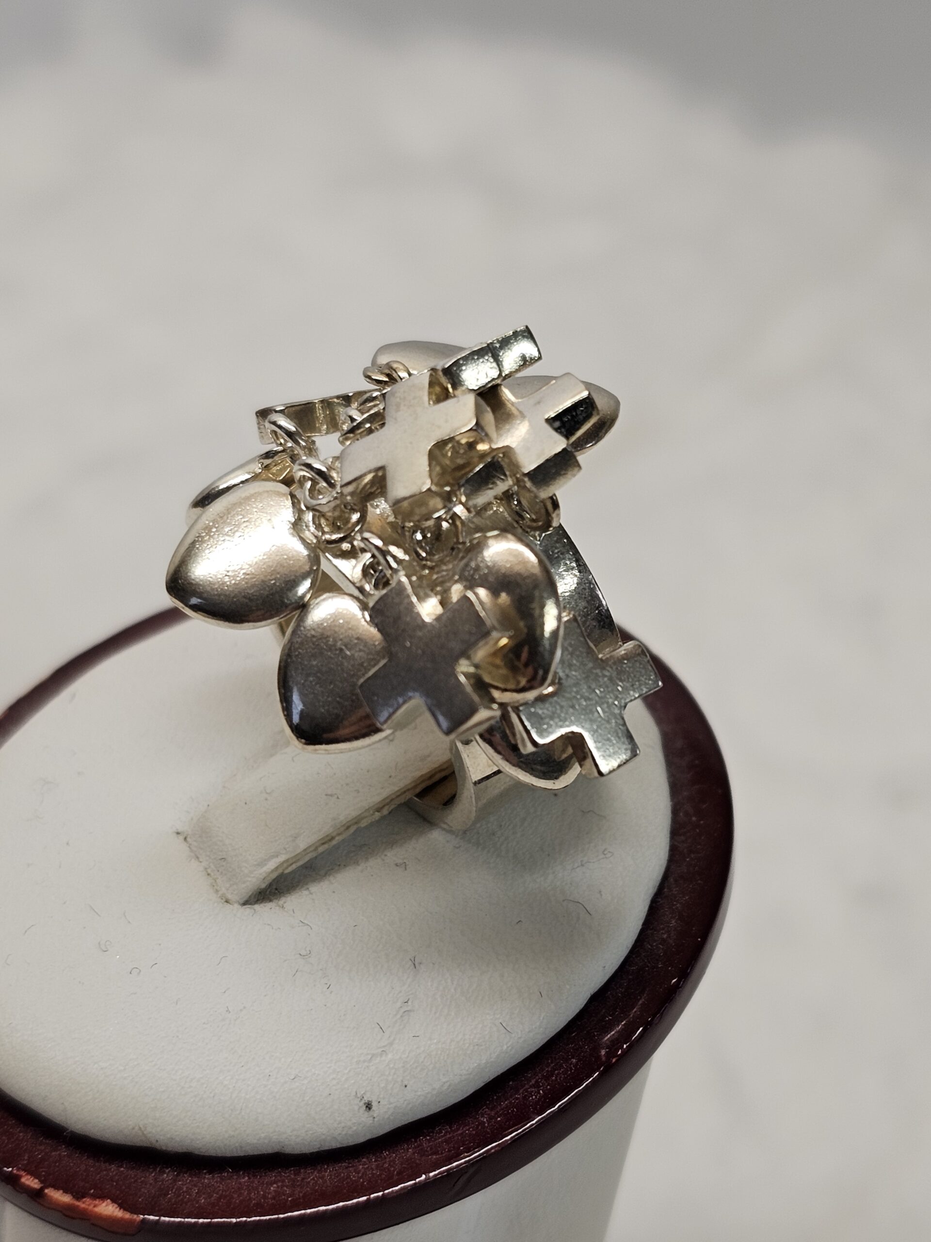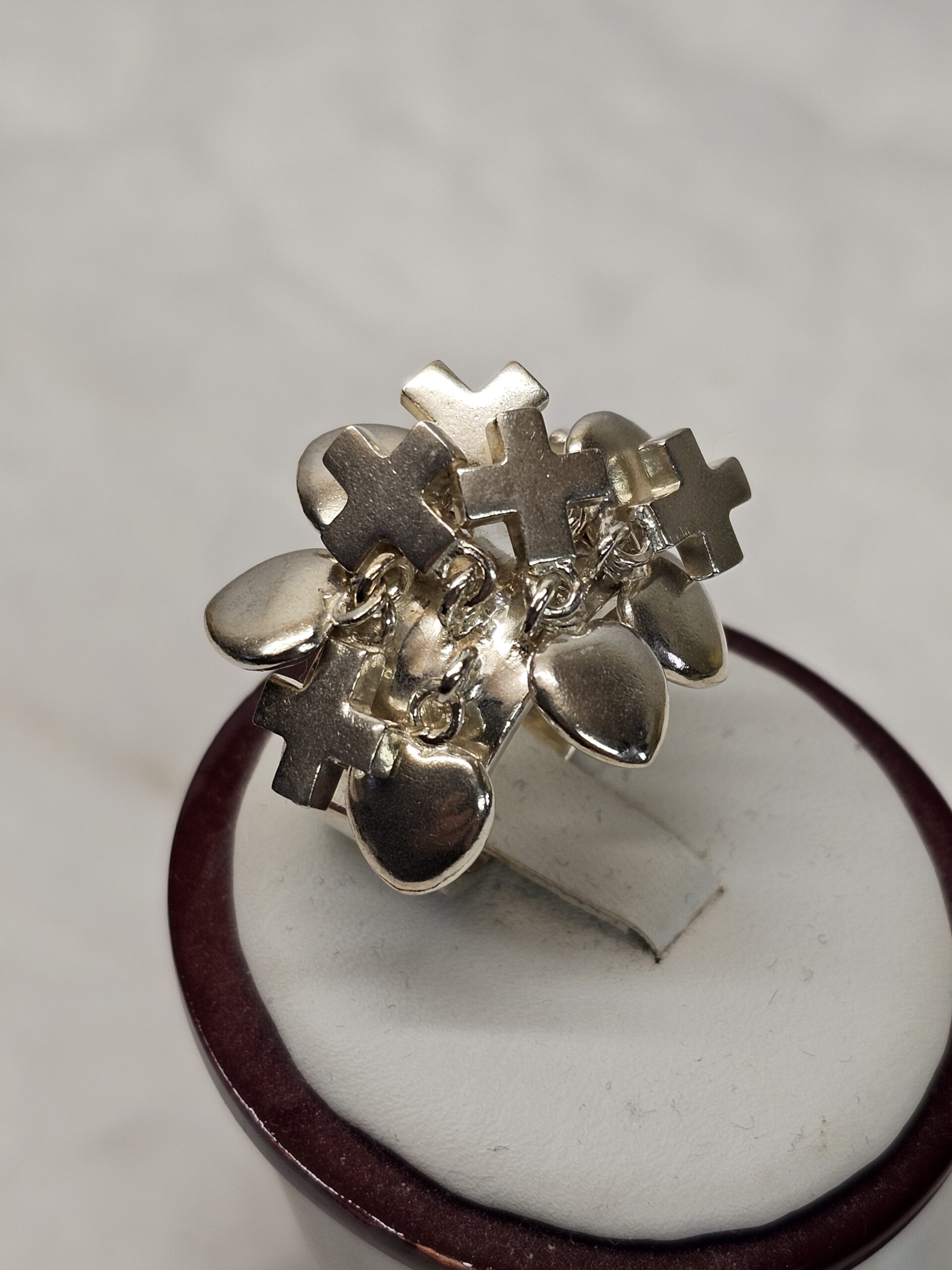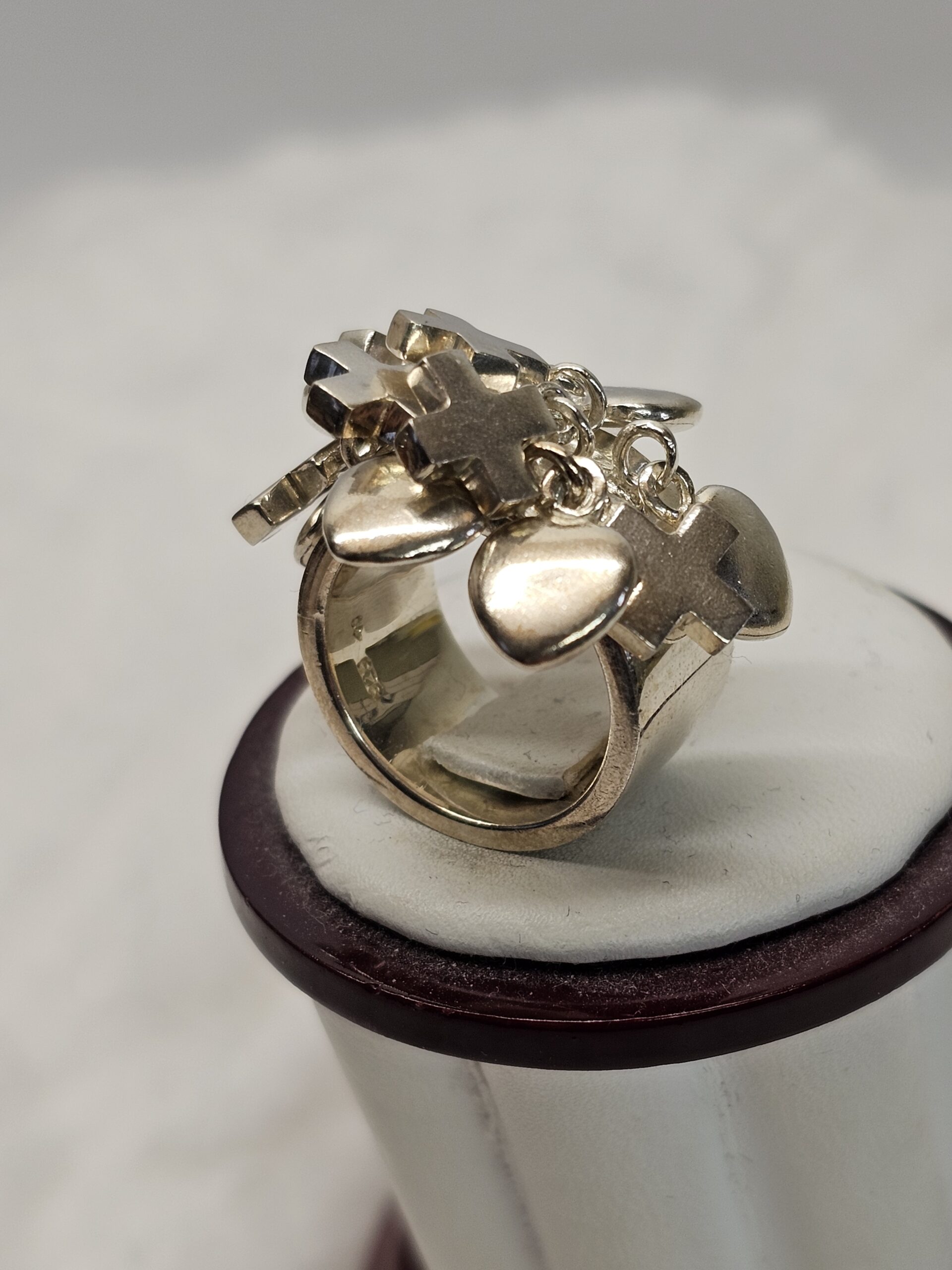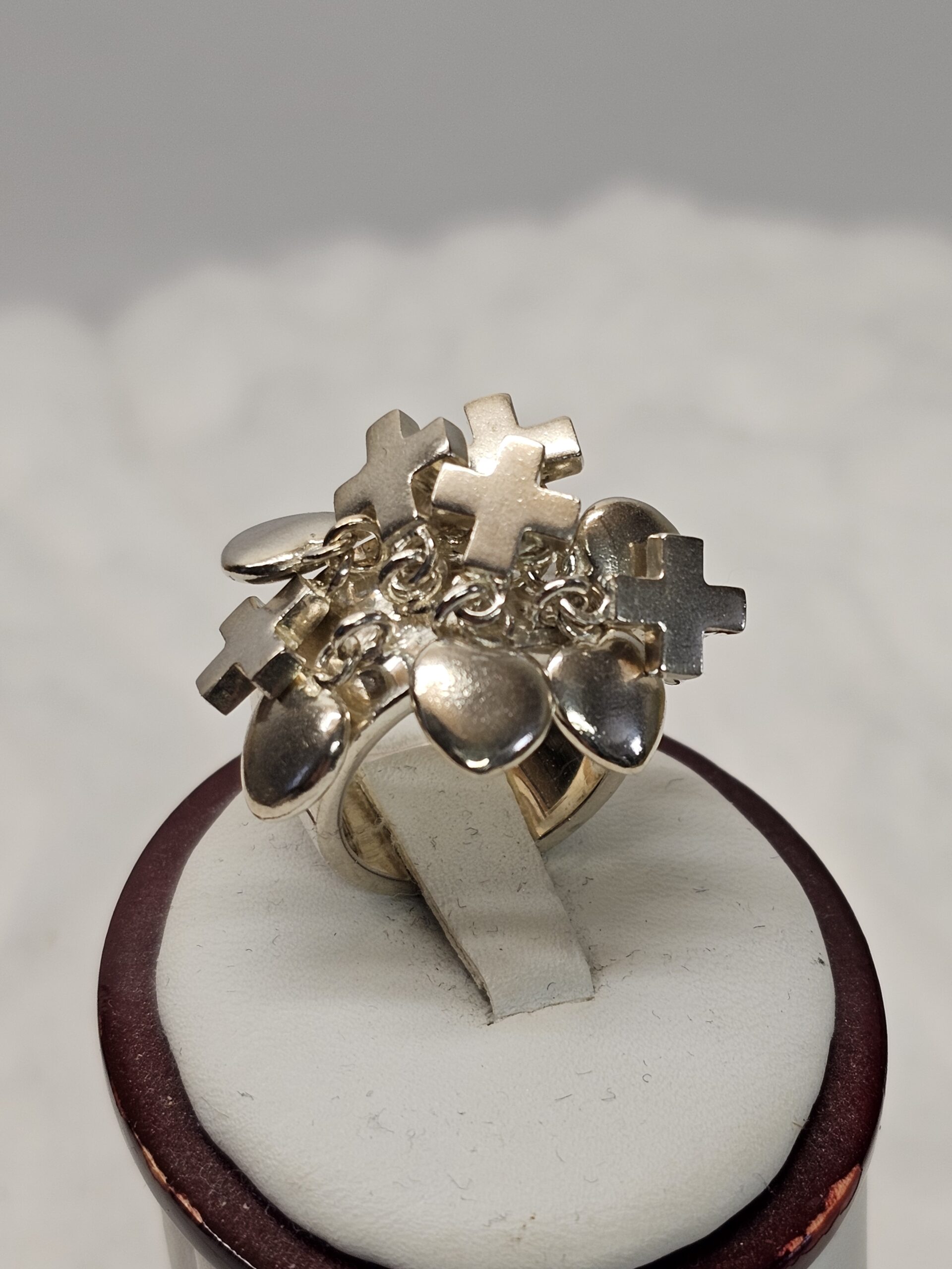 Außergewöhnlicher, massiver Ring mit ganz vielen Herzchen- und Kreuz-Charms.