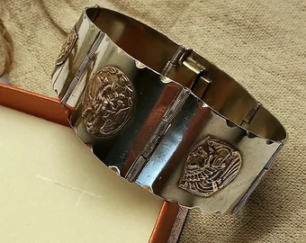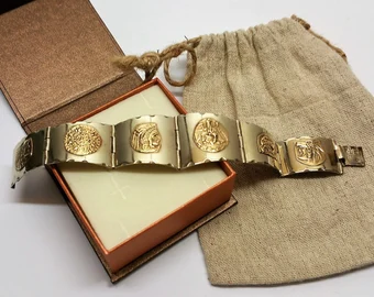Seltenes Gliederarmband / Armband mit Indianer Symbolen auf den einzelnen Gliedern. Das Armband ist in Silber 925 gefertigt und vergoldet.