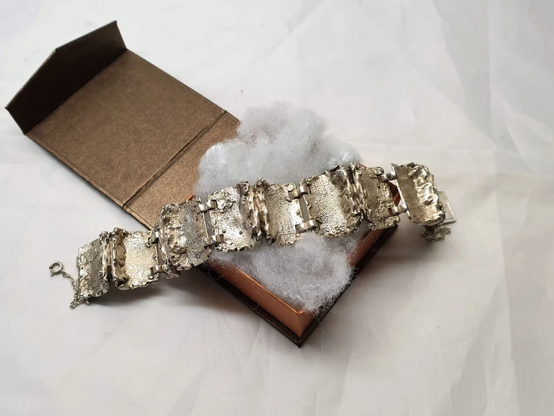 16,5 cm Extravagantes Designer Armband Gliederarmband Silber 835 massive Silberschmiede Kunst Vintage SA291