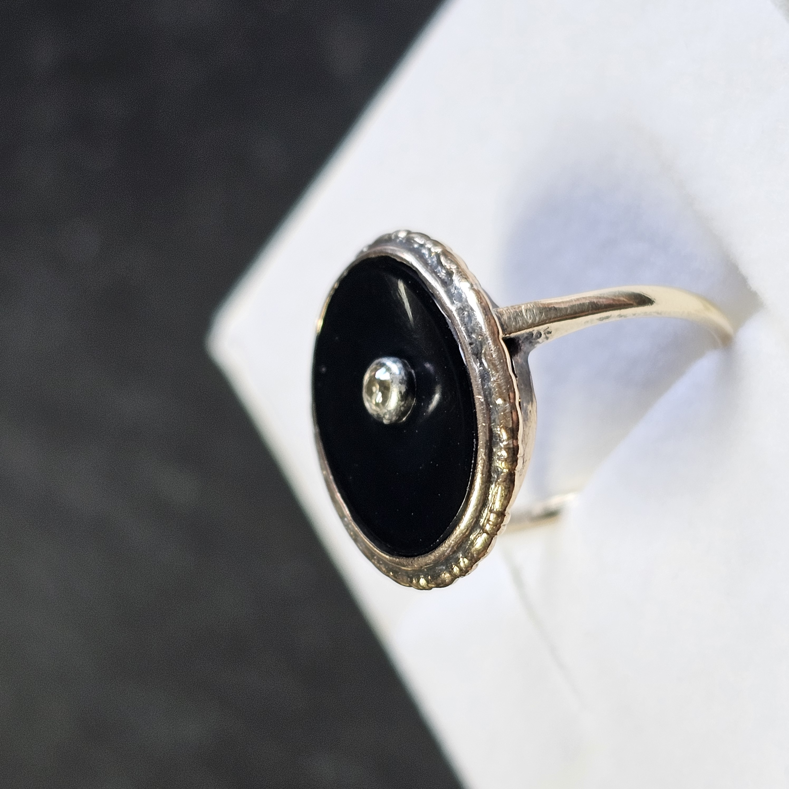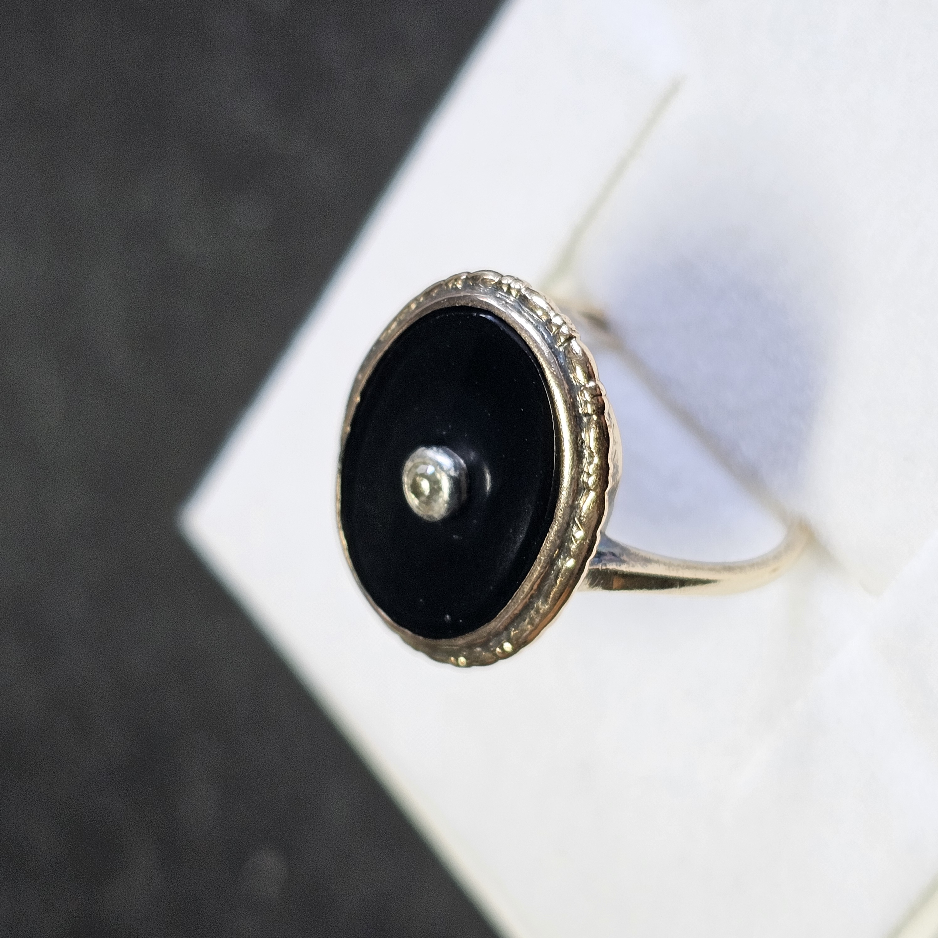 16,6 mm Ring Goldring Jugendstil Gold Onyx Einlage schwarz Diamantrose Shabby Vintage elegant GR423