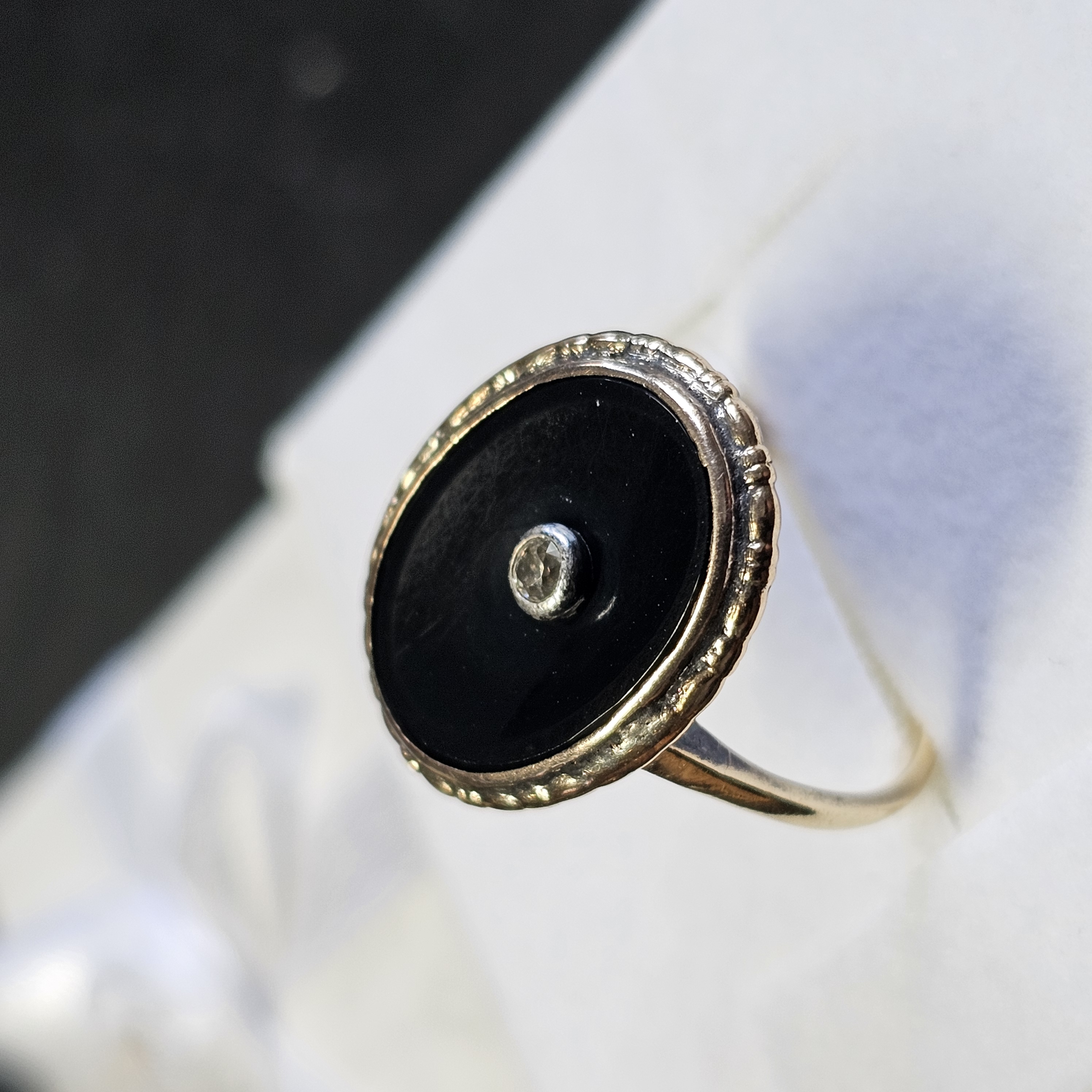 Produktinformationen "16,6 mm Ring Goldring Jugendstil Gold Onyx Einlage schwarz Diamantrose Shabby Vintage elegant GR423"
