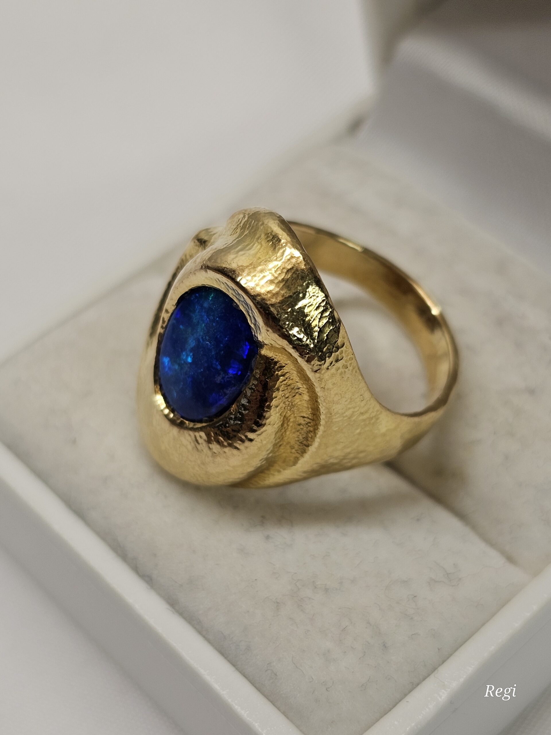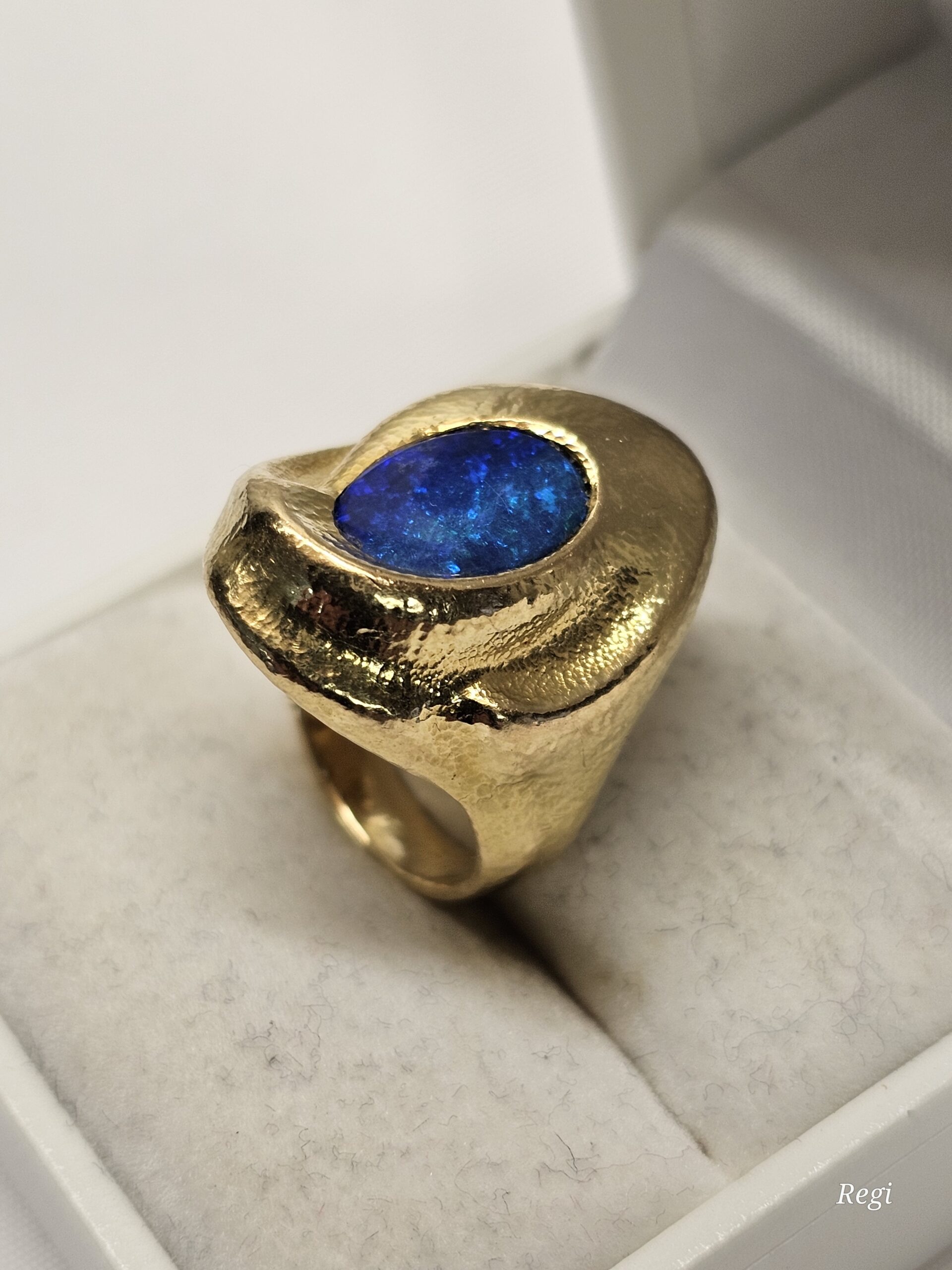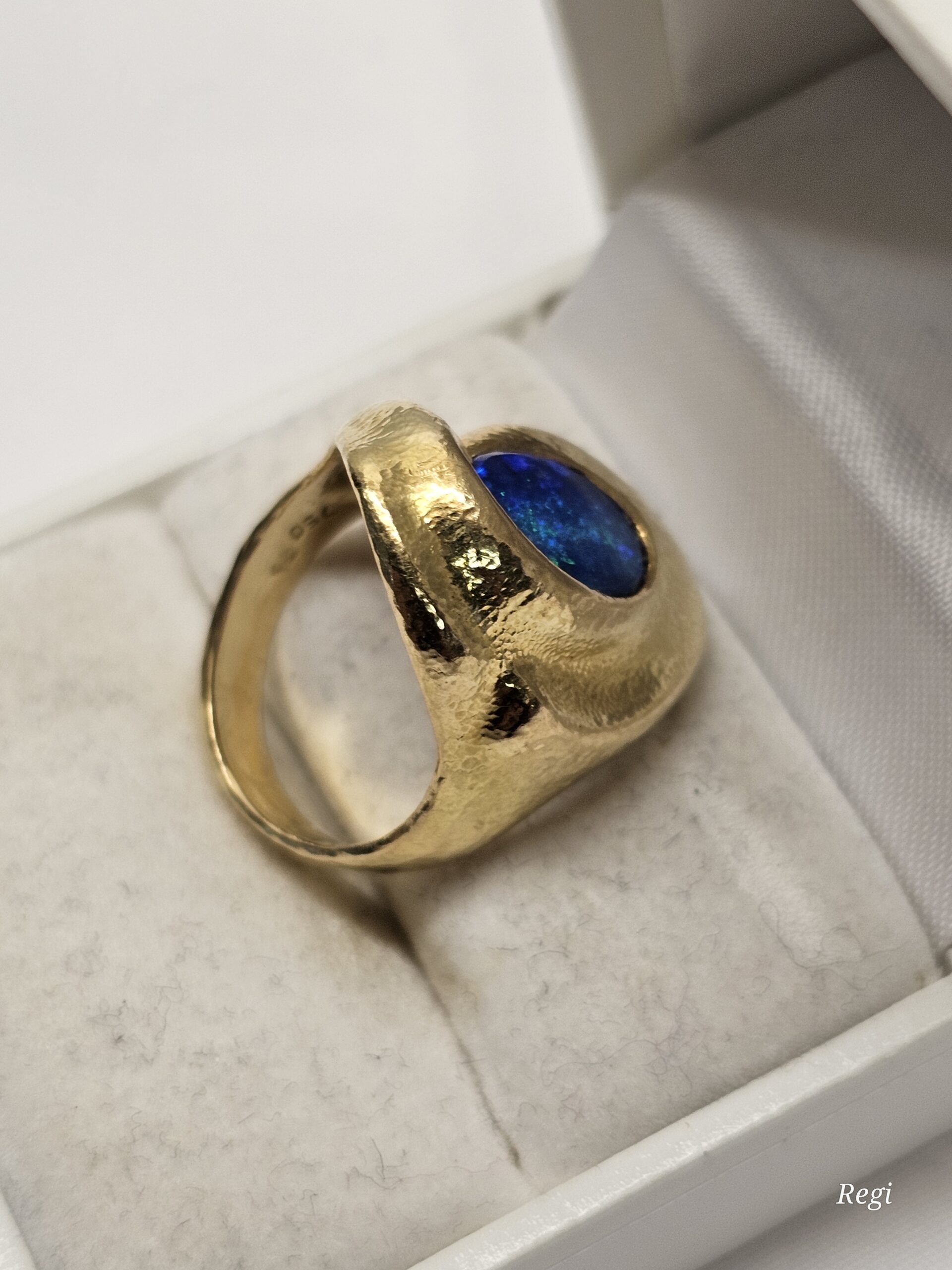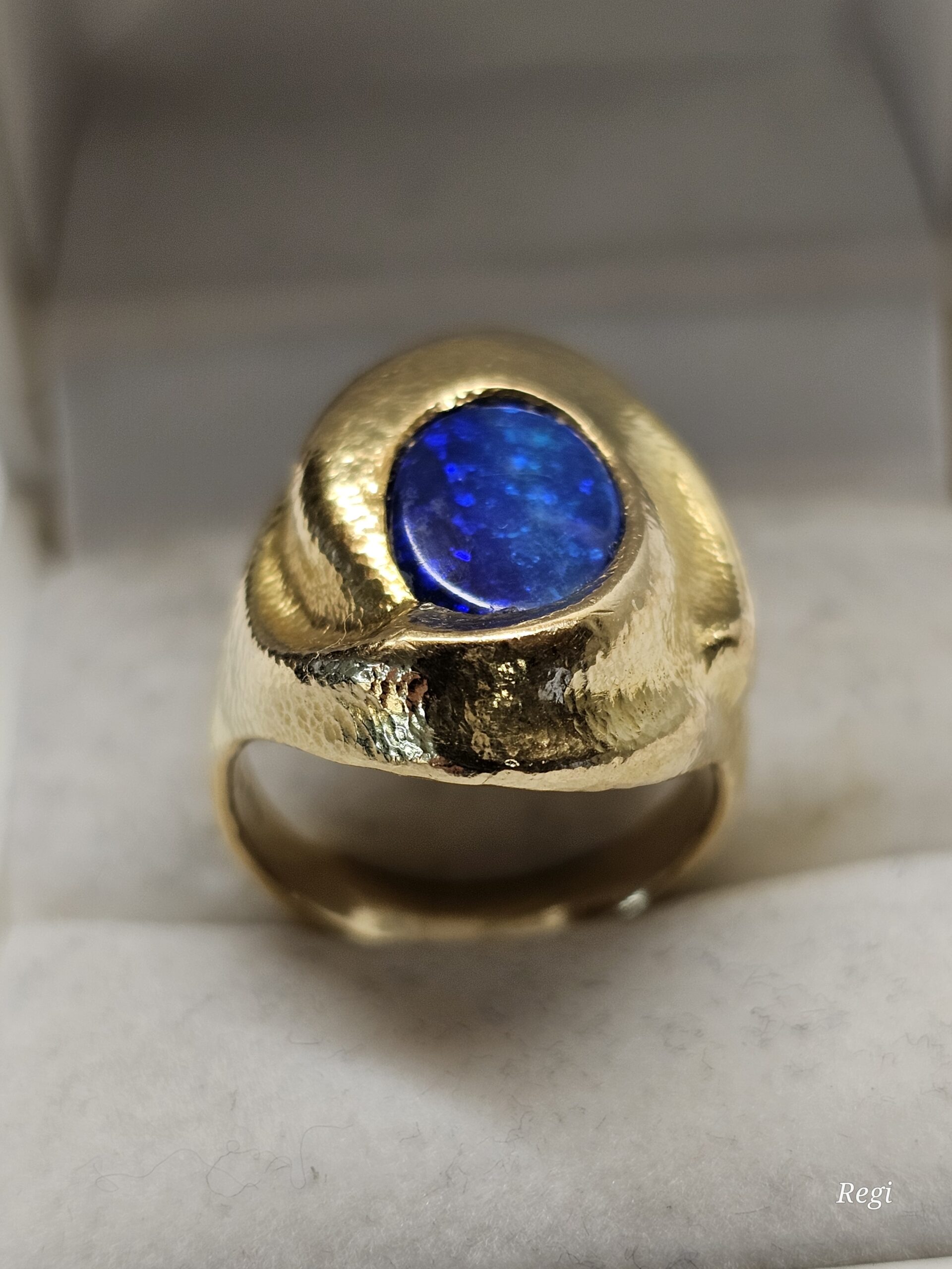 Wunderschöner, außergewöhnlicher und besonderer Ring Gold 750, besetzt mit einem blauen Opal.