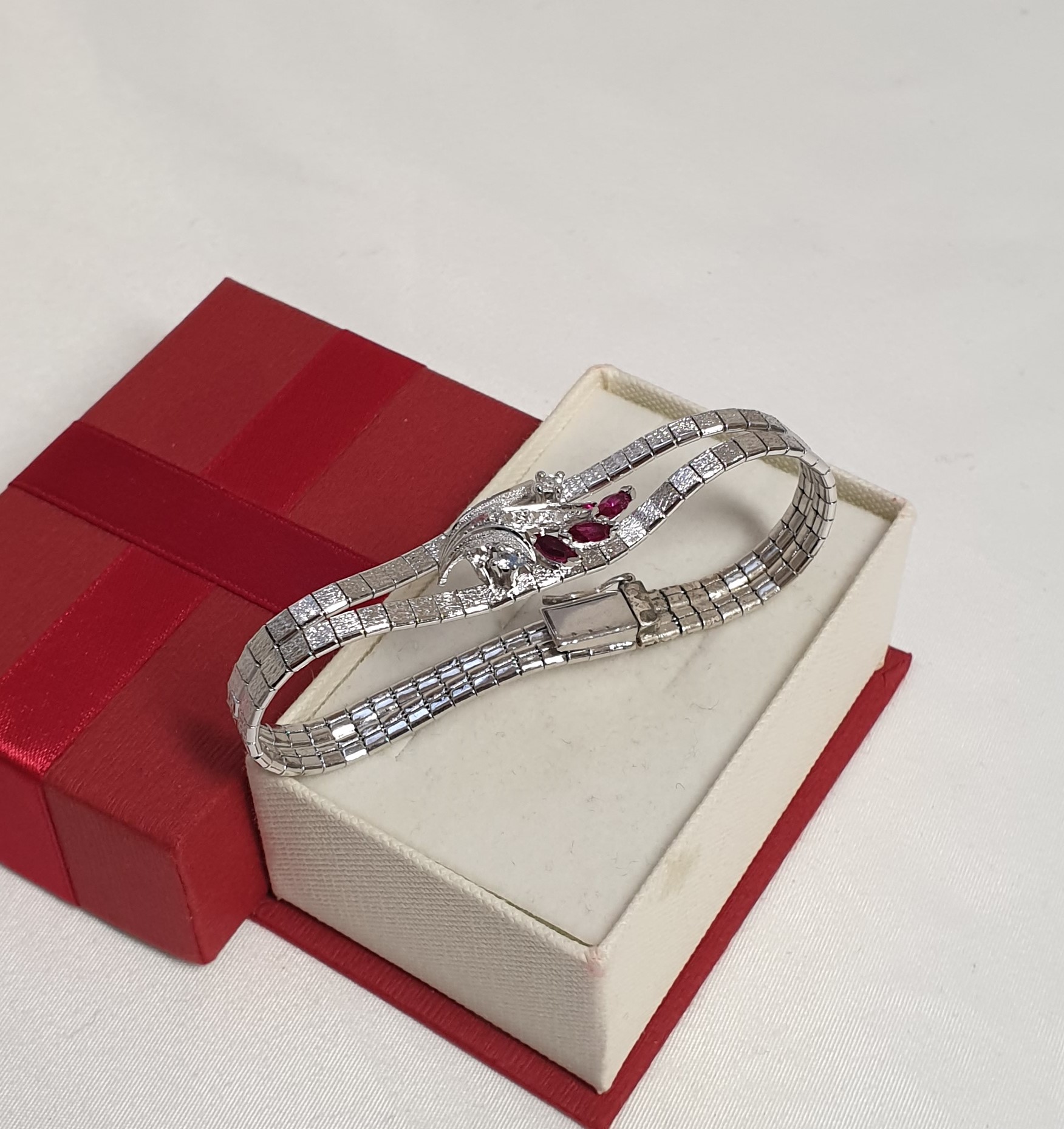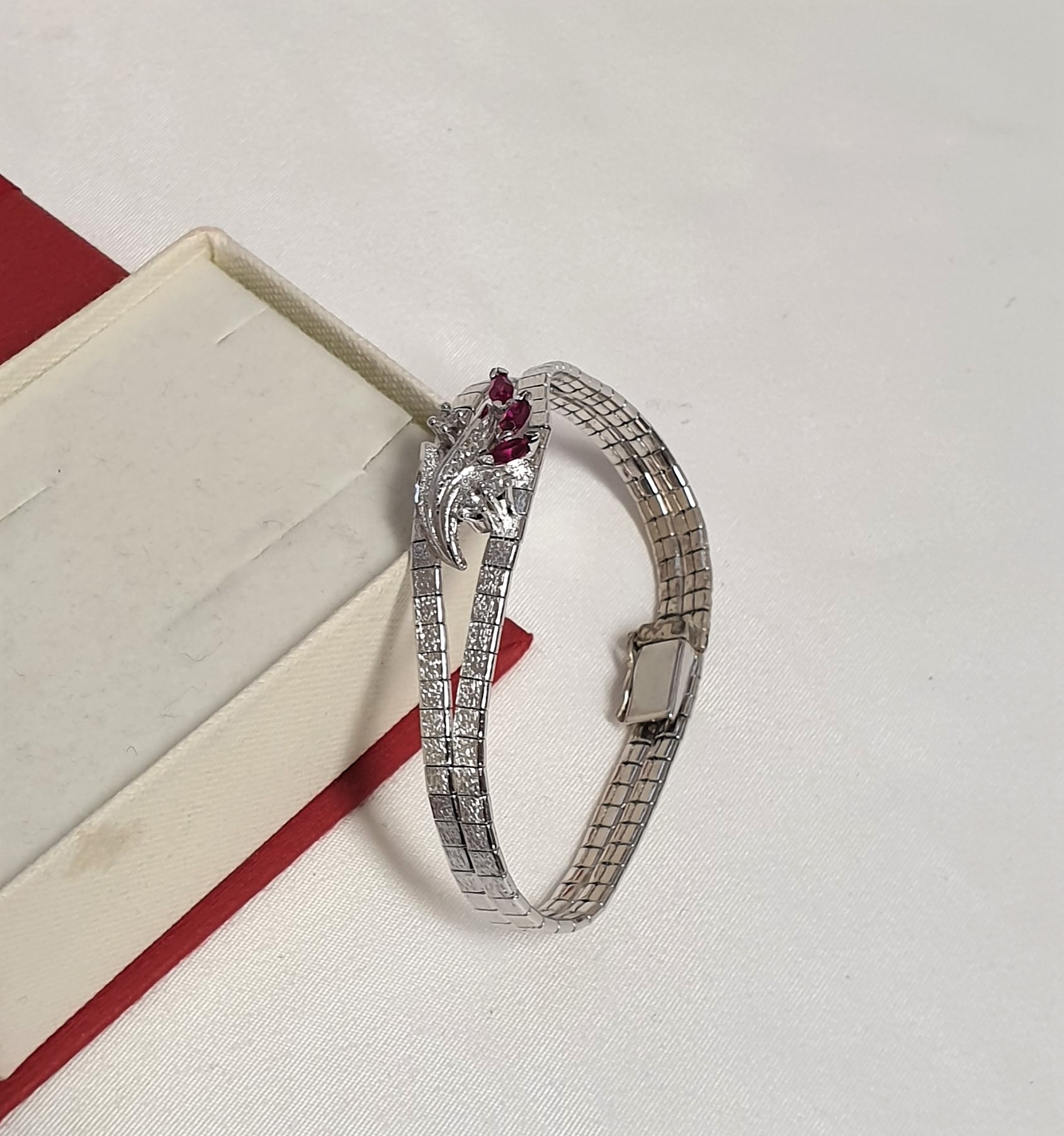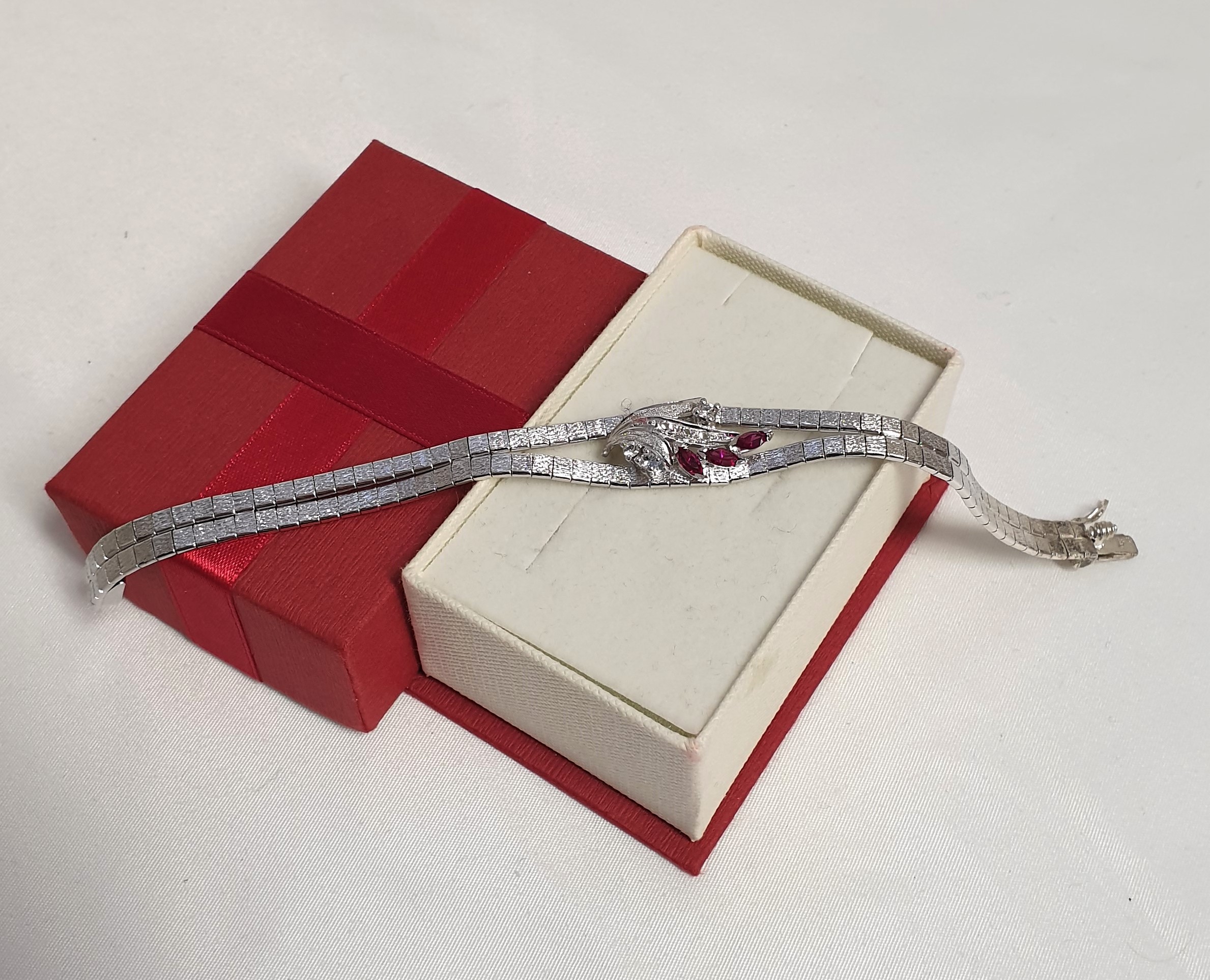 16 cm Schlangenarmband Armband Silber 835 Turmalin rosa rot & Kristalle klar Vintage Eleganz SA505