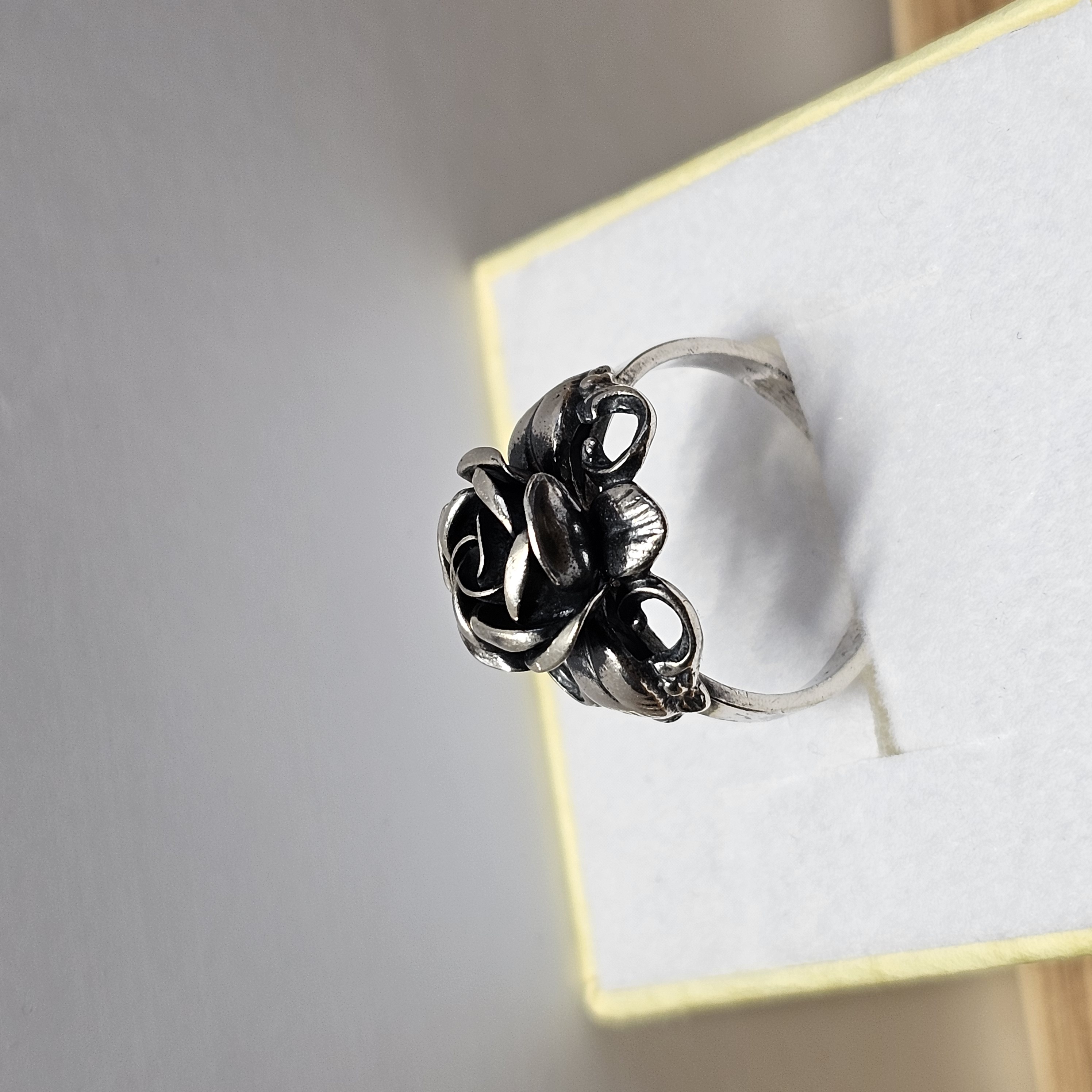 17,8 mm Nostalgischer Ring Teka Silber 925 Rose Blume Vintage elegant SR1318