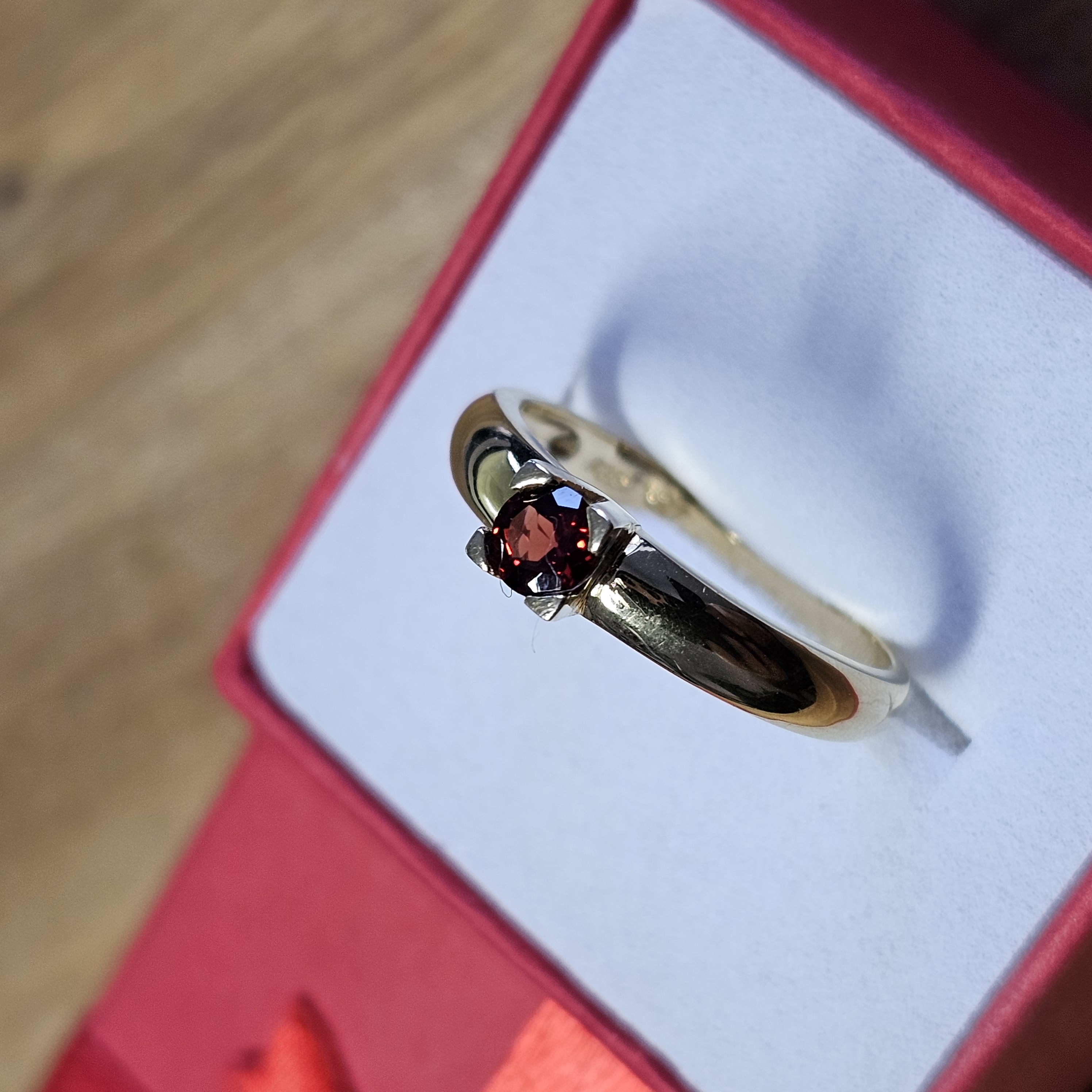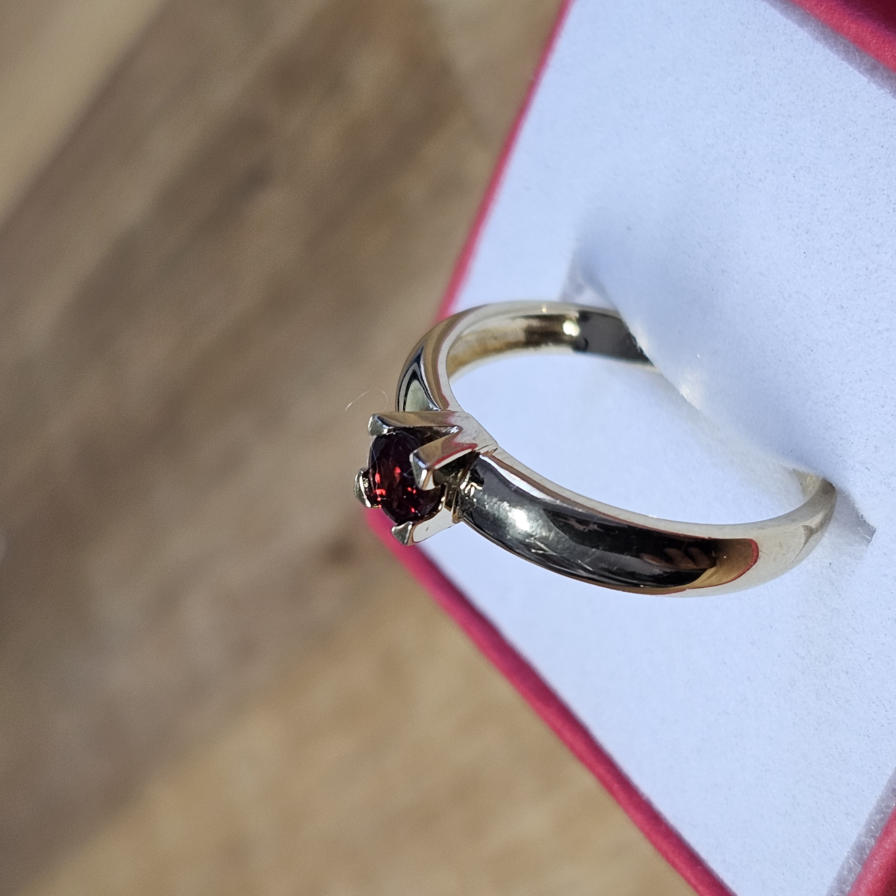 Wunderschöner Vintage-Ring Gold 585, besetzt mit einem kleinen Hessonit Granatsteinchen.