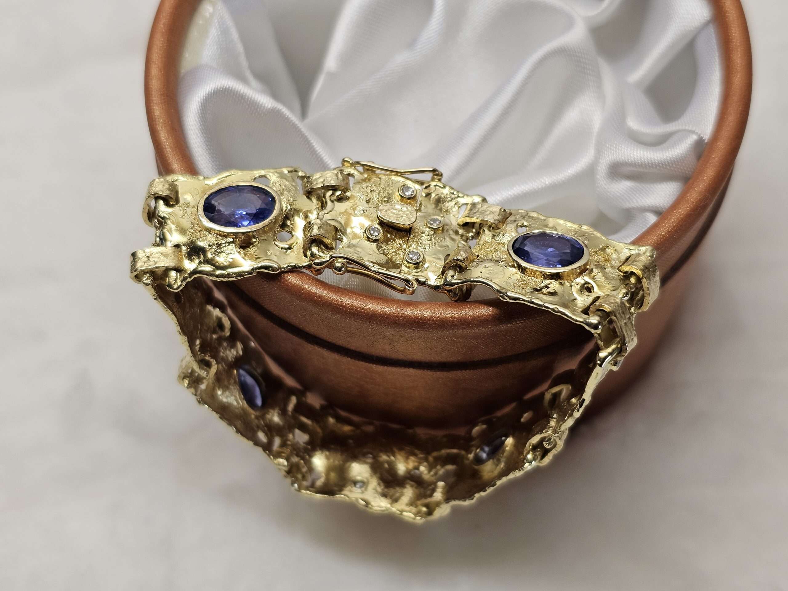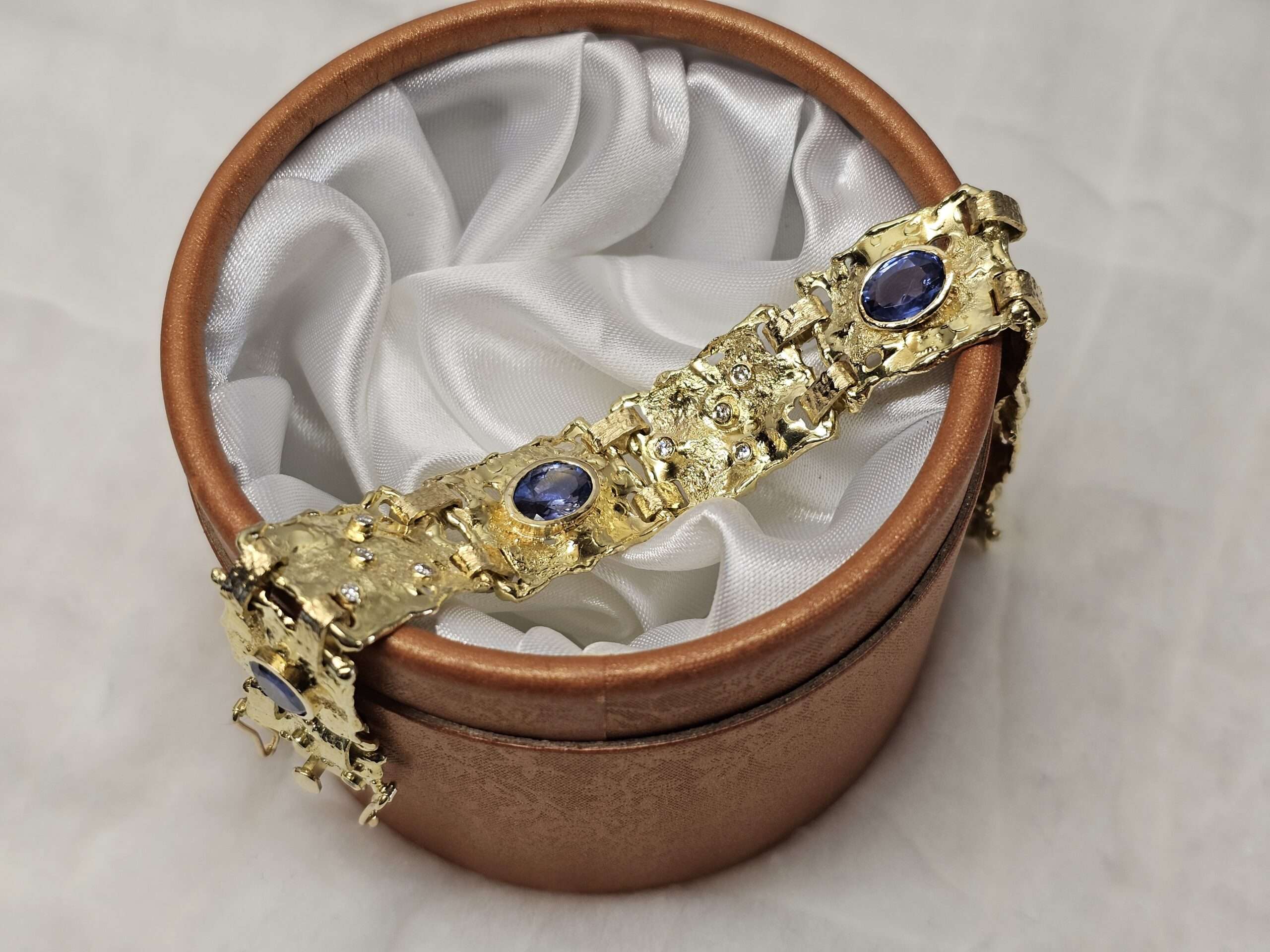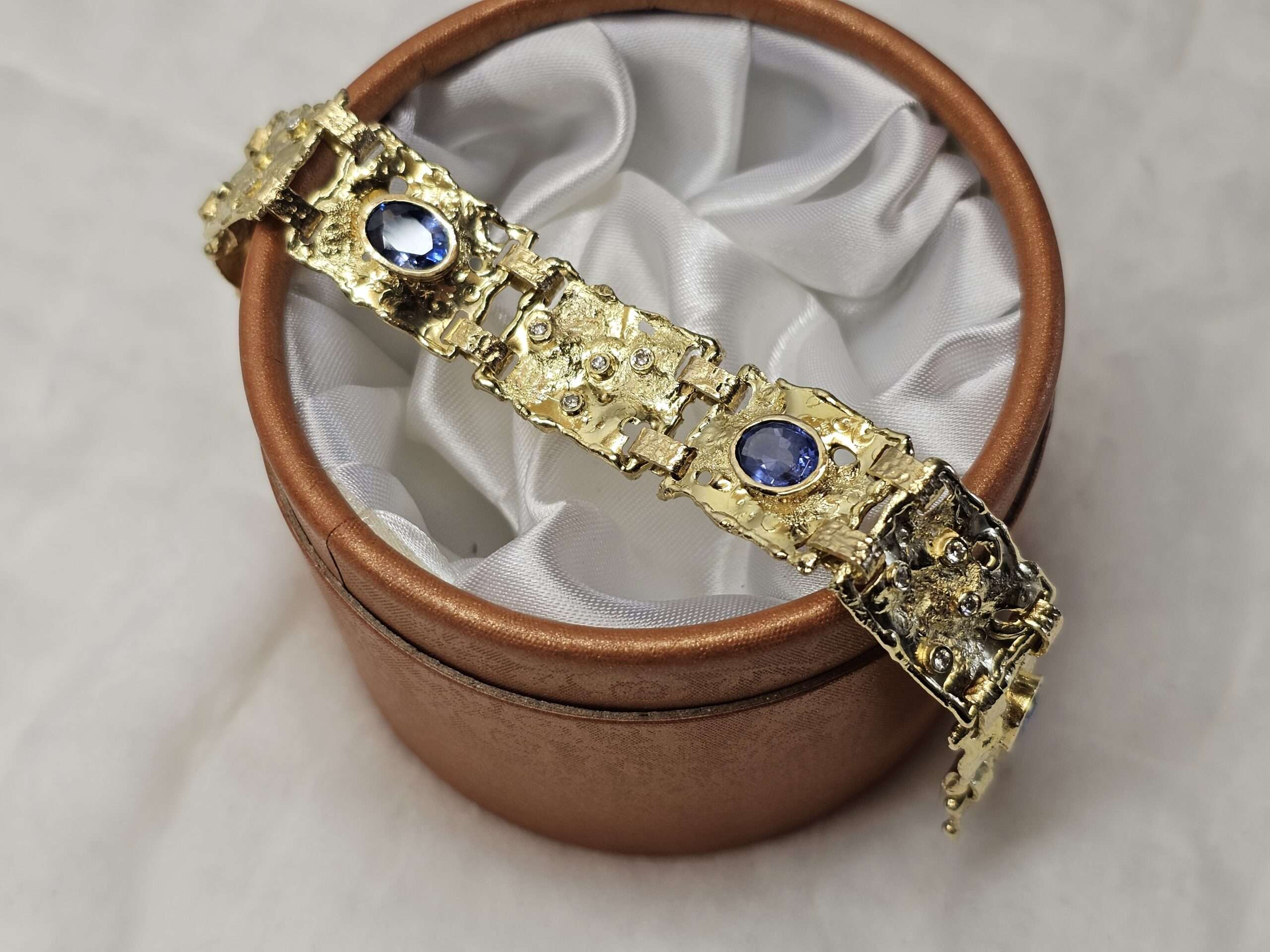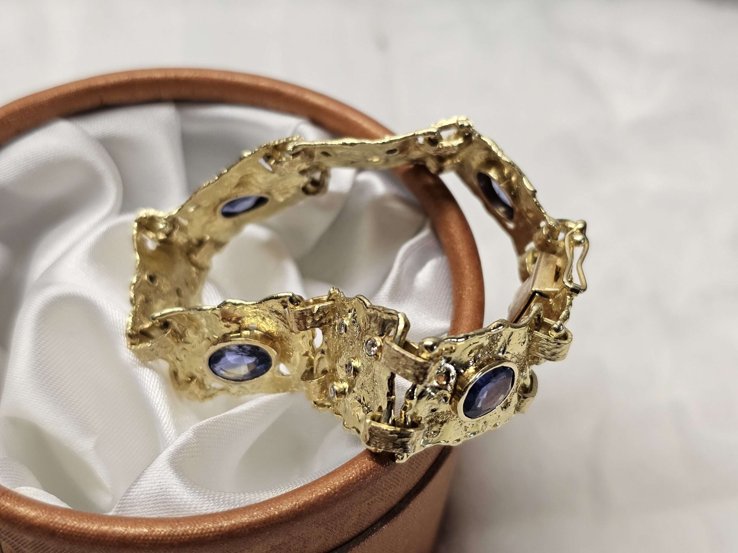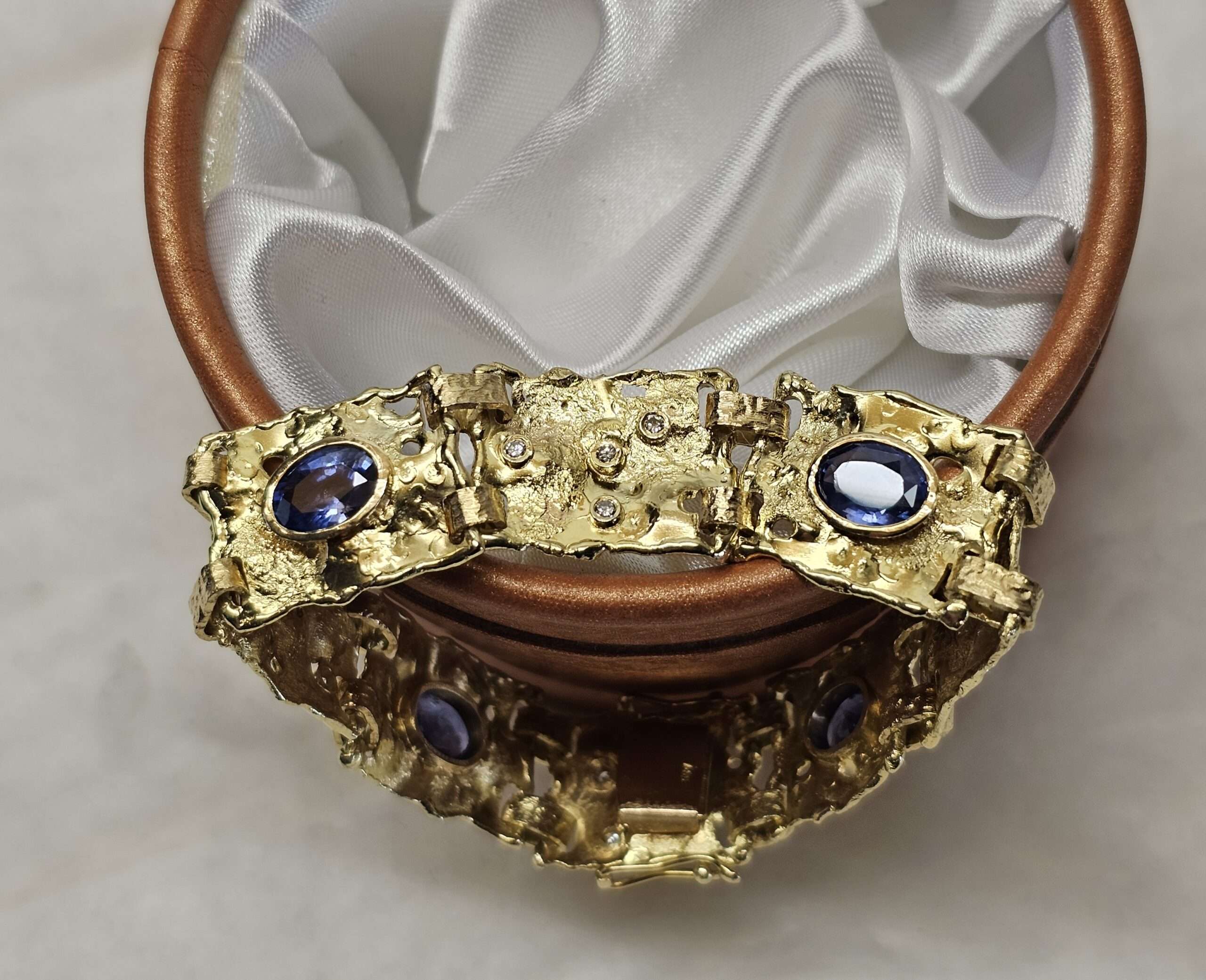 18 cm Armband Gliederarmband Gold 585 Saphire kornblumenblau & Brillanten Goldschmiede Kunst kunstvolles Design Vintage elegant Unikat GA118
