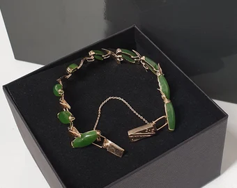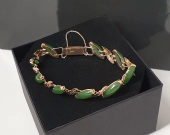 18 cm Glieder Armband Goldarmband Armschmuck Goldschmiede Kunst Gold 585 Jade Vintage edel GA100