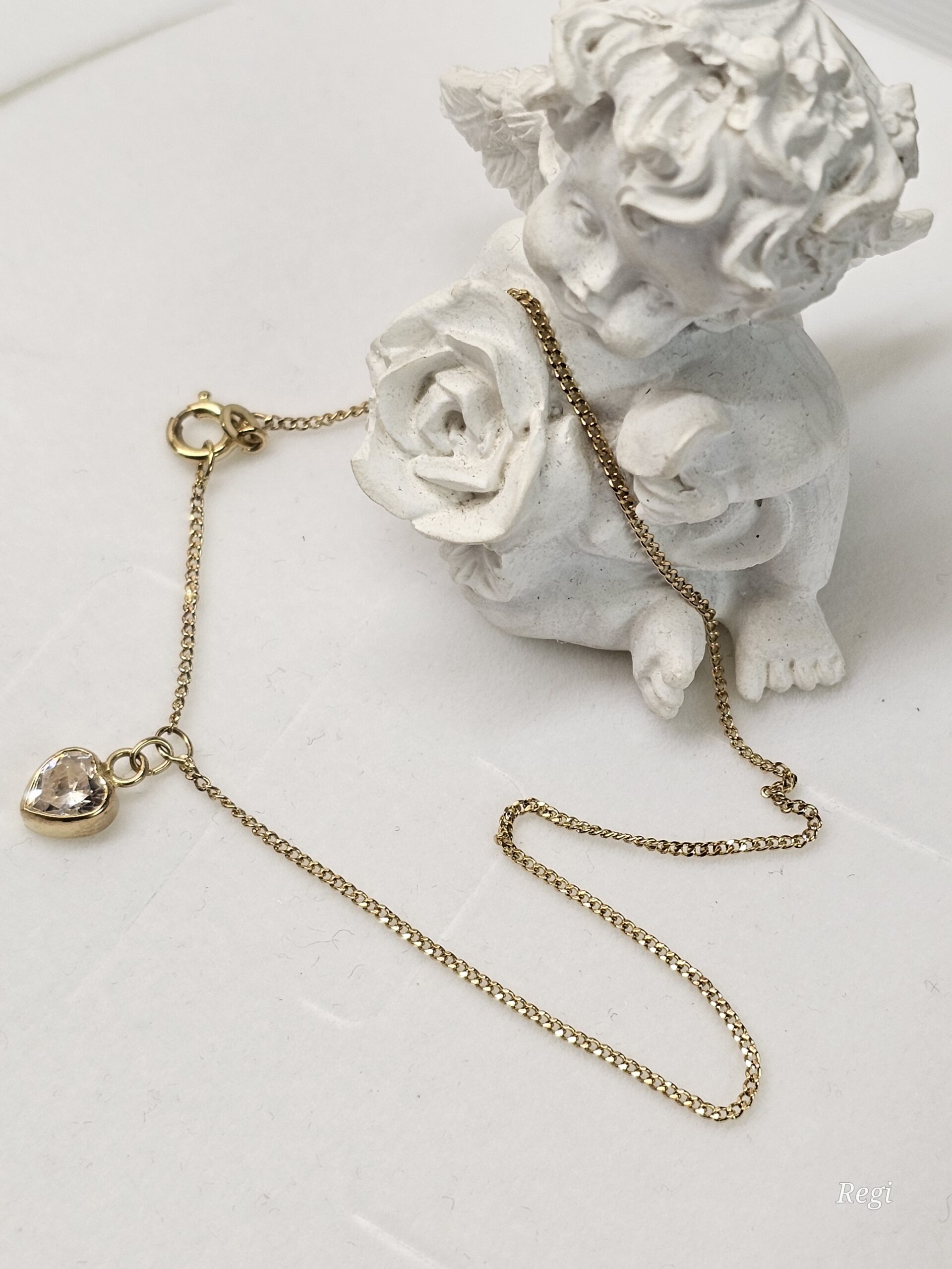 Hübsches Fußkettchen aus Gold 333 mit einem Kristall Herzchenanhänger.