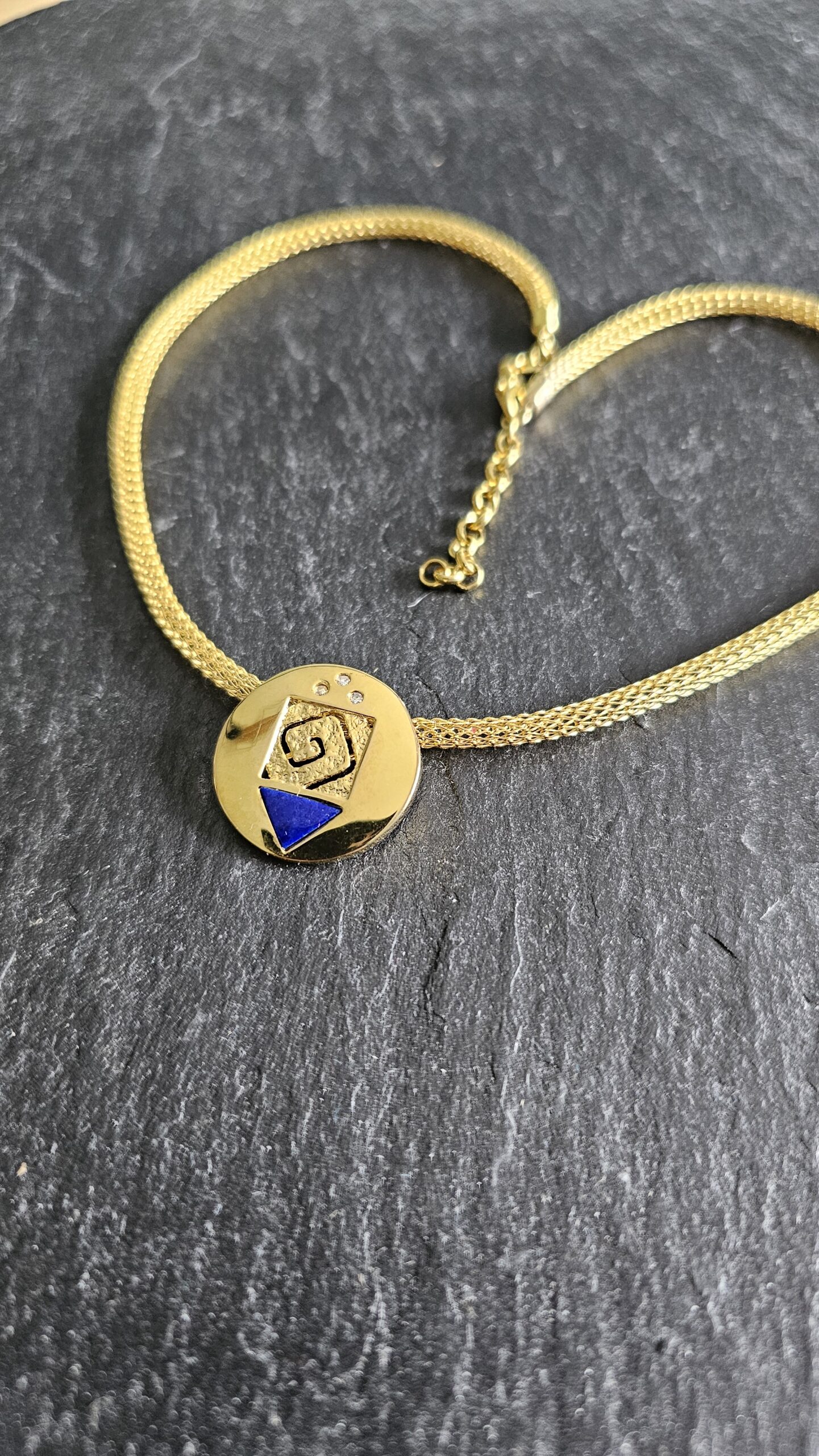 38 - 41,5 cm Kette Goldkette gewebtes Design mit Anhänger Gold 375 Lapislazuli & Diamant Steinchen Vintage Design extravagant elegant GK137