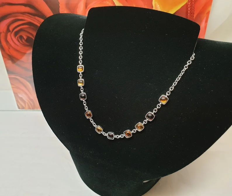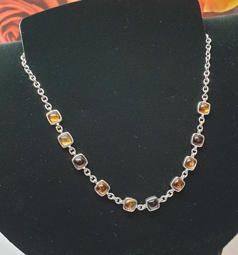 Tolle Kette / Gliederkette aus Silber 925. Ein tolles Vintage-Schmuckstück mit Kristallsteinen in den Farben gelb/orange/braun.