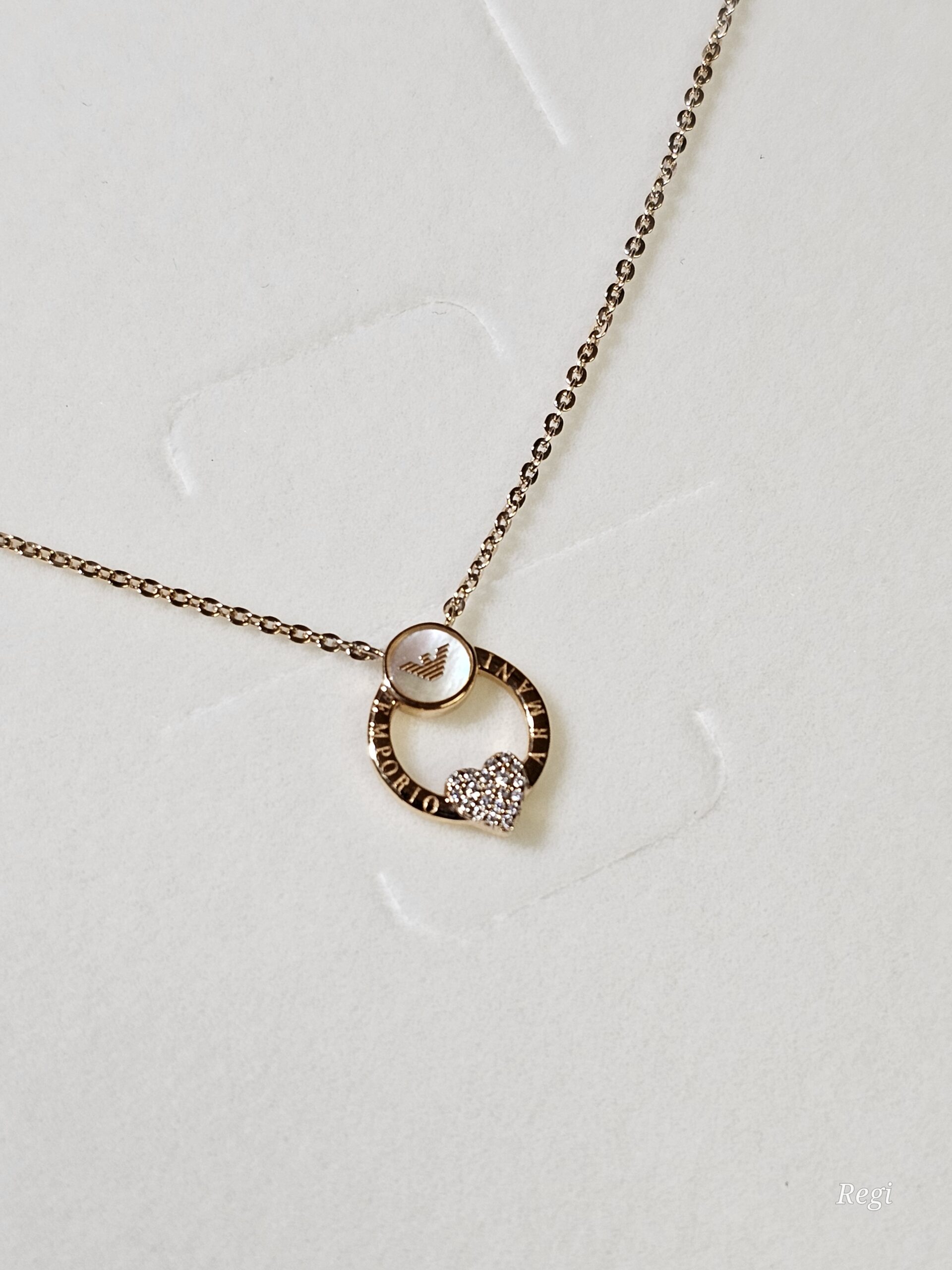 Produktinformationen "39 / 40,5 / 42/ 44 cm Stylisch schicke Emporio Armani Kette Halskette Ankerkettchen Collier wenig getragen Silber 925 vergoldet mit Anhänger Herzchen Kristalle klar Vintage elegant SK1376"
