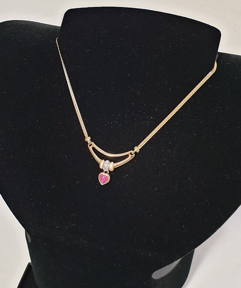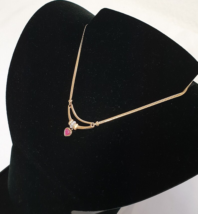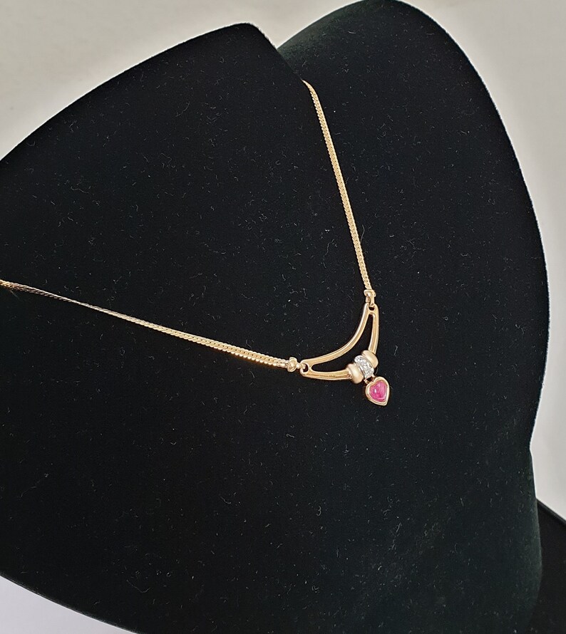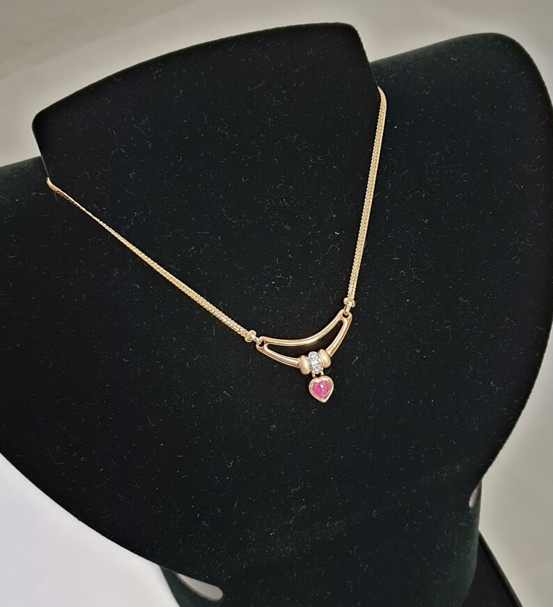 42,5 cm Kette Halskette Collier Gold 375 Rubin Herz Kristalle klar Vintage edel Design GK150