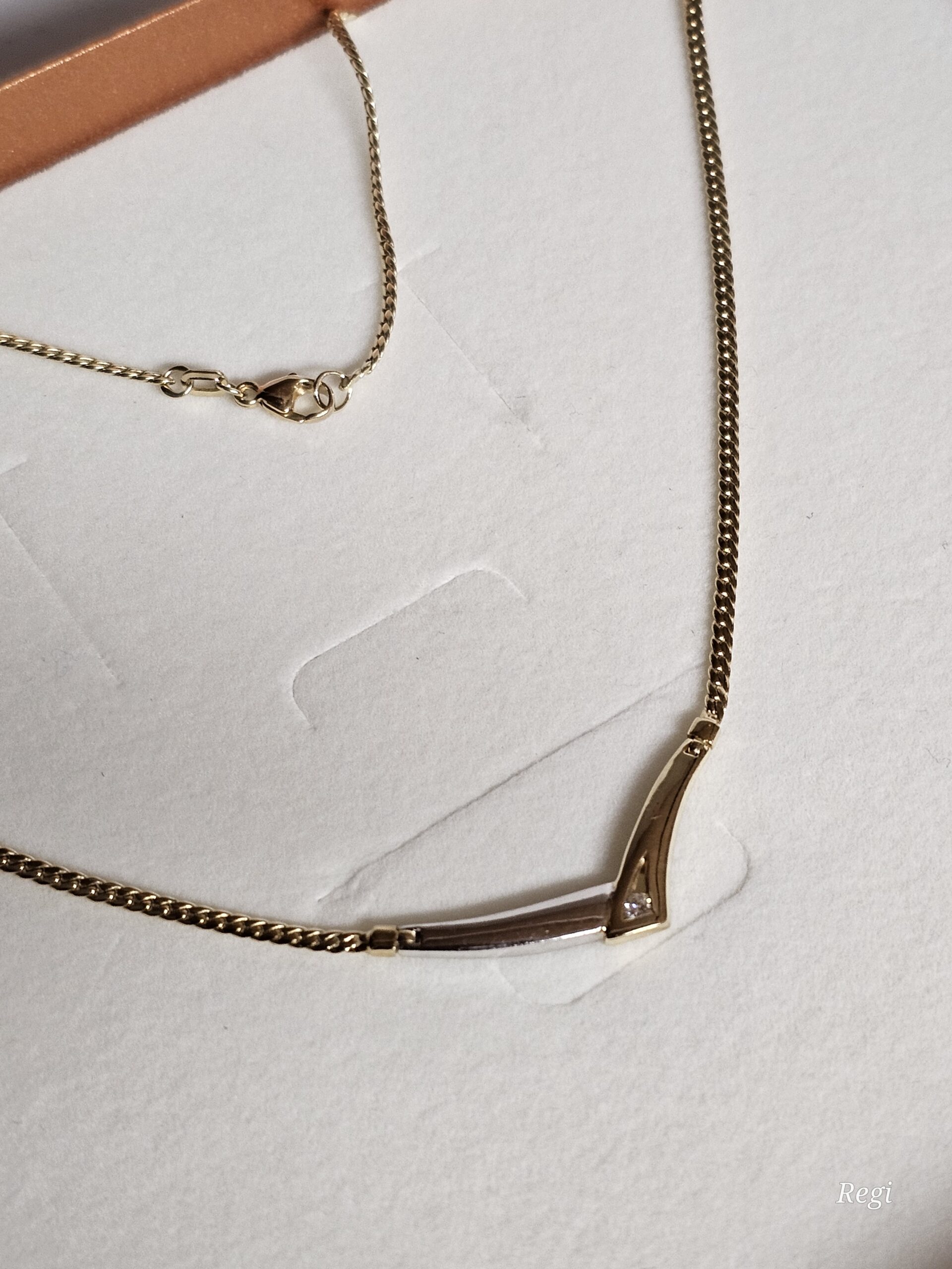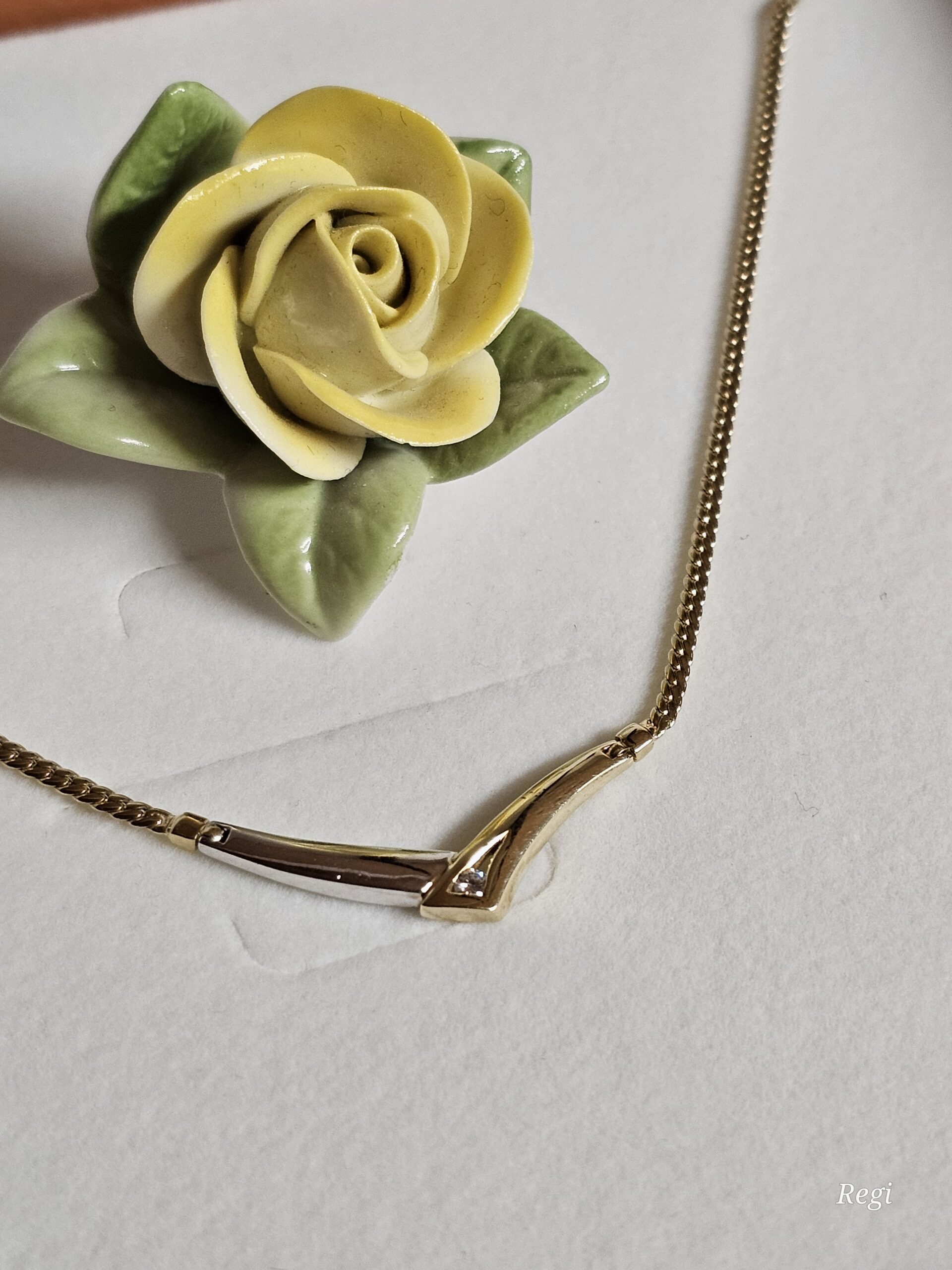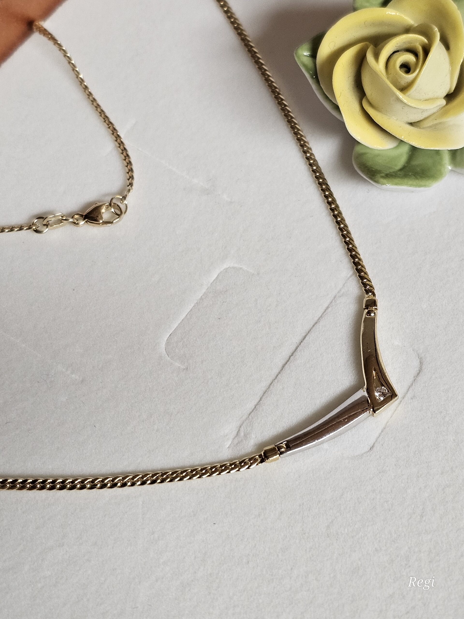 43 cm Elegante Gliederkette Kette mit Anhängerteil Halskette Collier Gelbgold Weißgold Gold 585 Diamantsteinchen Vintage Design selten GK143