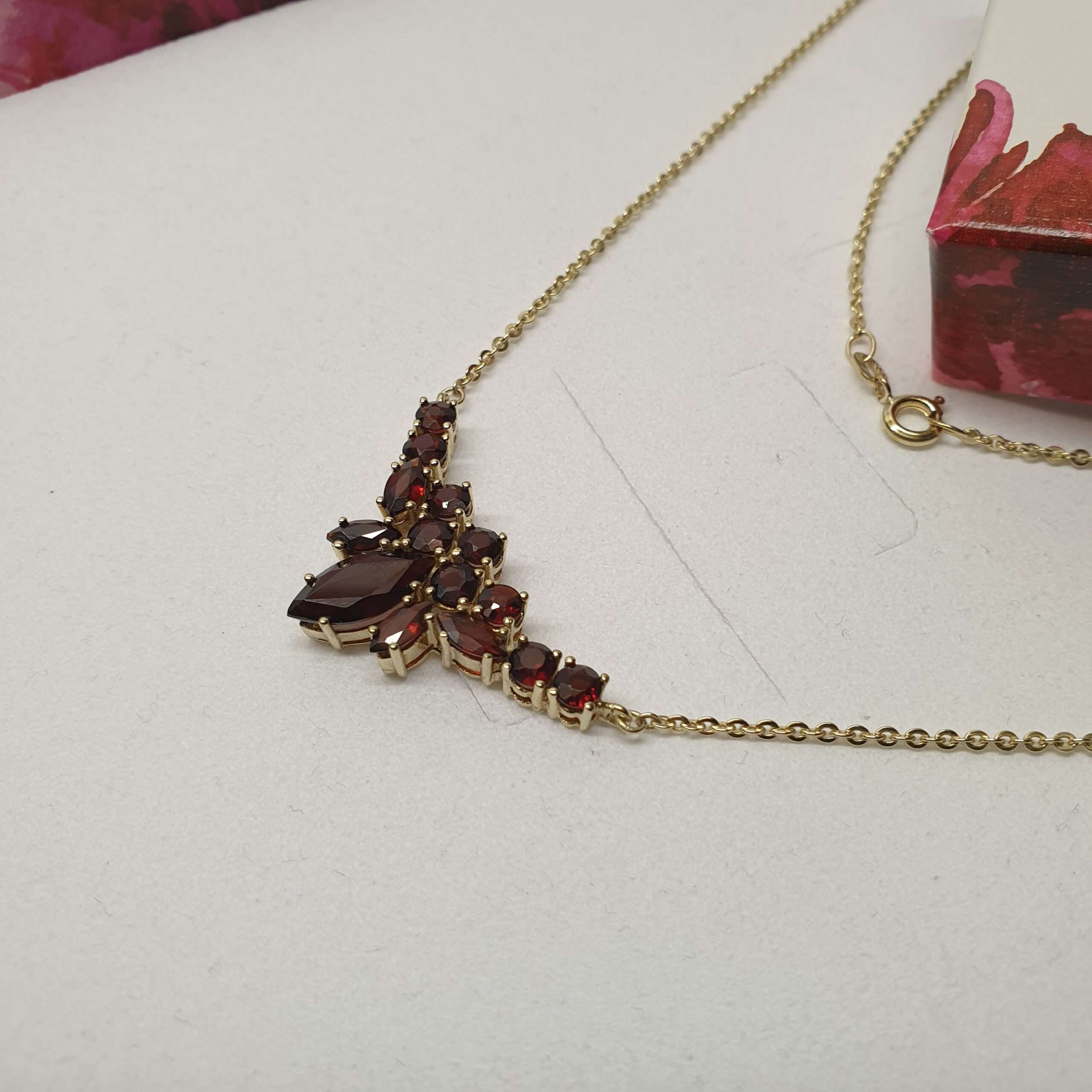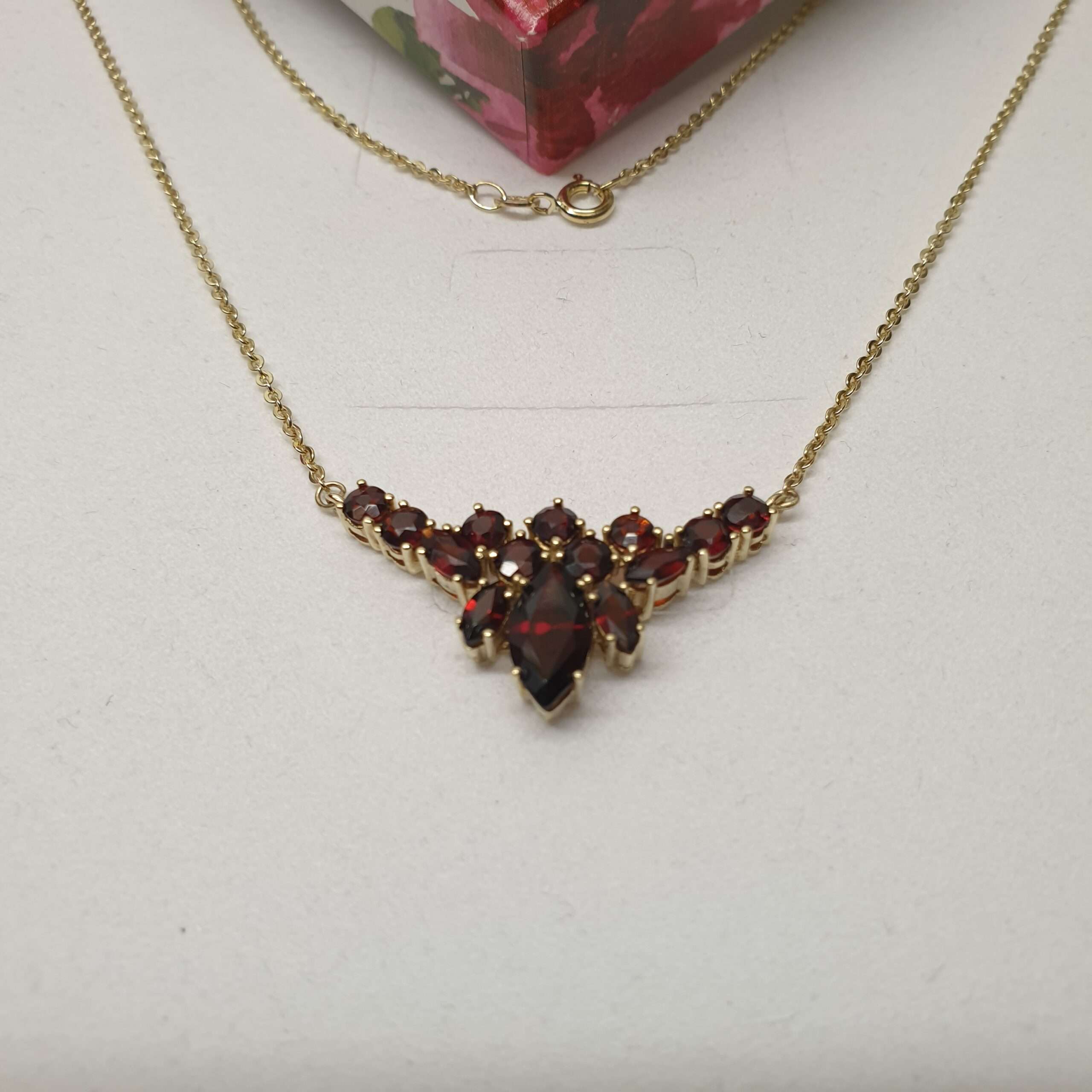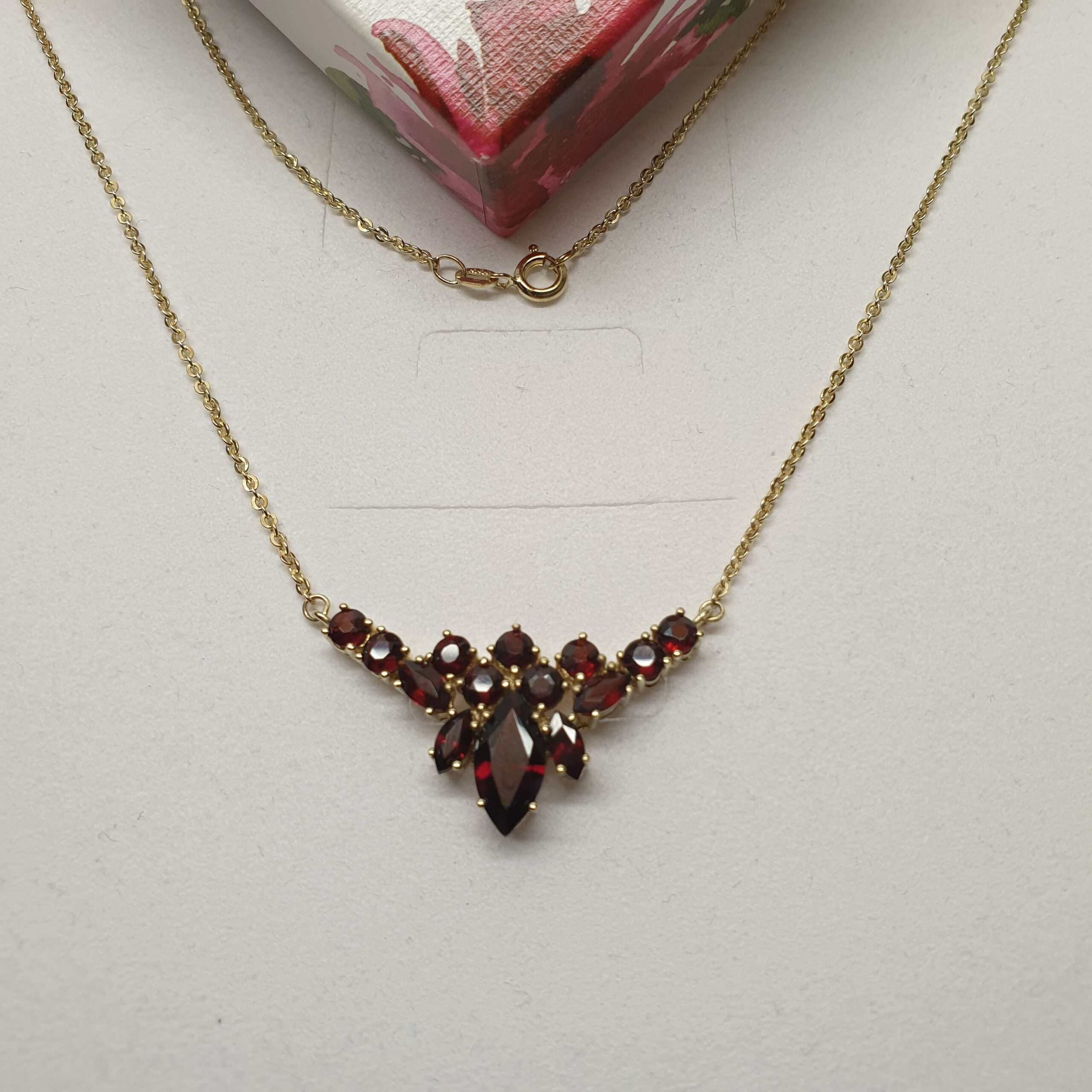Produktinformationen "43 cm Nostalgische Halskette Collier Kette Gold 333 Granat Vintage elegant GK152"