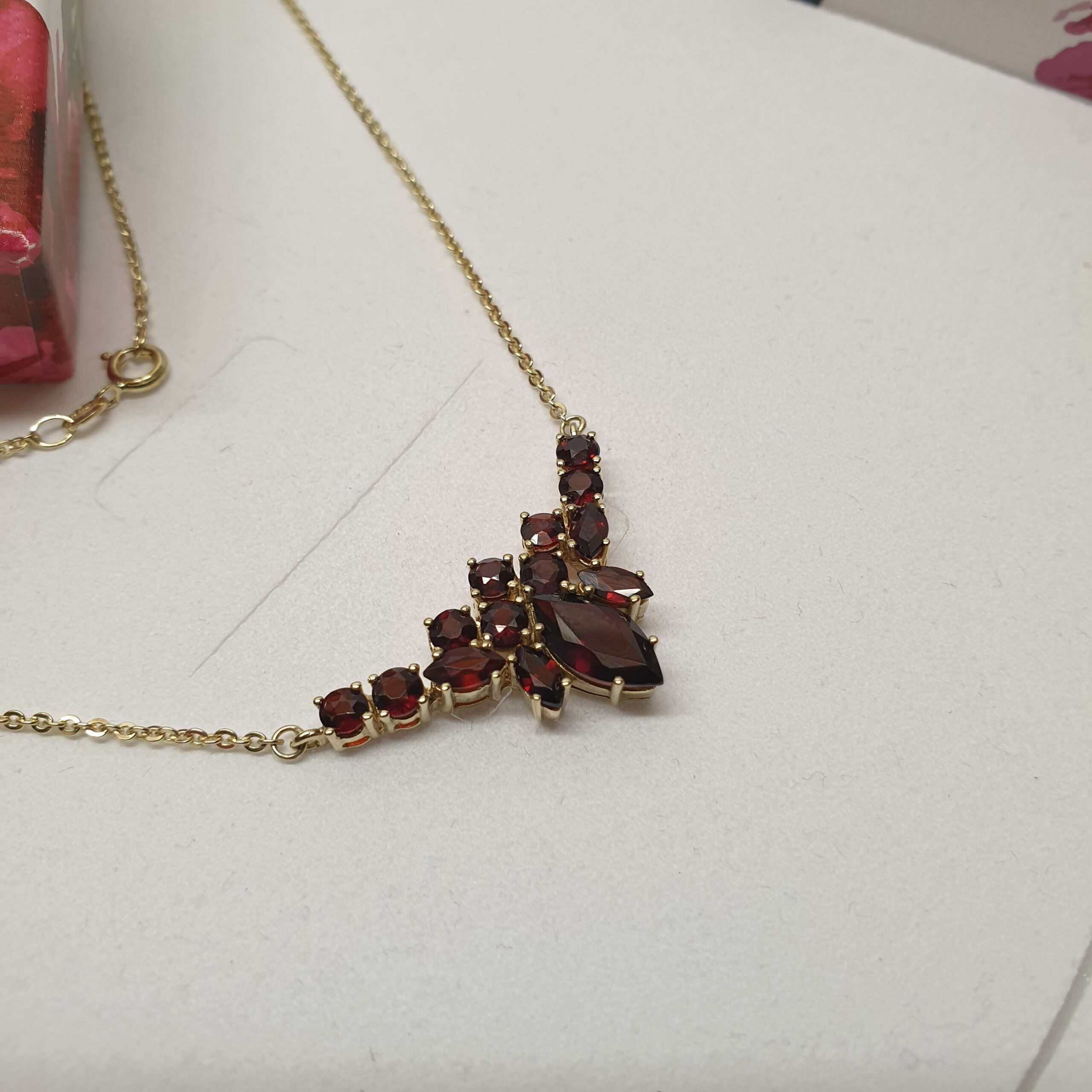 Wunderschöne Halskette / Collier, 333 Gold mit Granatsteinen. Vintage Eleganz - ein tolles Schmuckstück!