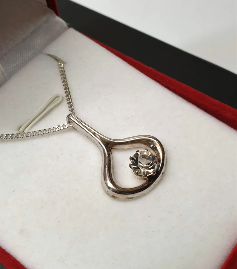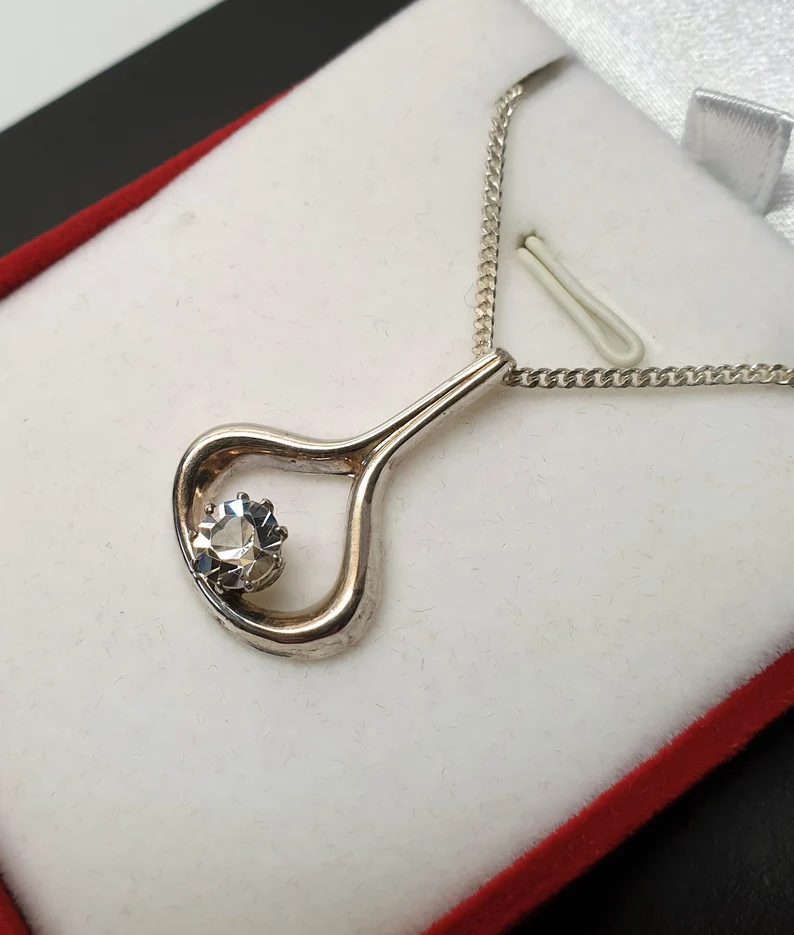 *Schöner 835er Silberanhänger mit Kristallstein und Silberkette*