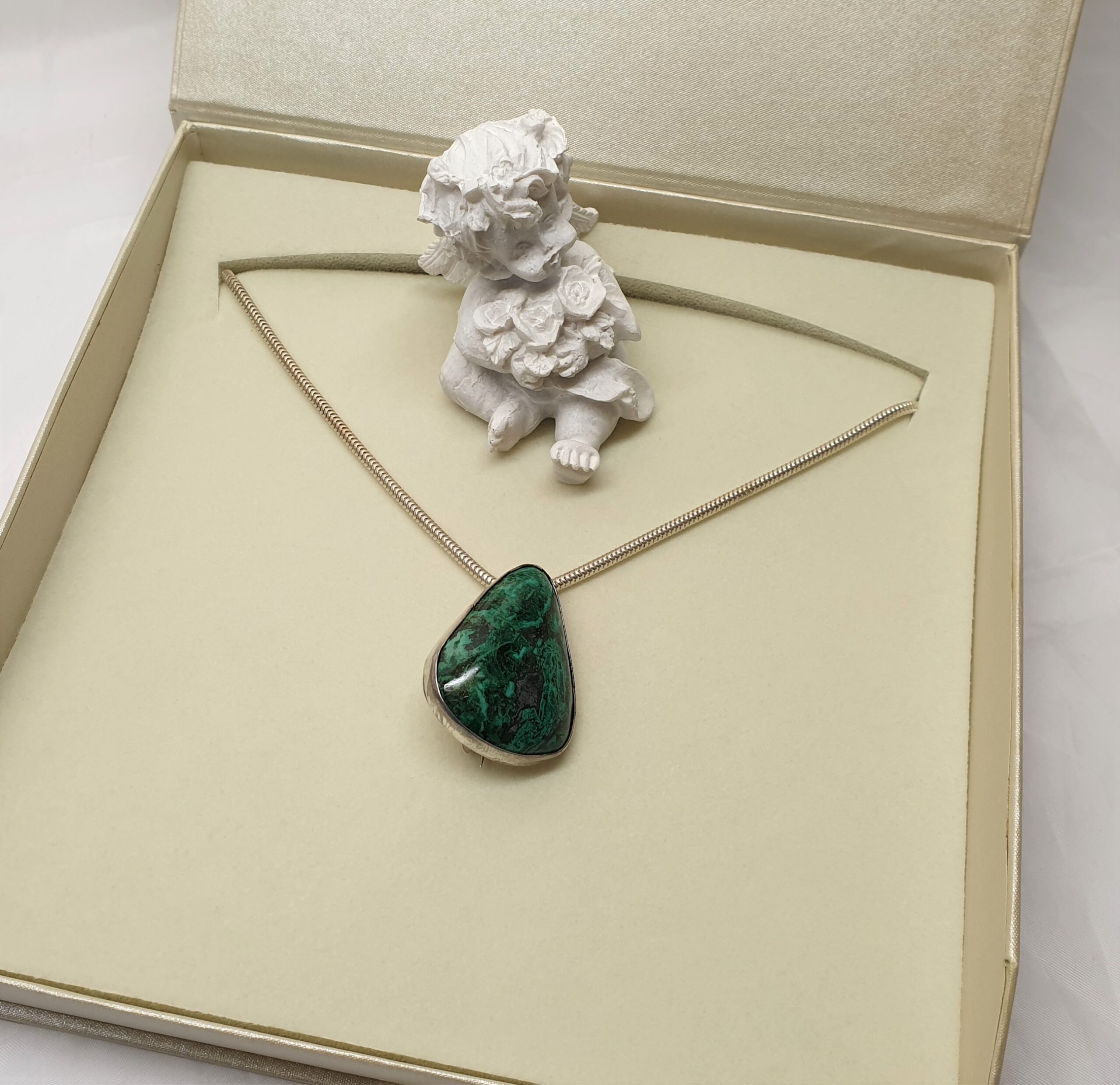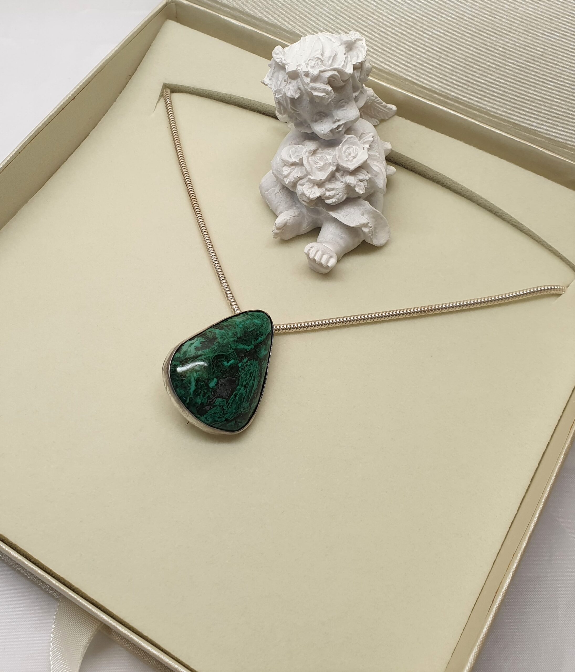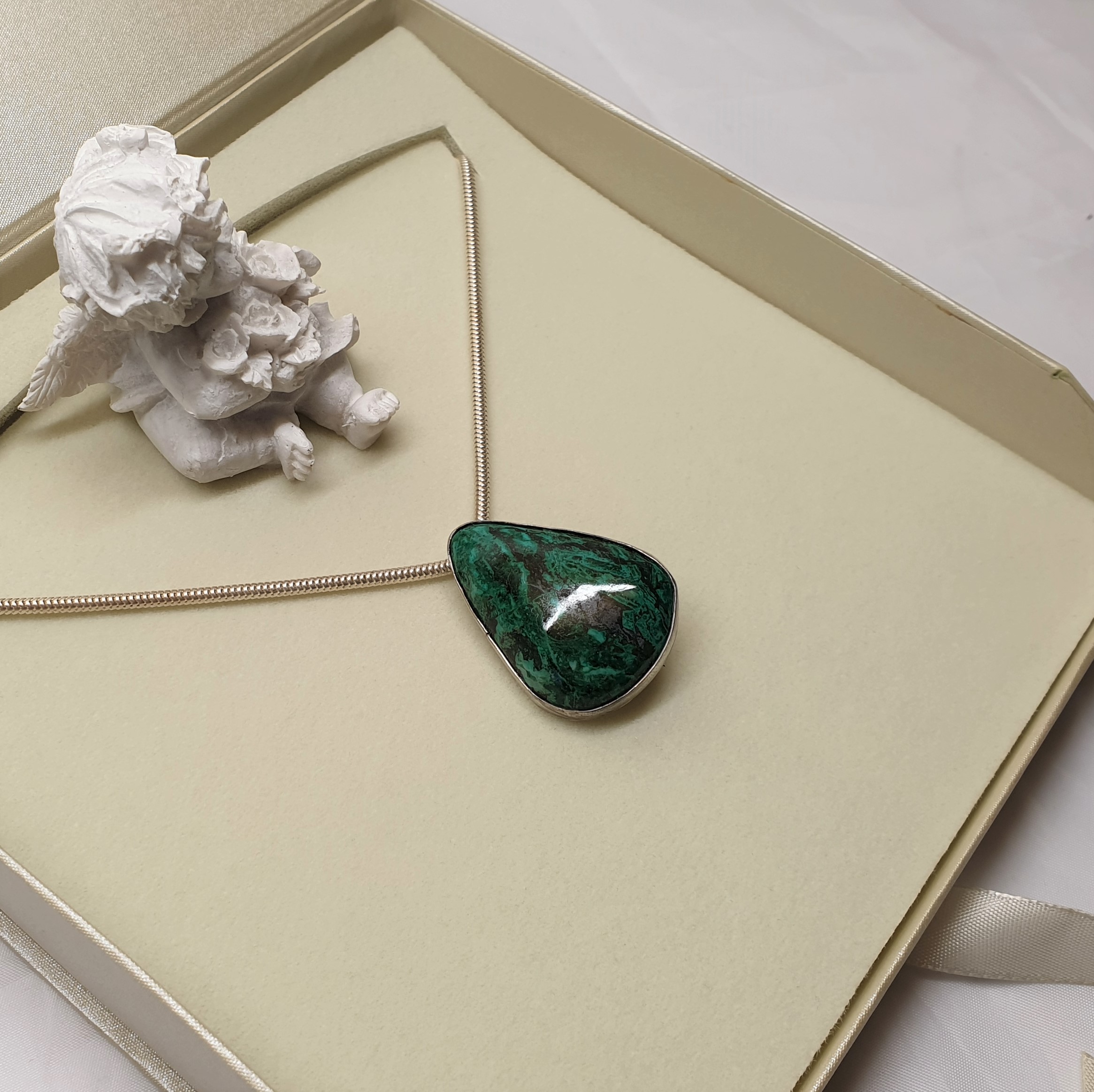 Nostalgischer Anhänger Silber 925 mit einem tollen Chrysokoll in Tropfenform geschliffen, der auch als Brosche getragen werden kann.