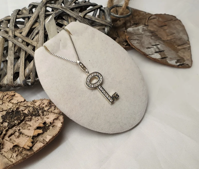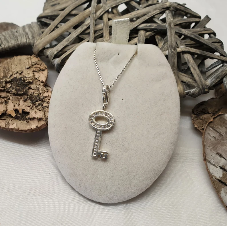 Der schöne Schlüssel-Anhänger wurde aus 925 Silber gefertigt und mit klaren Kristallsteinchen verziert.