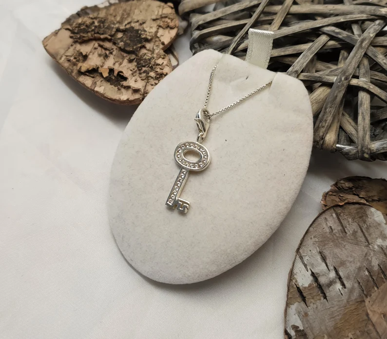 Anhänger Charm Silber 925 Schlüssel Kristallsteine klar Vintage elegant SKA1072