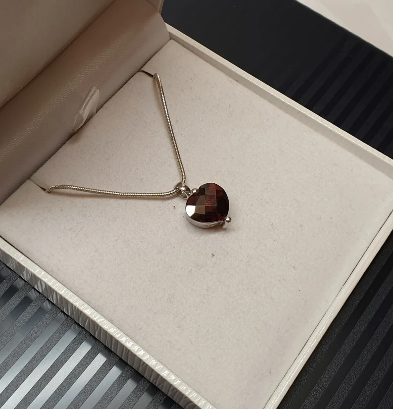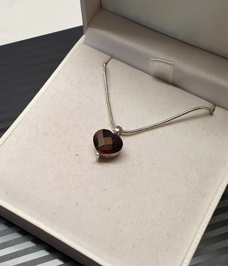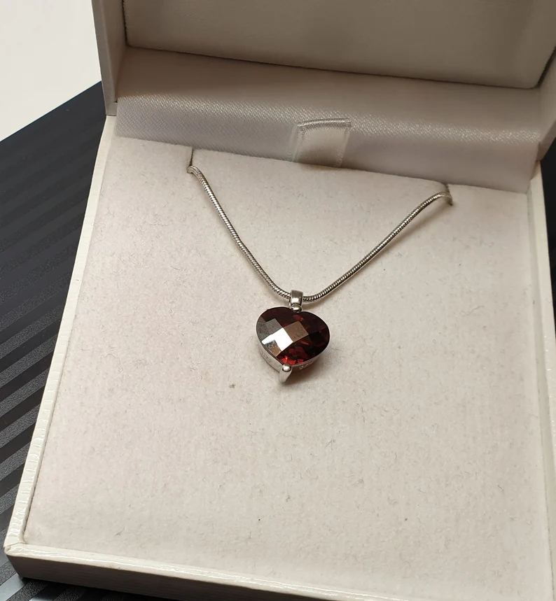 Ein bezauberndes Stück ist dieser Herzchen Anhänger mit einem roten Kristallstein. Toller Glitzereffekt durch den facettierten Schliff.