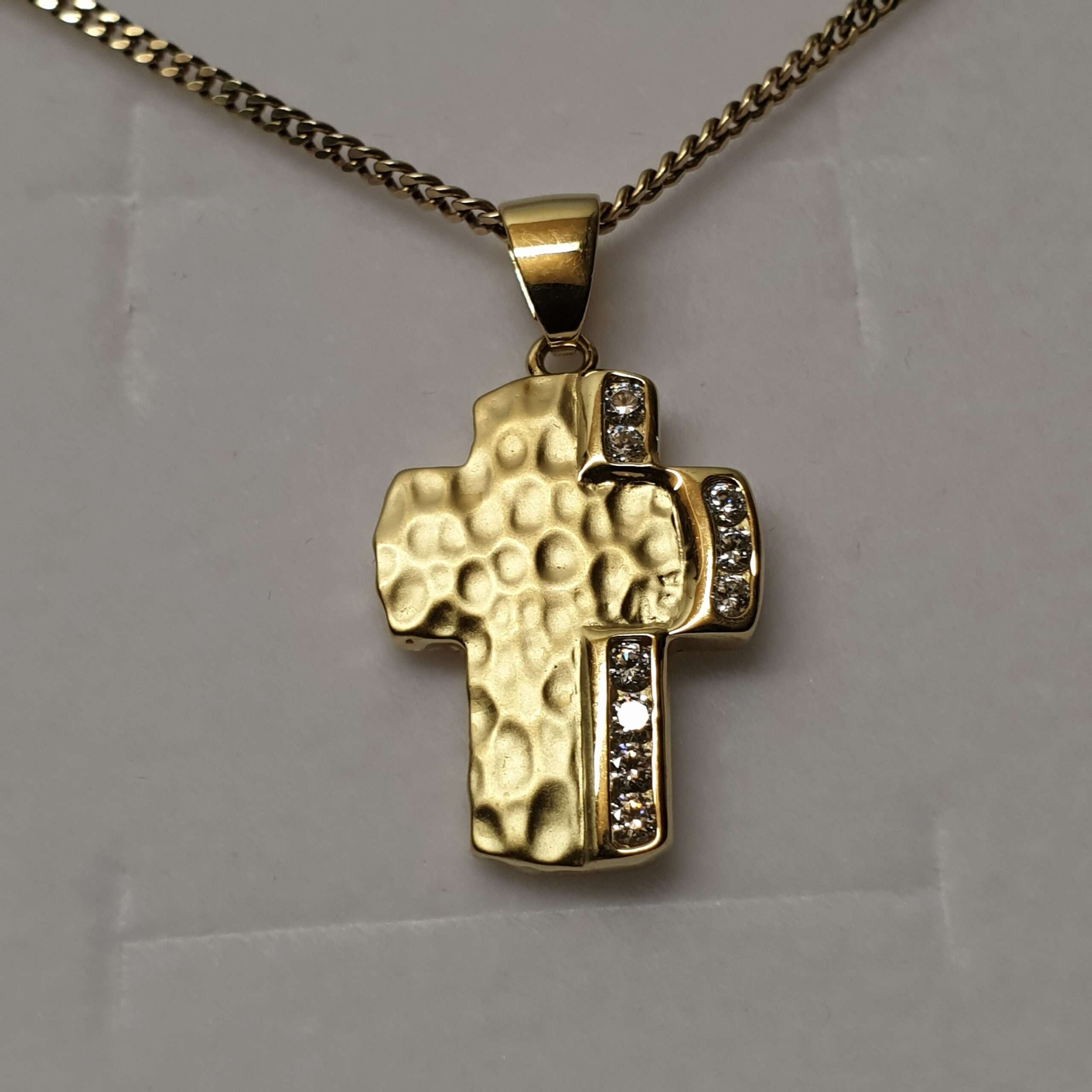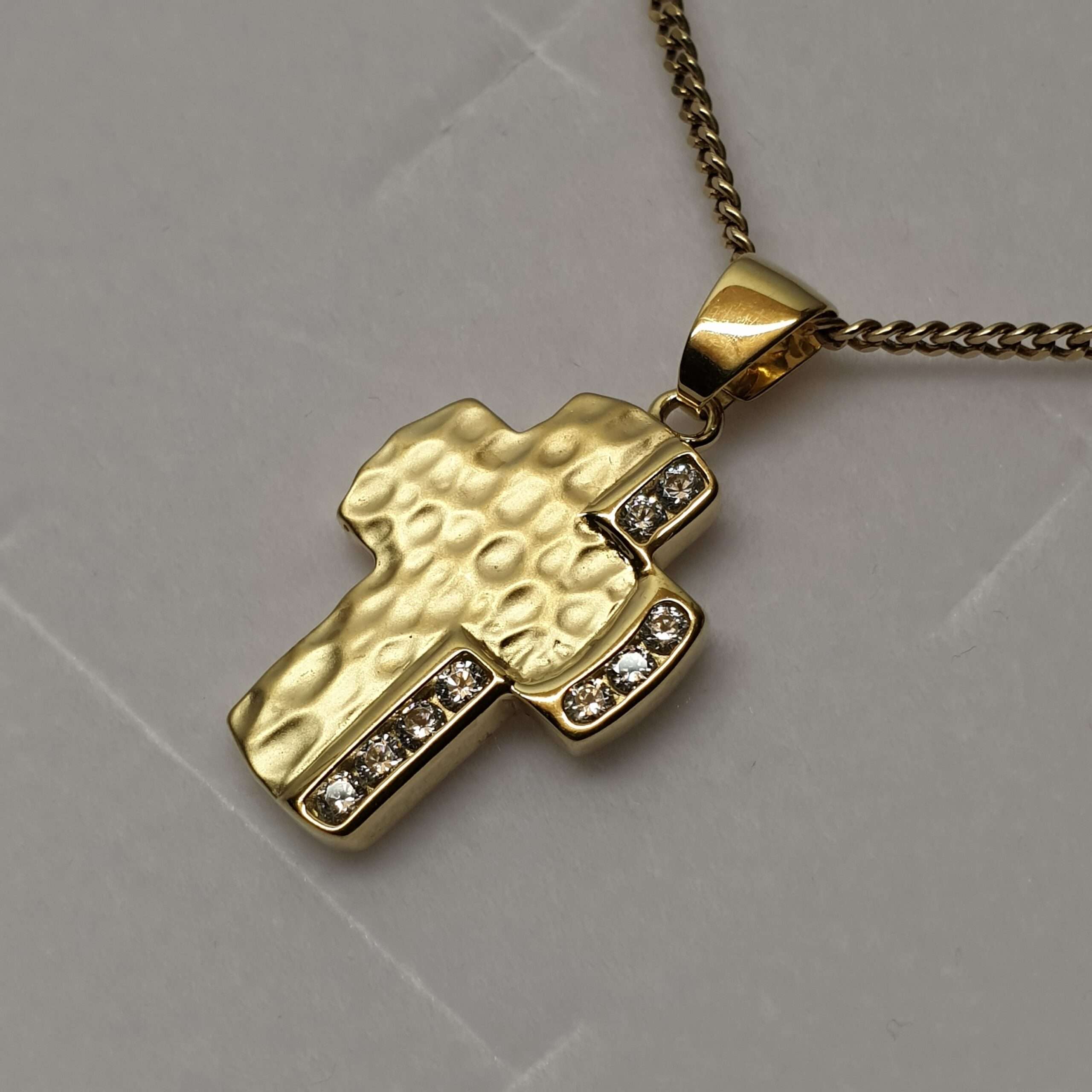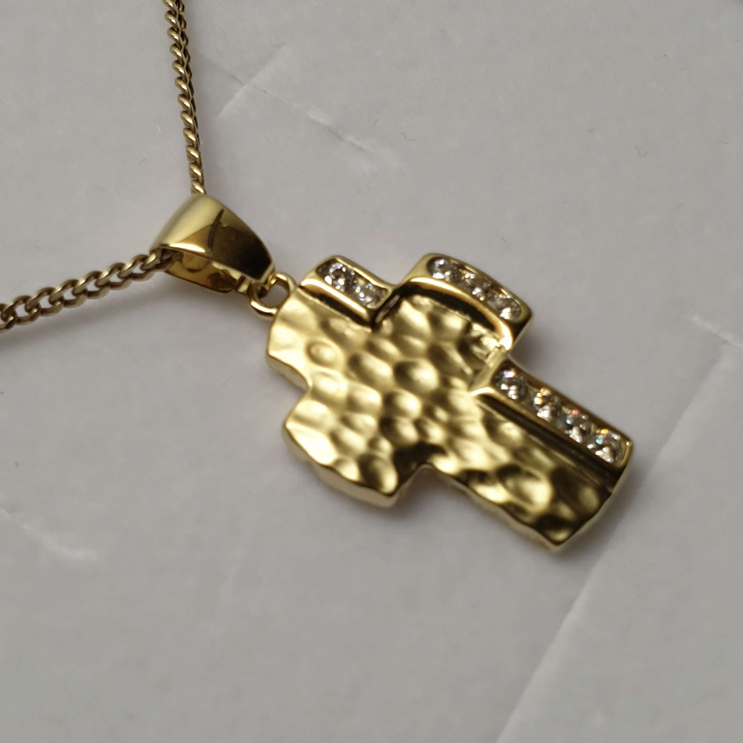 Vintage Kreuzanhänger aus Gold 333. Ein tolles Design besetzt mit klaren Kristallsteinchen.