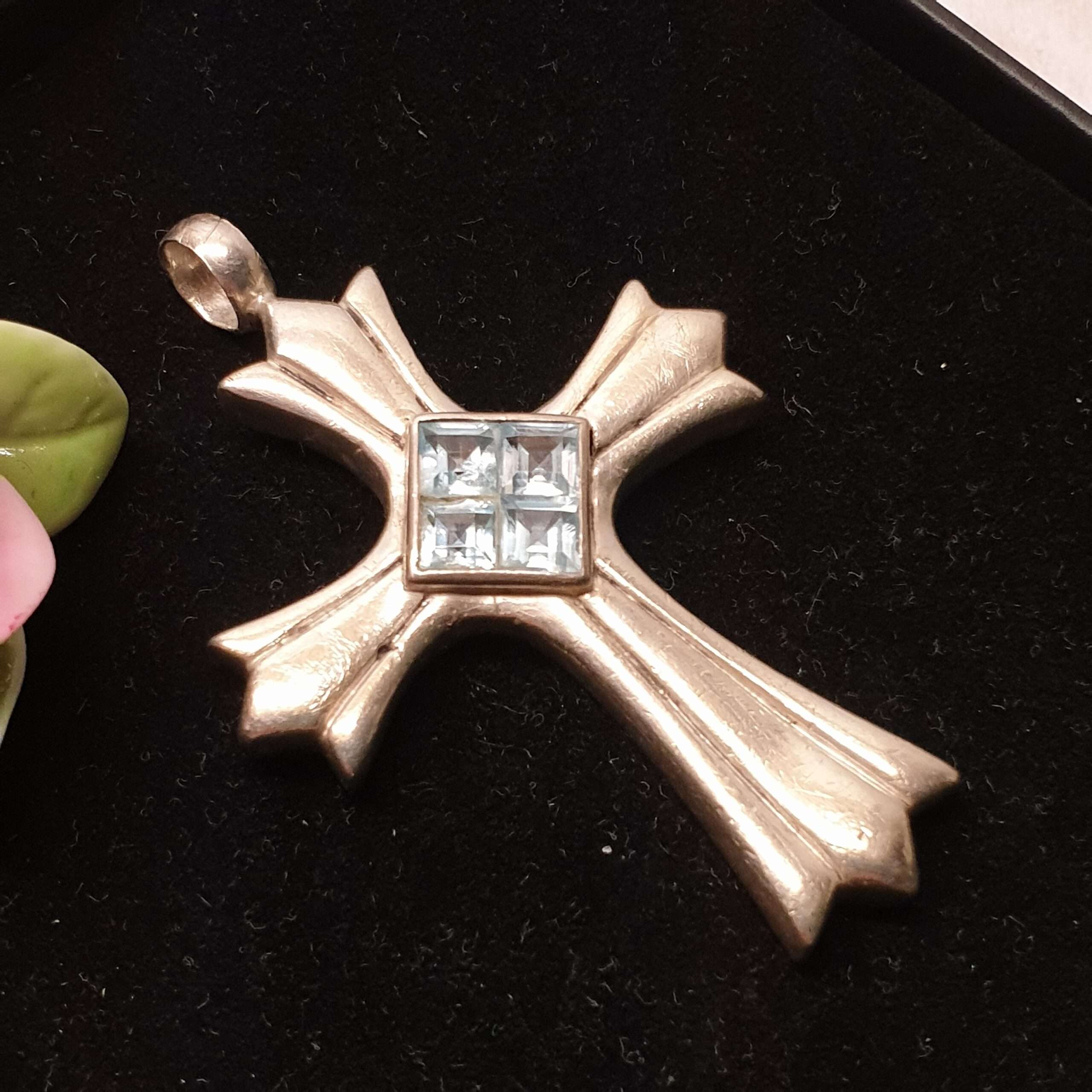 Schöner Kreuzanhänger Silber 925 besetzt mit tollen Blautopas-Steinen. Das Design ist nostalgisch gestaltet, wunderschön!