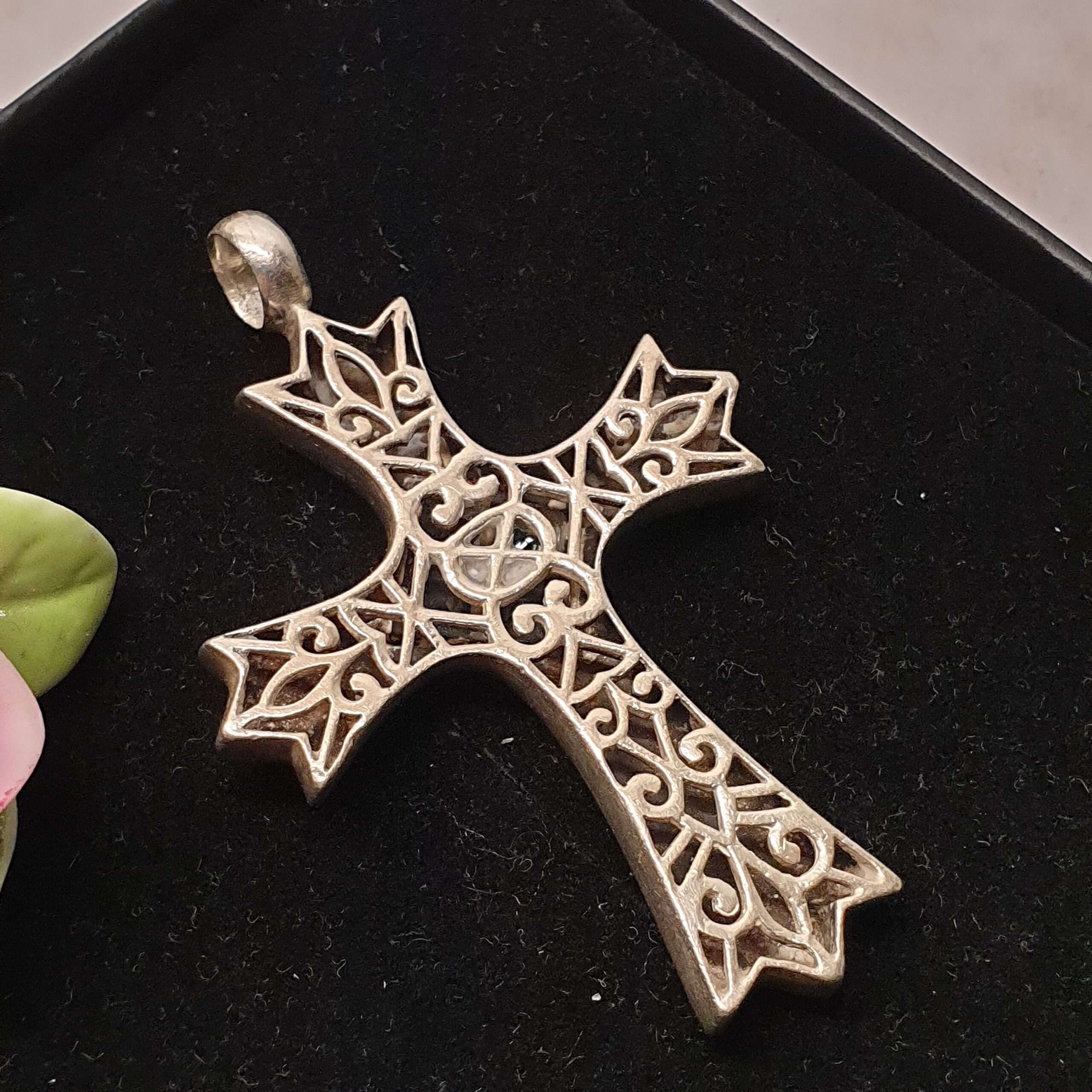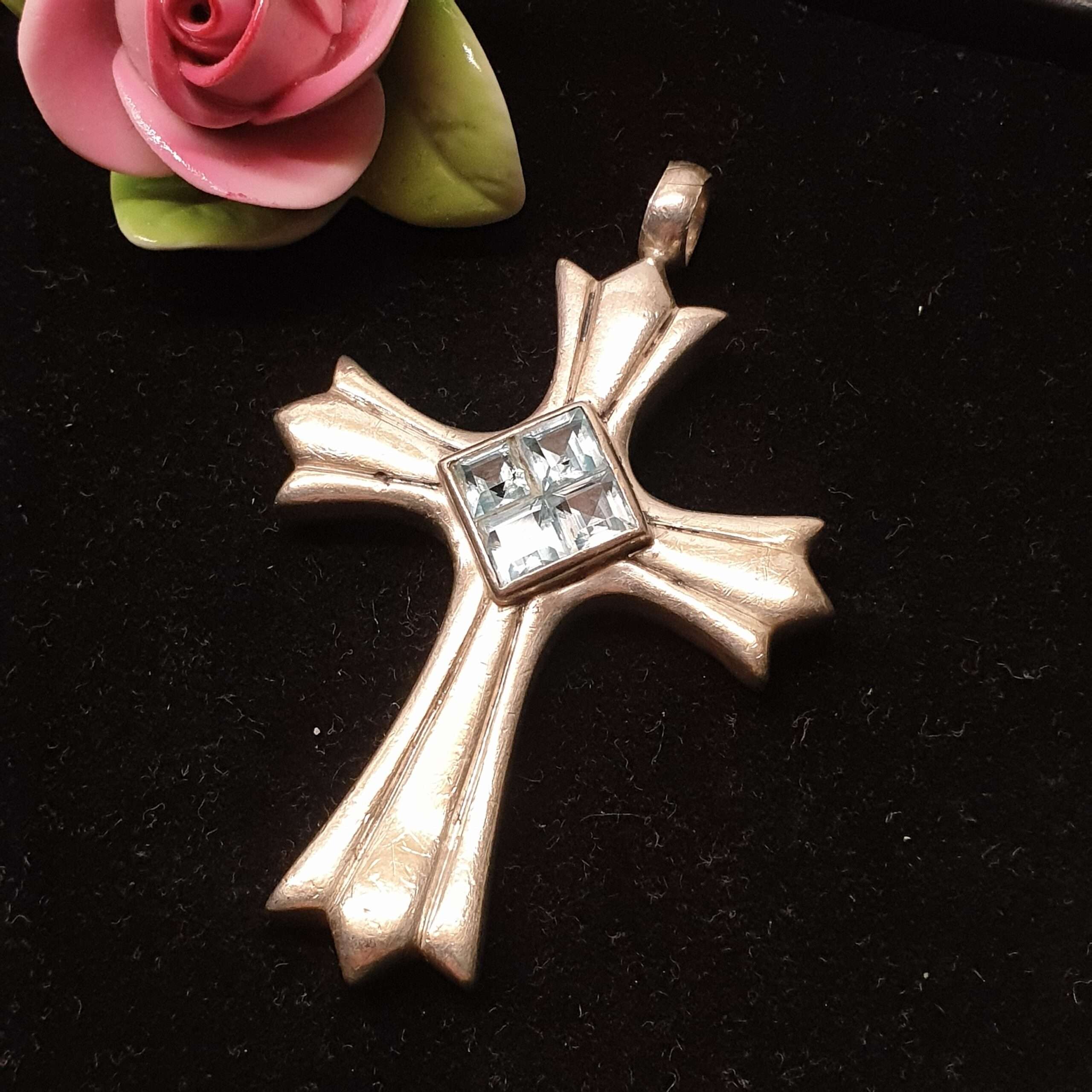Anhänger Kreuz Kreuzanhänger Silberkreuz groß Silber 925 Topas blau Blautopas Vintage Design nostalgisch SKA1671