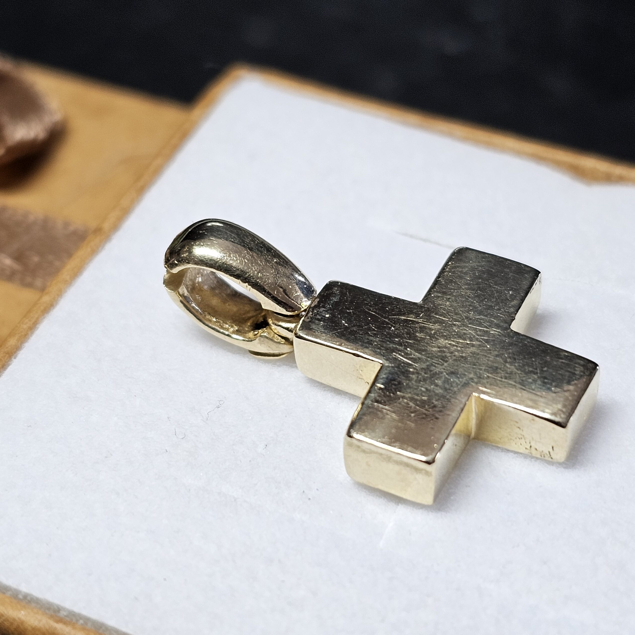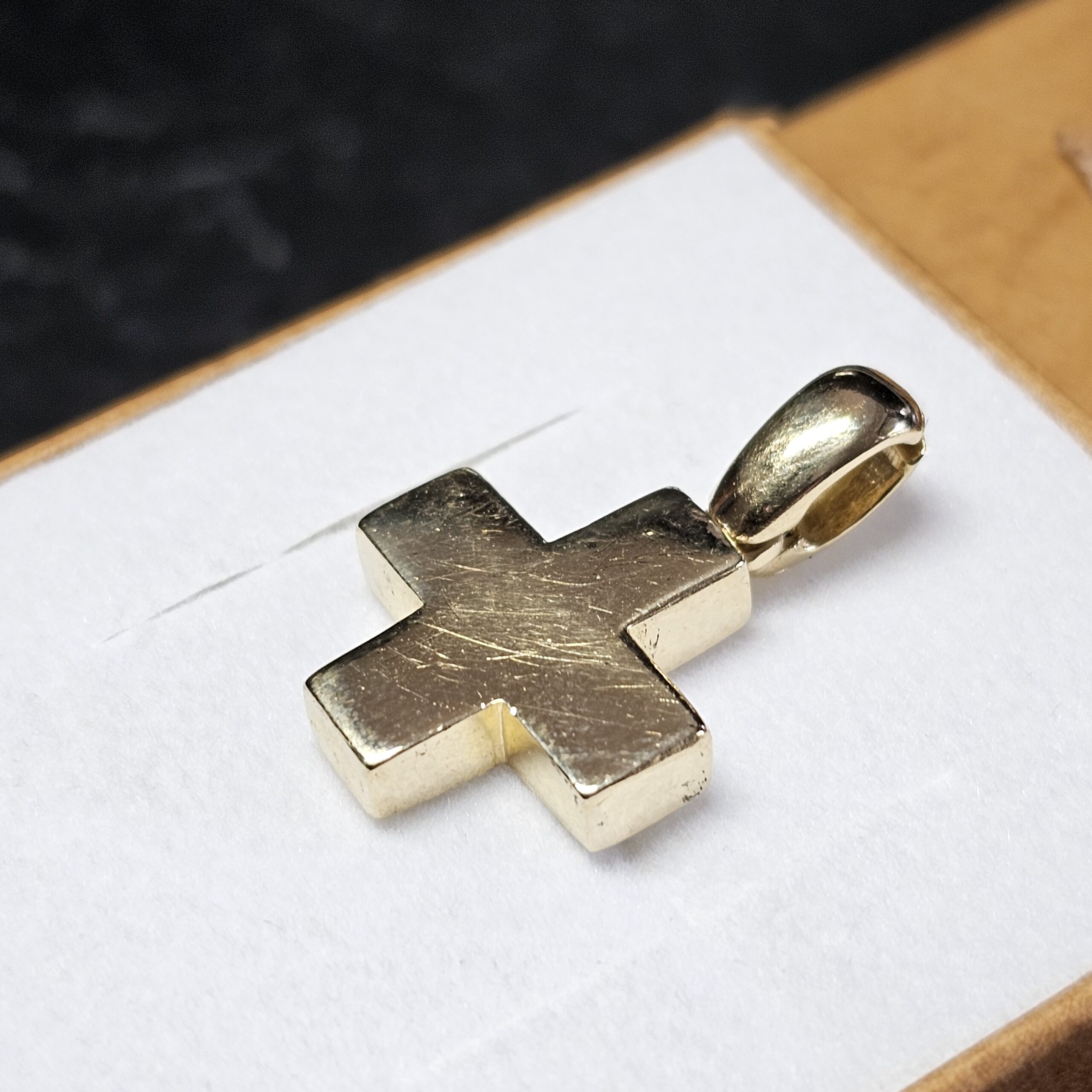 Kleiner Kreuzanhänger aus Gold 585 massiv in einem schlichtes Design gearbeitet.