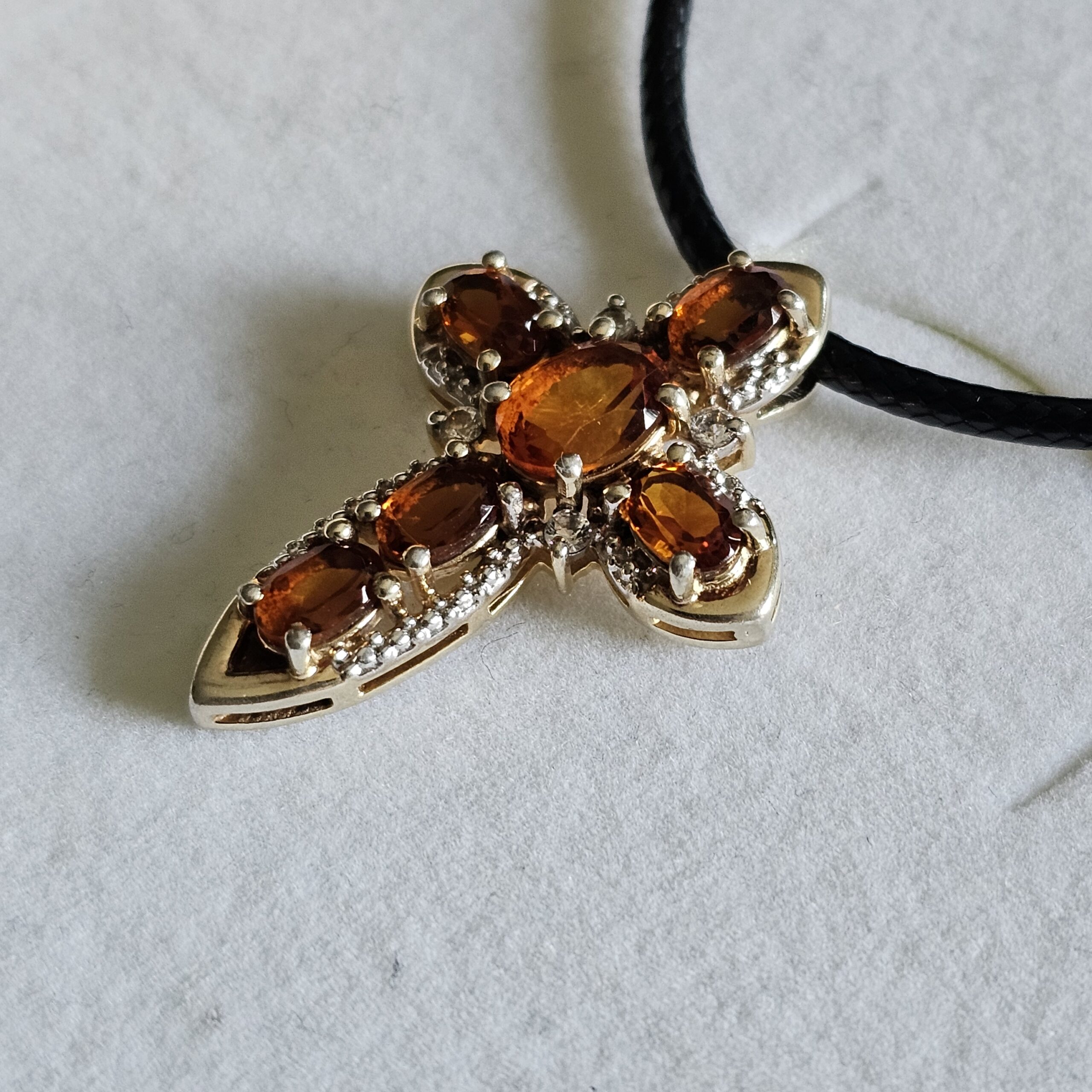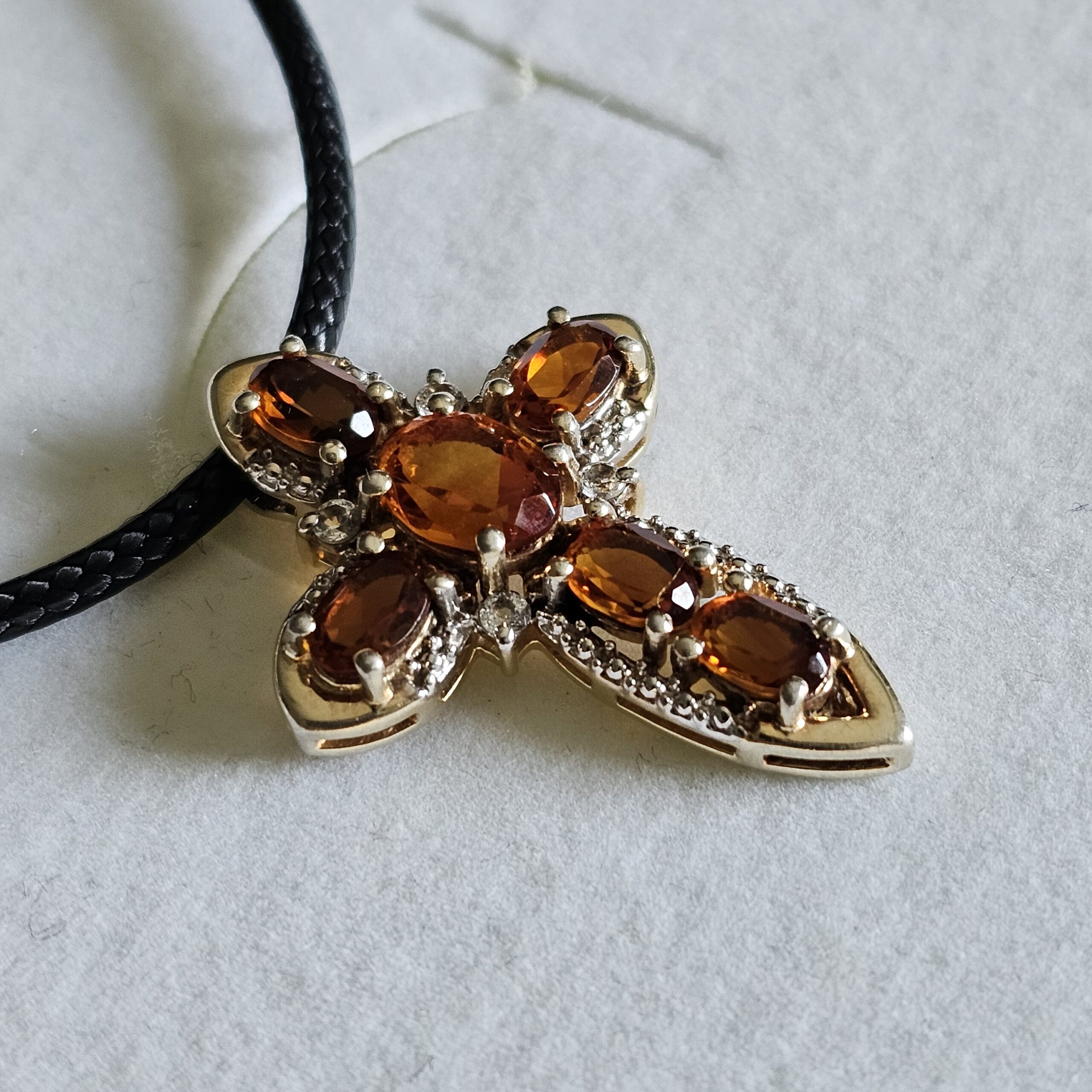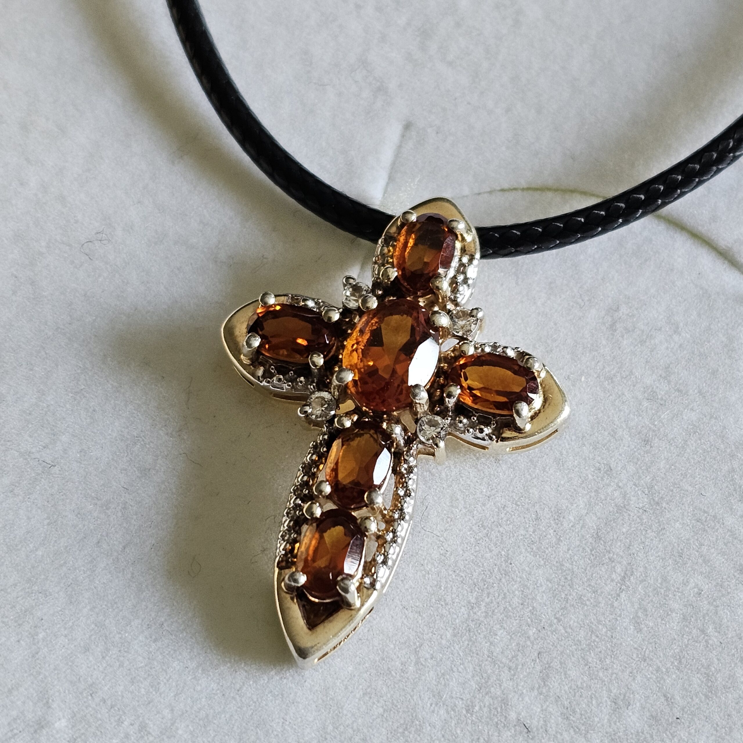 Anhänger Silberanhänger ohne Kette Silber 925 Kreuz Kristalle orange & klar Vintage elegant SKA1577