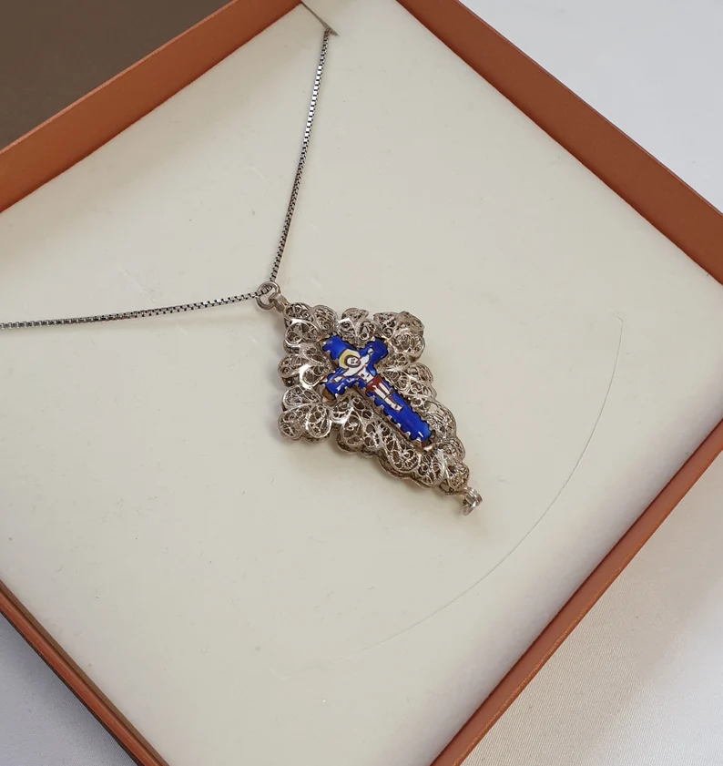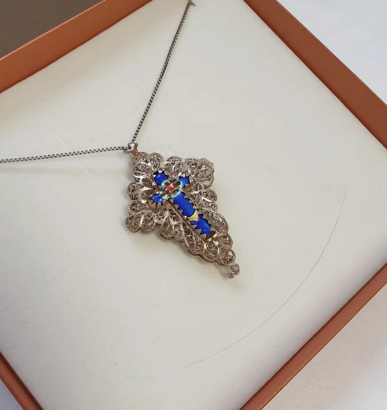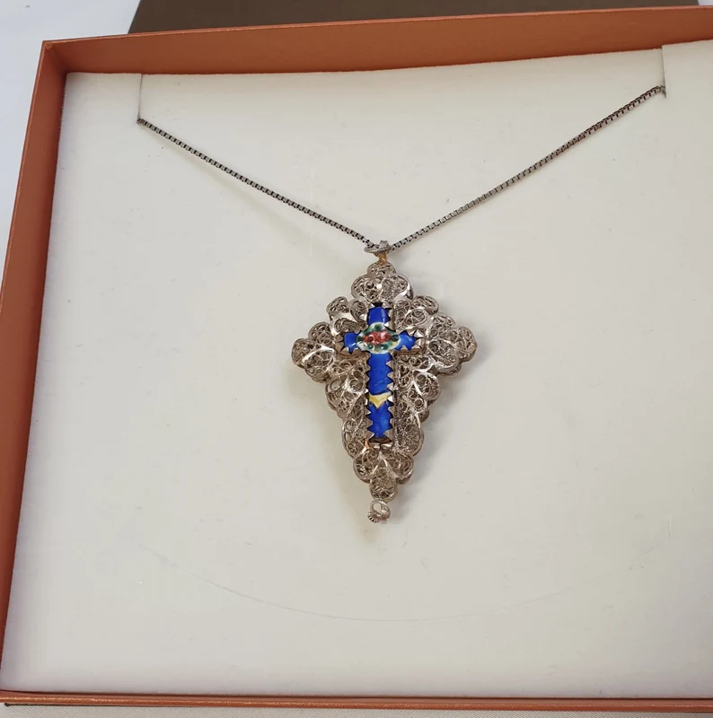 Produktinformationen "Anhänger antik filigran Kreuzanhänger für Rosenkranzkette Kreuz Silber Emaille bunt Shabby Vintage SKA951"