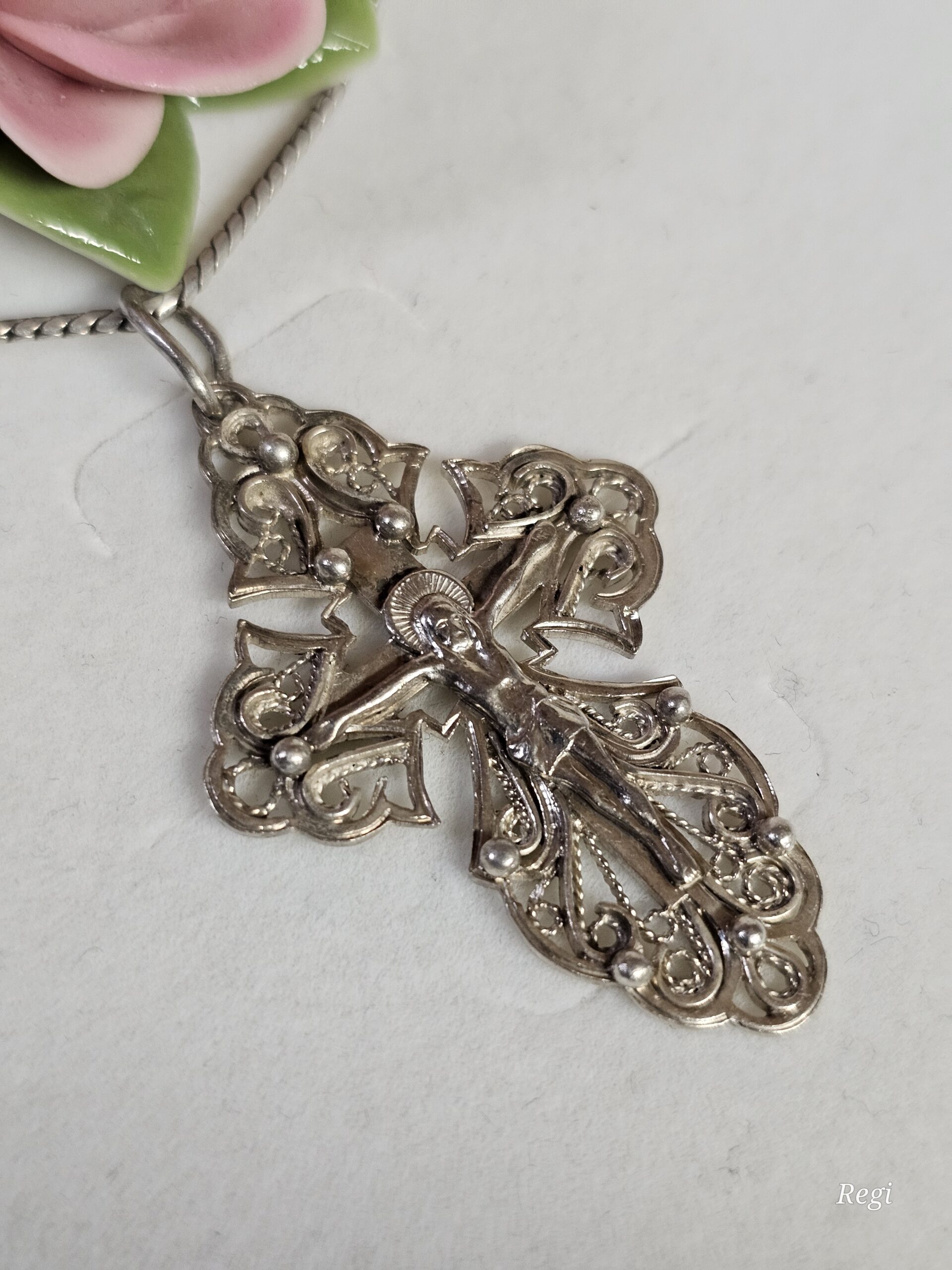 Produktinformationen "Art Deco Silberanhänger Anhänger Kreuz Kreuzanhänger ohne Kette Silber Jesus Inri filigran kunstvoll Shabby Vintage selten rar SKA1428"