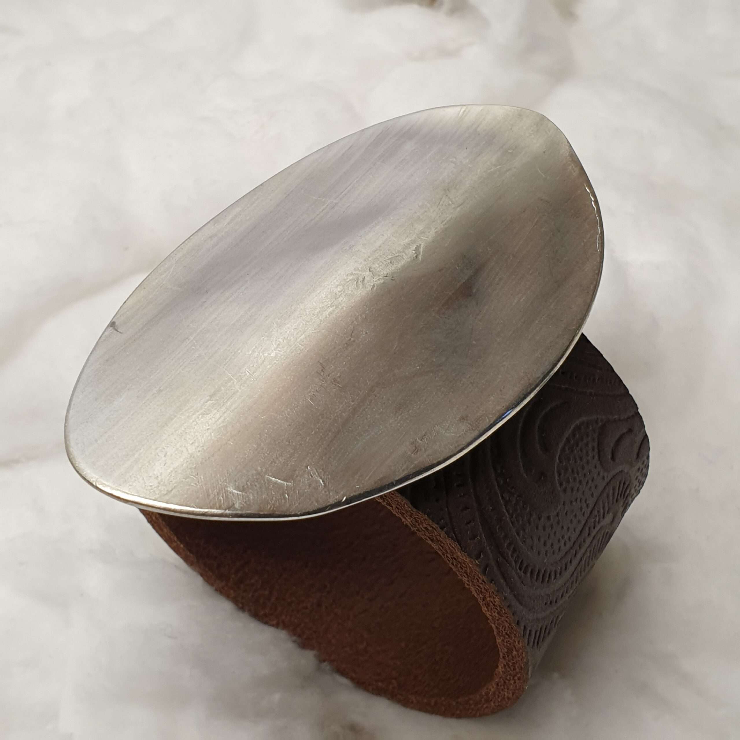 Dunkelbraunes Lederarmband mit Rankenmuster und Mattschlief-Schliesse