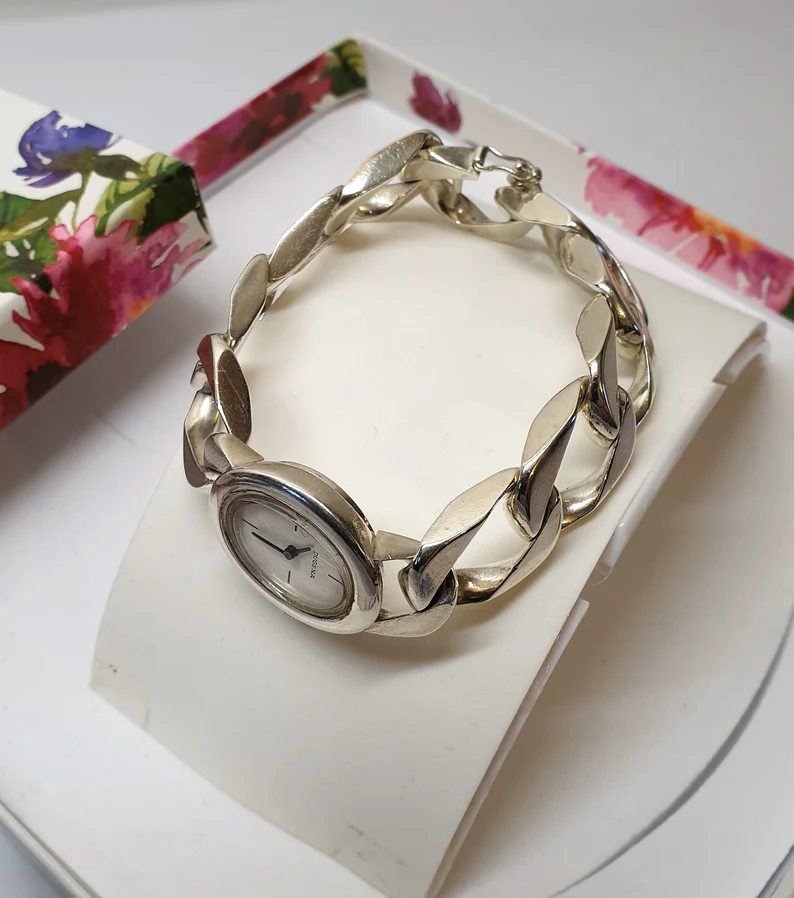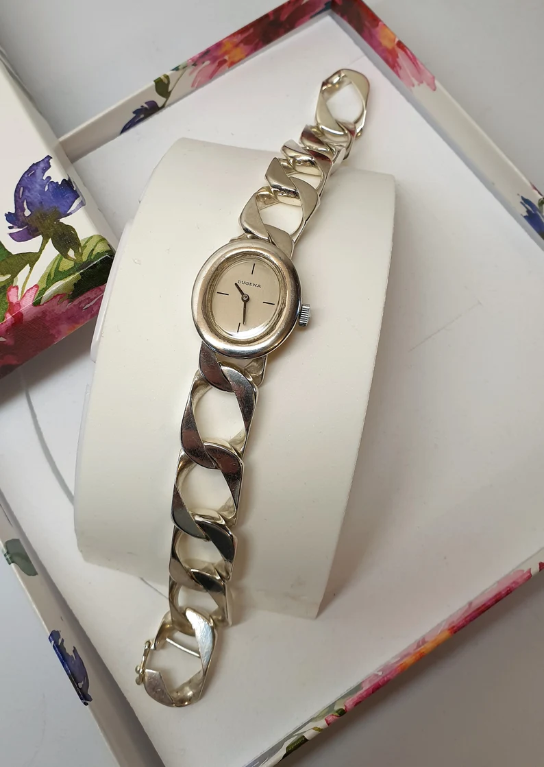 DUGENA Damenuhr mit Panzerarmband 0,835 Handaufzug mechanisch UU106