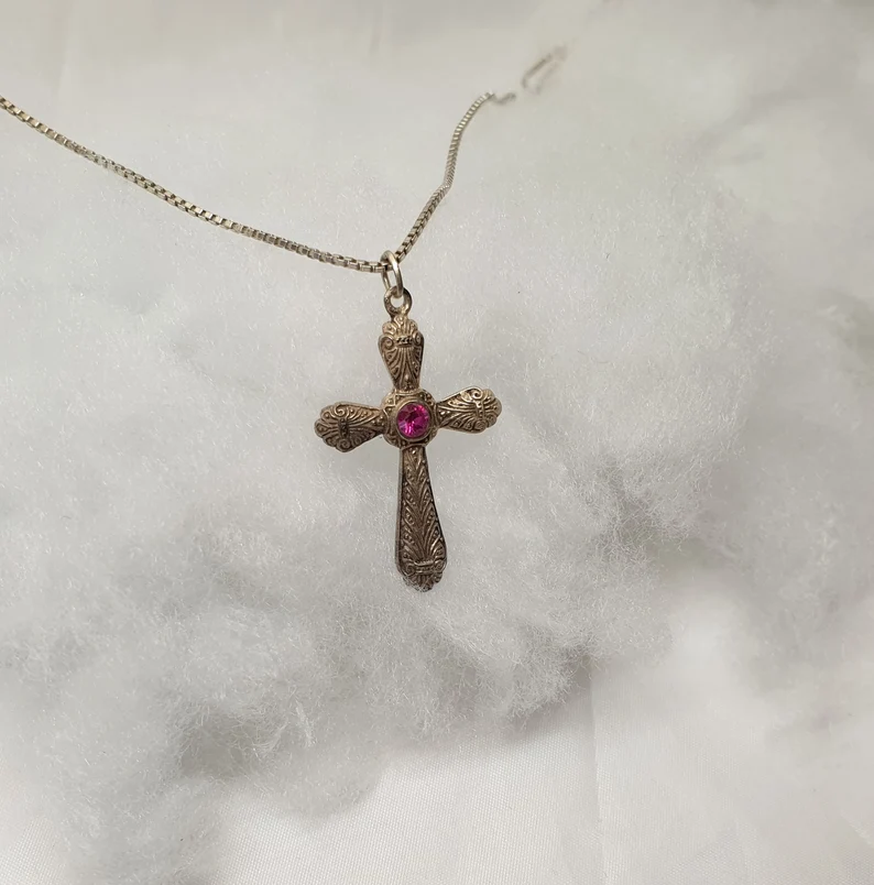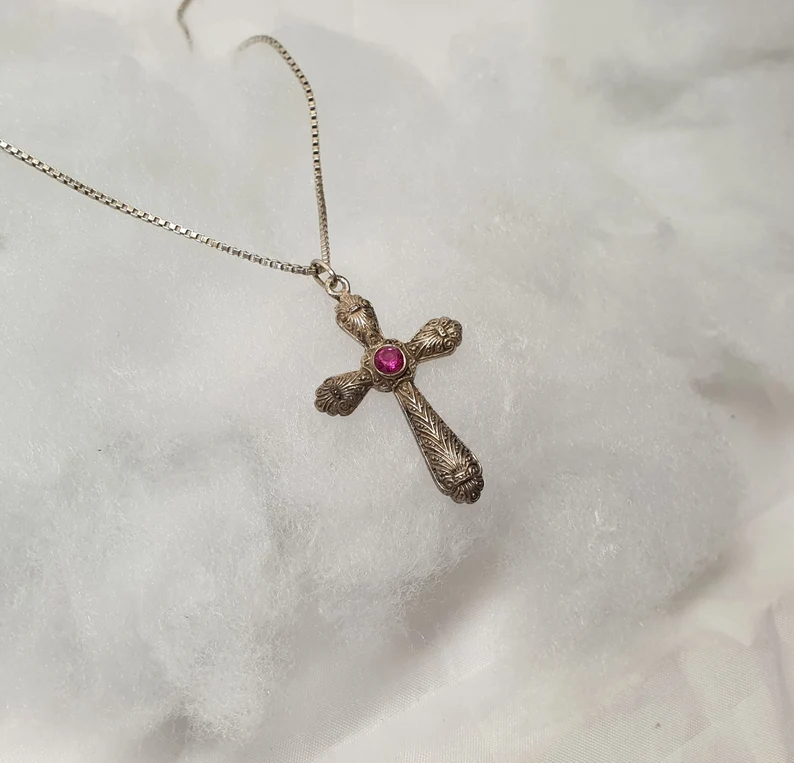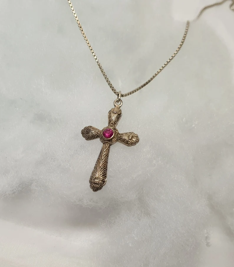 Jugendstil Kreuzanhänger Anhänger Kreuz Silber Rubin Shabby Vintage antik SKA457