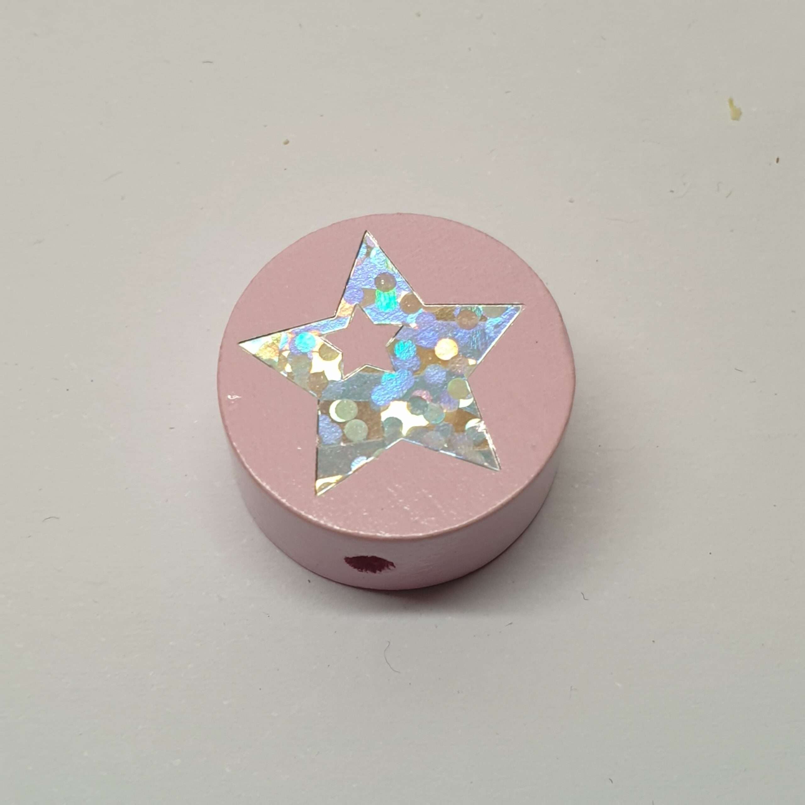 Motivperle Perle rund Scheibe rosa babyrosa Glitzerstern Stern MP159