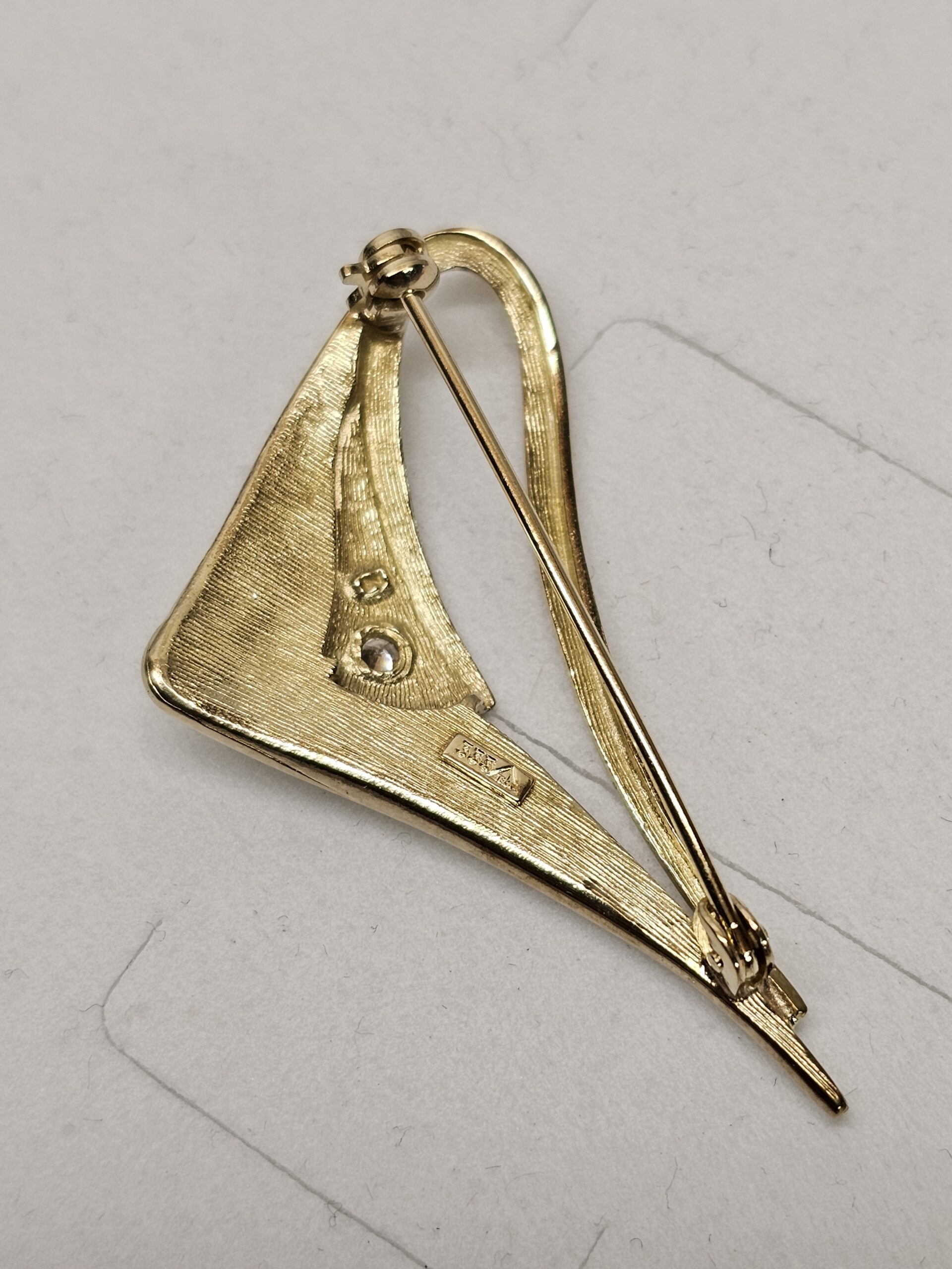 Nostalgische Anstecknadel Brosche Gold 333 Kristallstein klar Design Vintage elegant GB109
