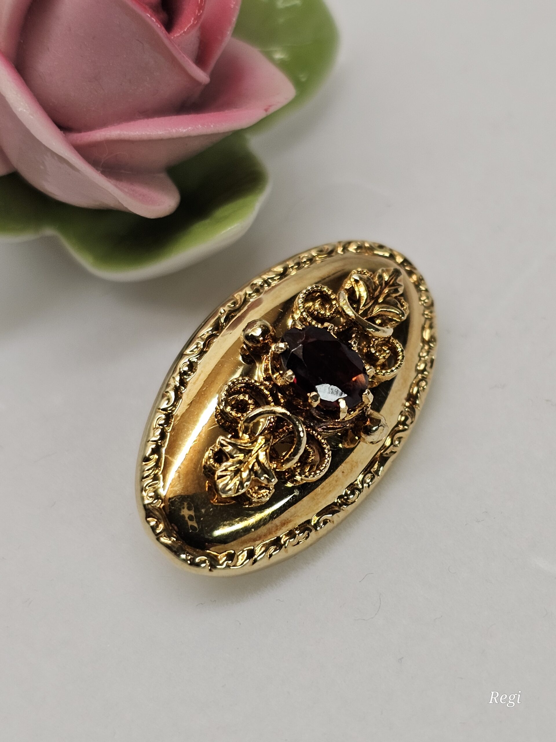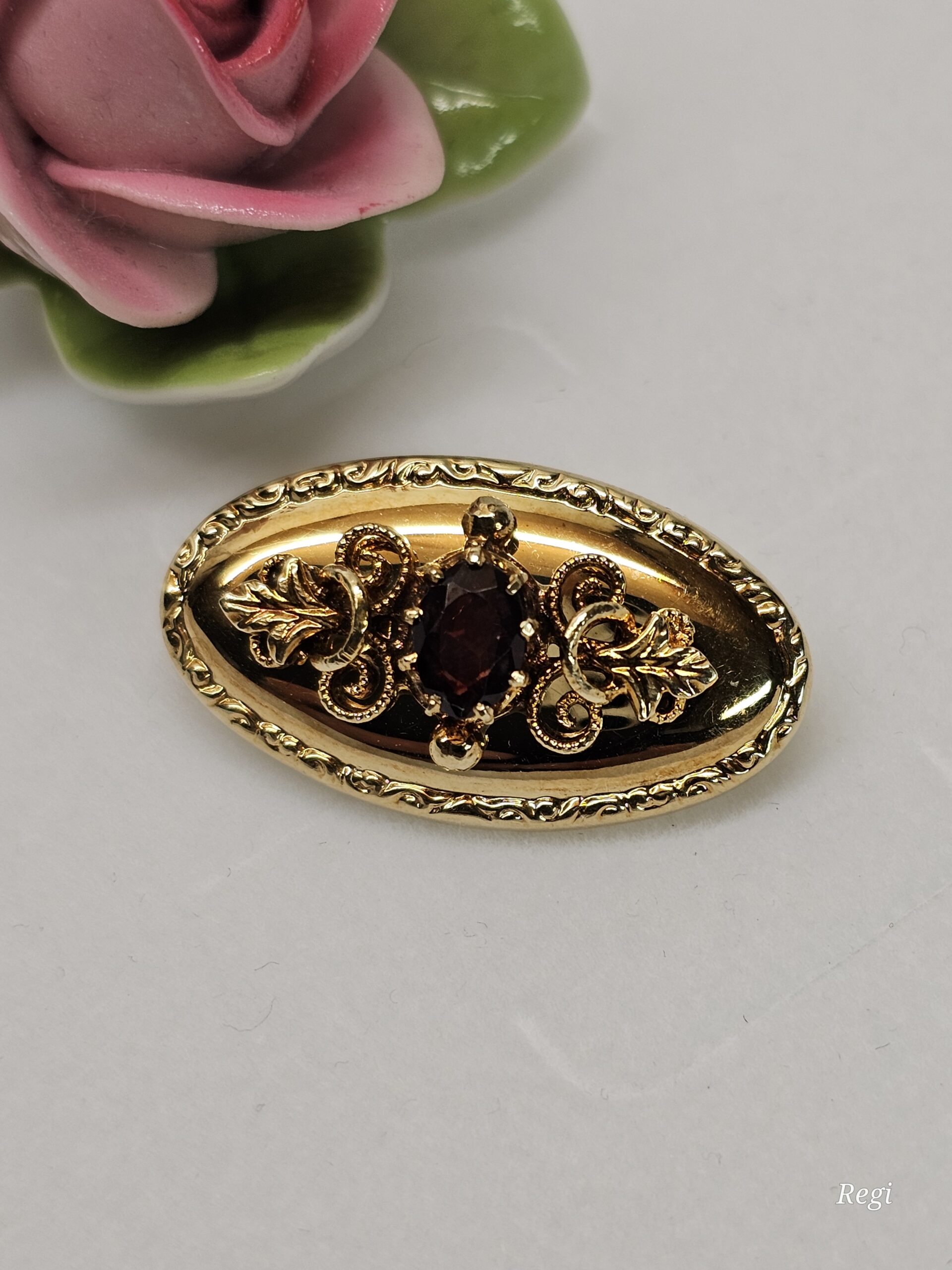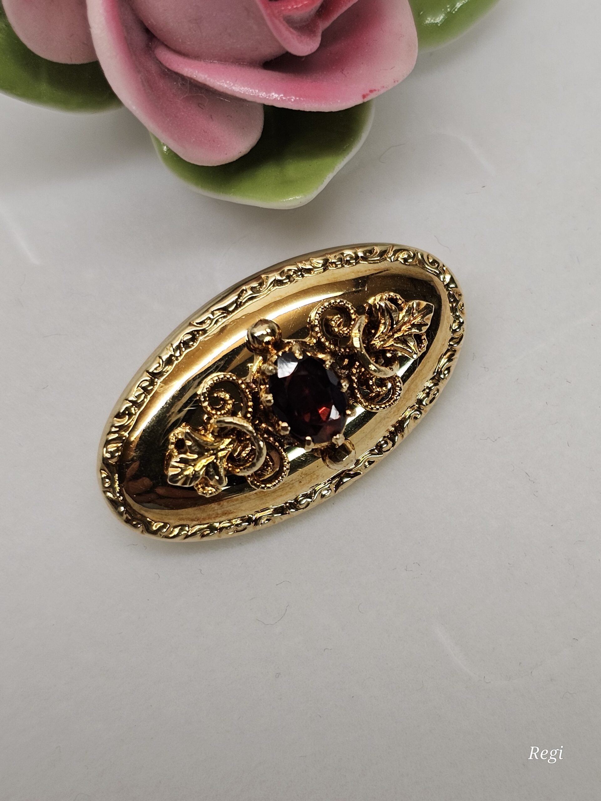 Nostalgische Anstecknadel Brosche Gold 585 Granat Shabby Design Vintage elegant GB127