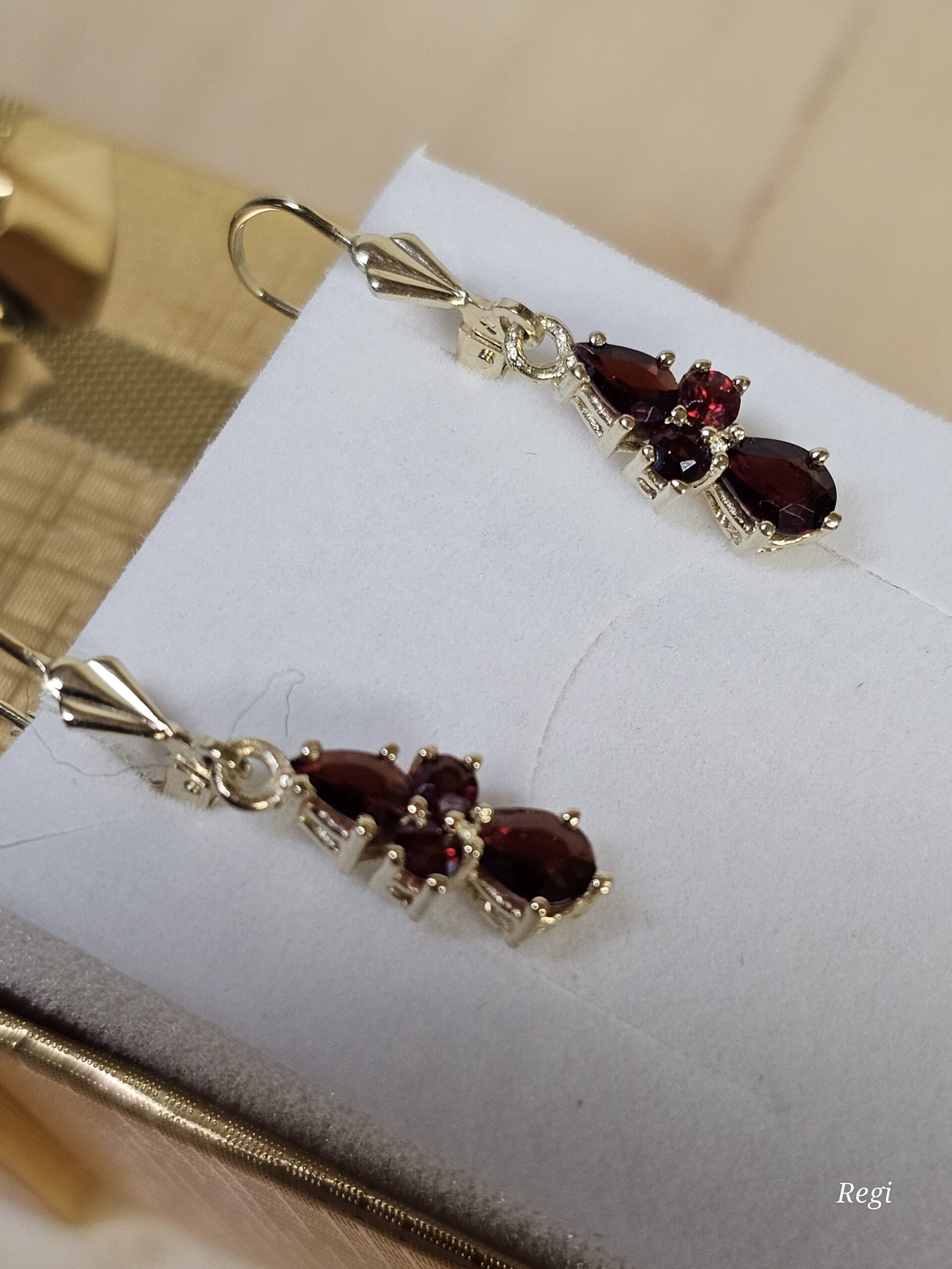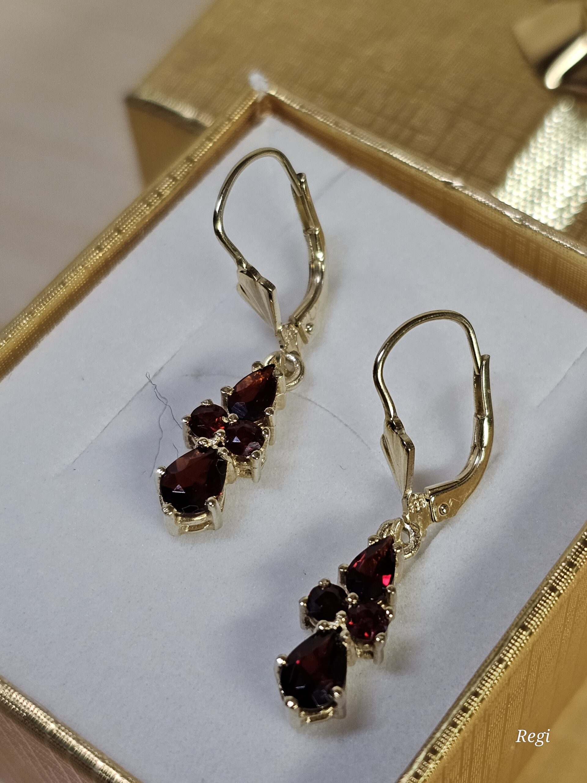 Nostalgische Ohrringe / Ohrhänger Gold 333 mit wunderschönen Granat-Steinchen besetzt.