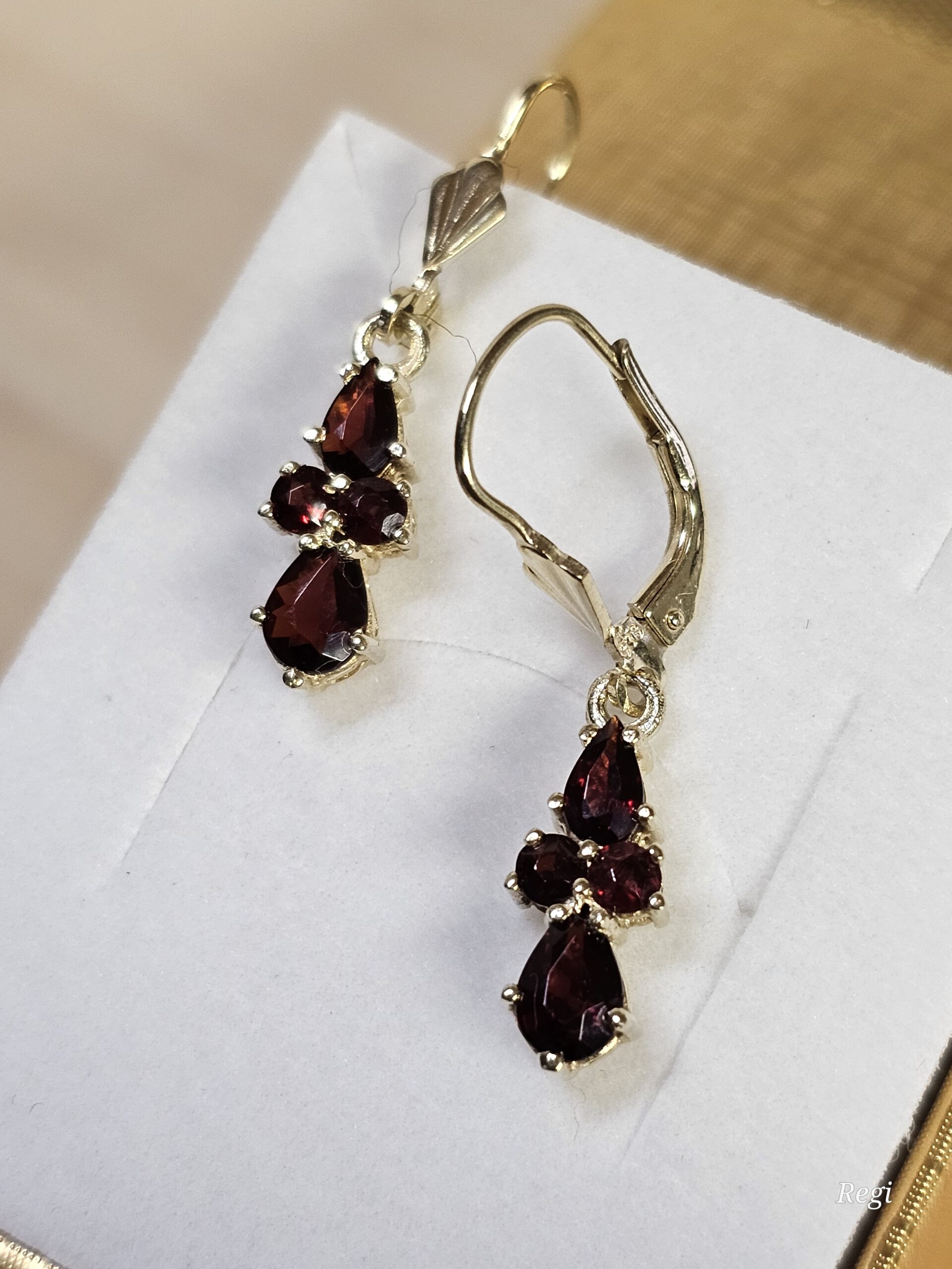 Produktinformationen "Nostalgische Hängeohrringe Ohrringe Ohrhänger Gold 333 Granat Vintage elegant OR179"