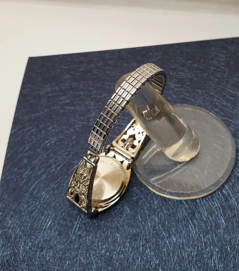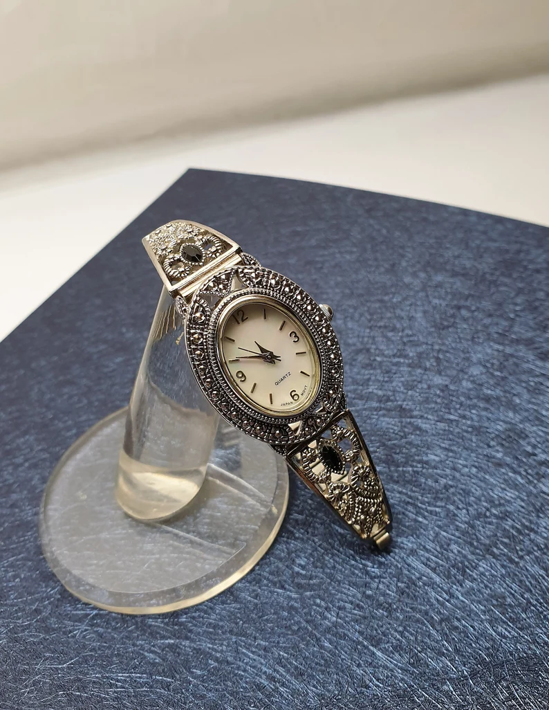 Nostalgische Damenuhr mit ovalem Perlmutt-Ziffernblatt