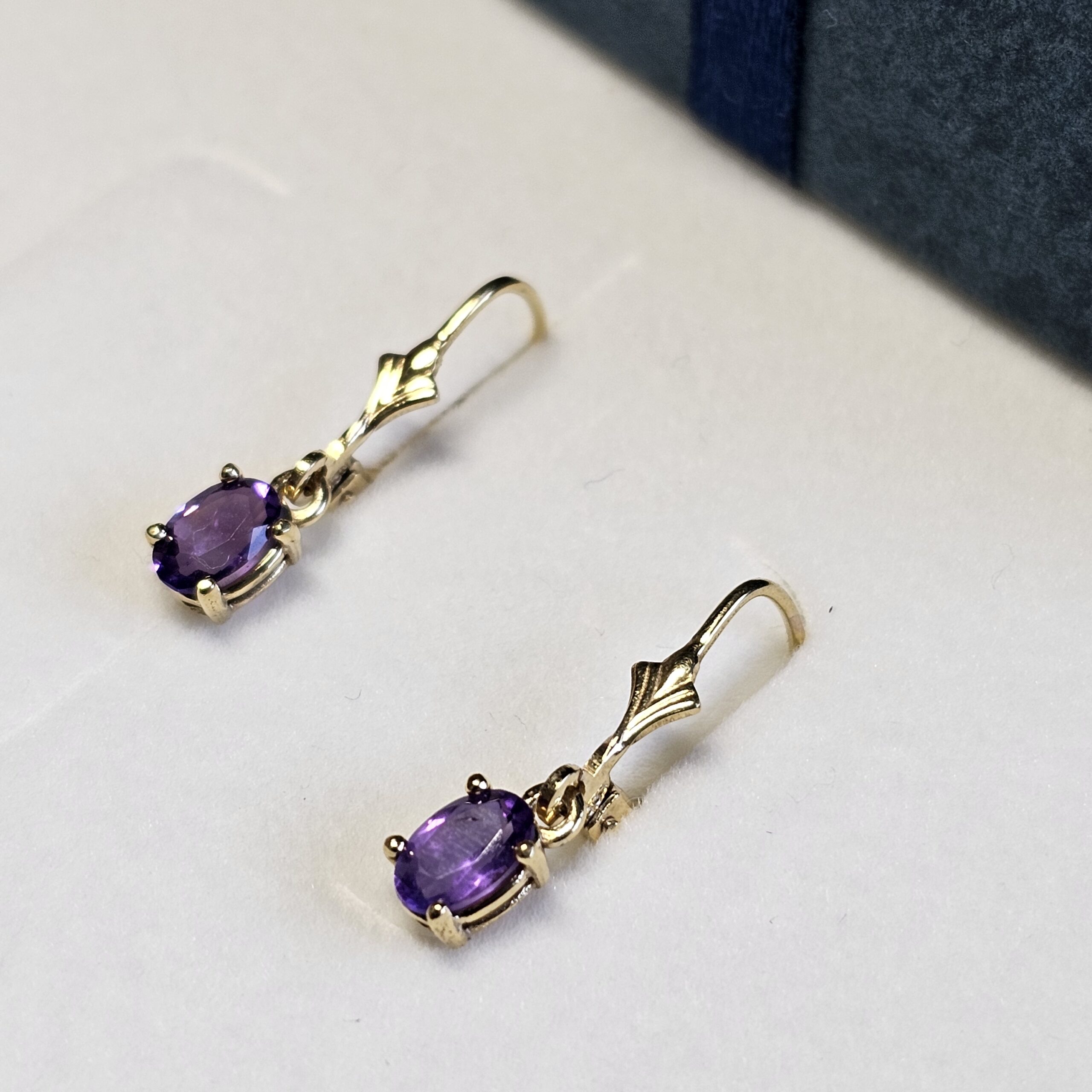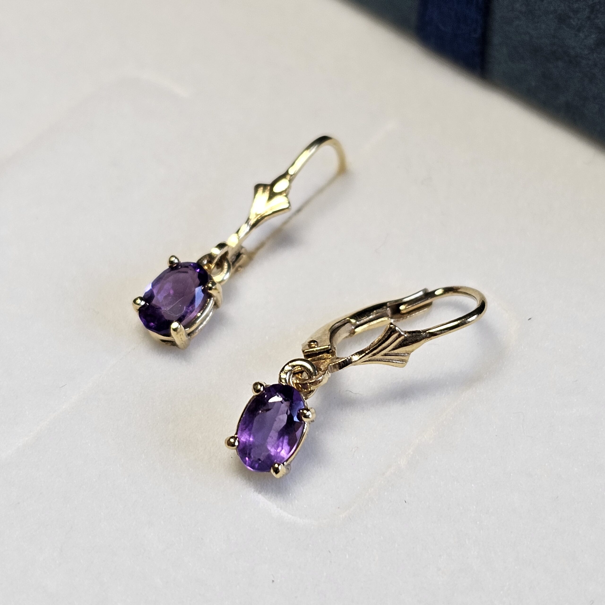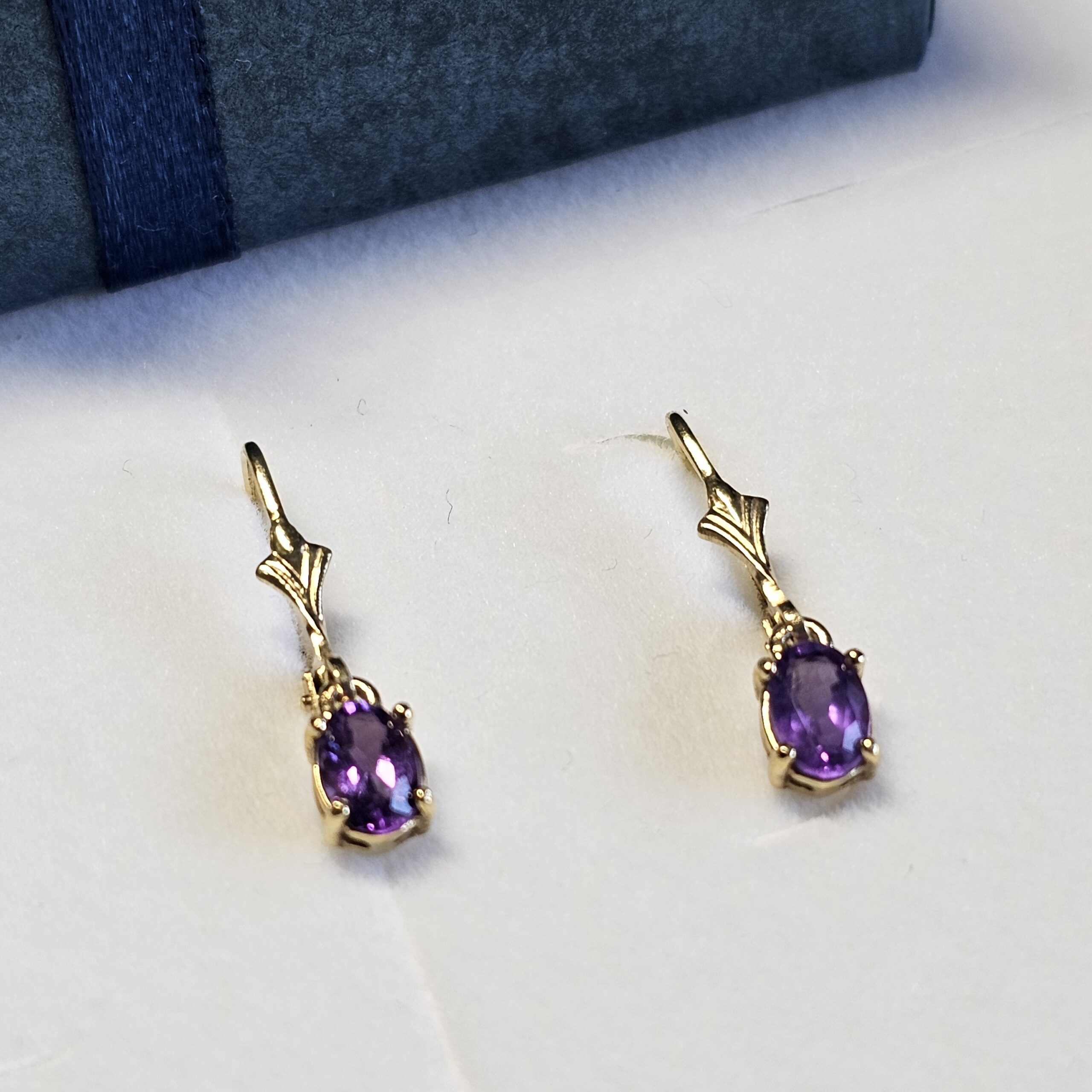 Sehr schöne, nostalgische Ohrringe / Ohrhänger mit Amethyst, 333 Gelbgold.