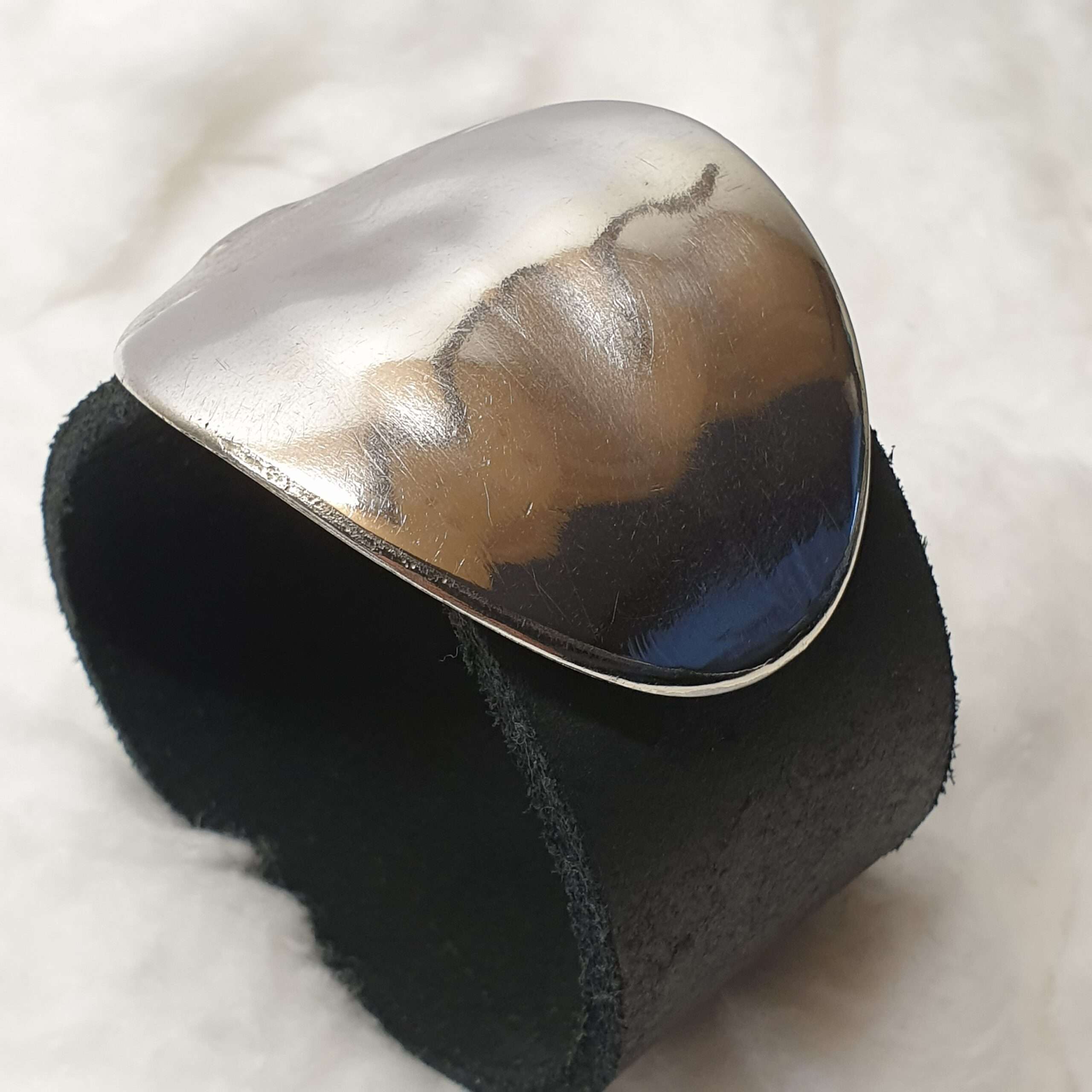 Die Schnalle/Schließe ist glänzend und an einem Rand quer geschliefen