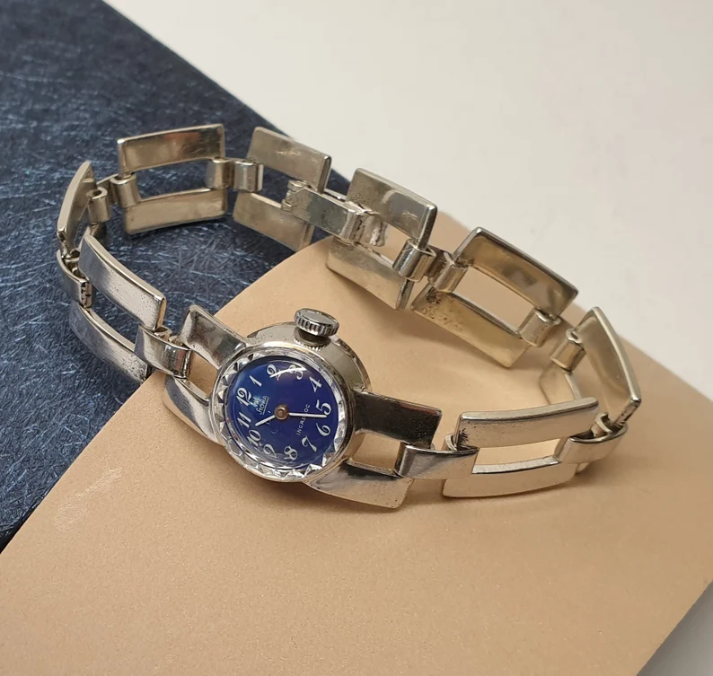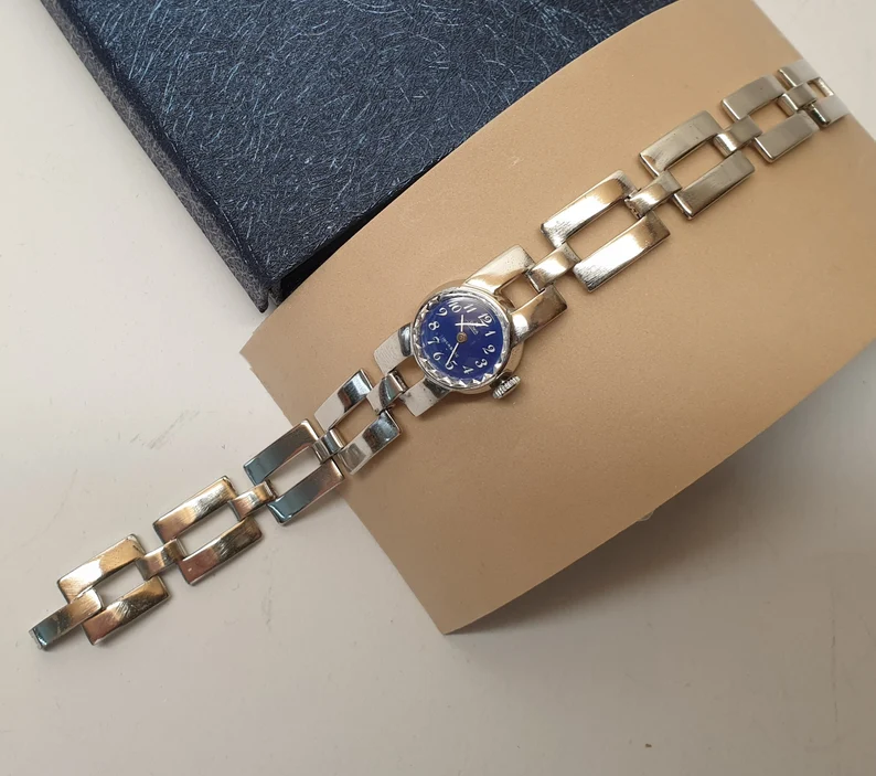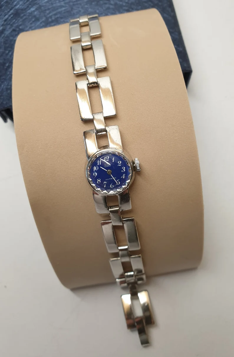 Vintage "STOWA INCABLOC" Damenuhr mit Handaufzug blau UU114